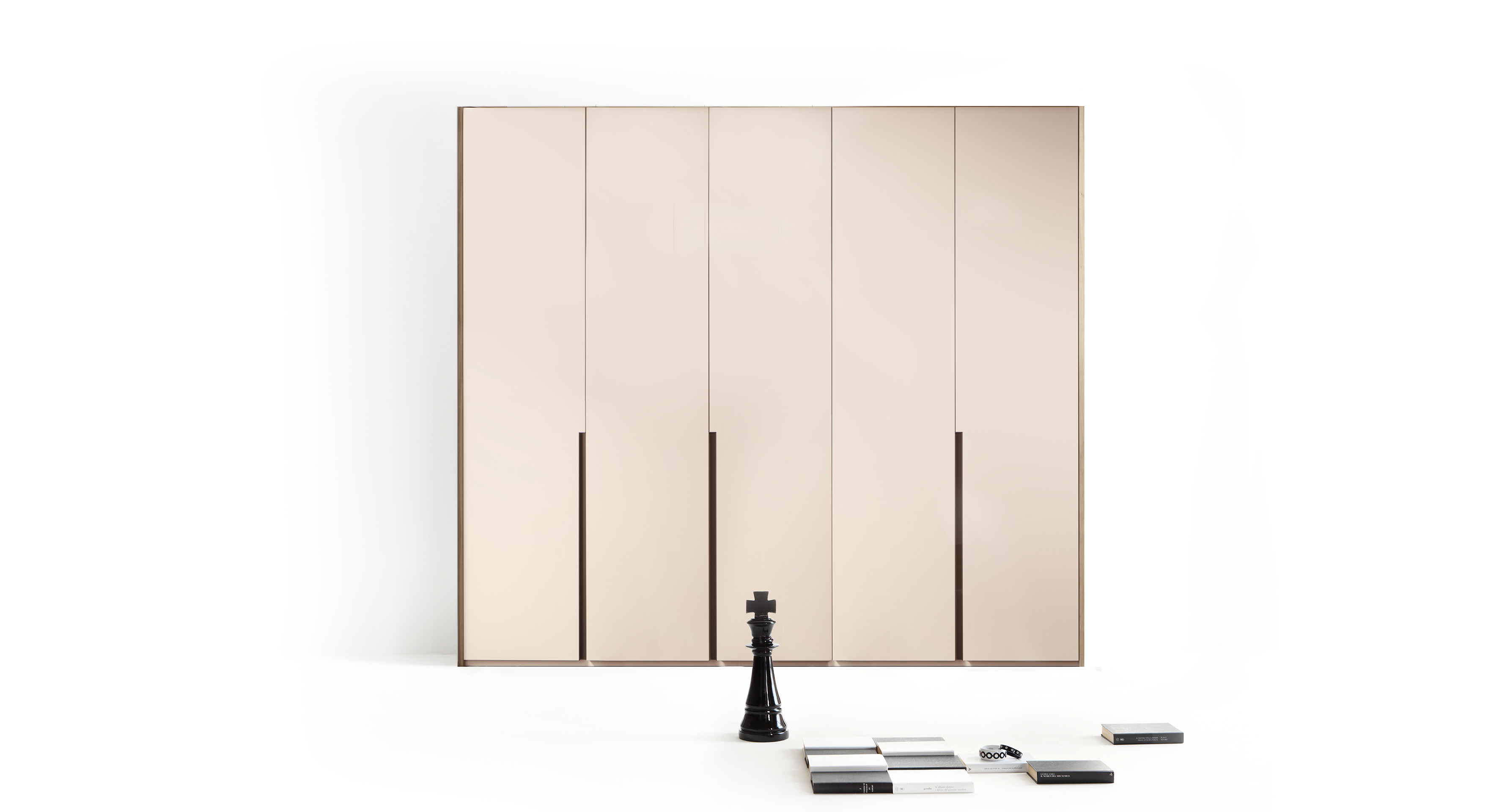 Versatile and elegant, Next adapts seamlessly to any space with its hinged doors and sleek vertical metal handles.