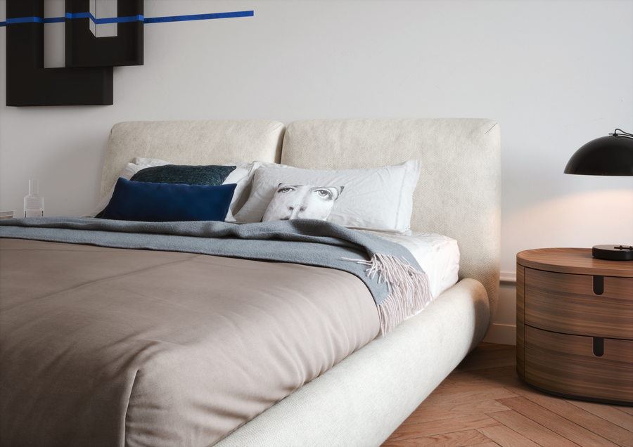 With its soft curves and contemporary elegance, the Midnight bed features a headboard of twin rounded cushions, seamlessly paired with a curvy padded frame. Also available with a storage base and manual or motorised lift for added convenience.