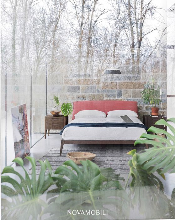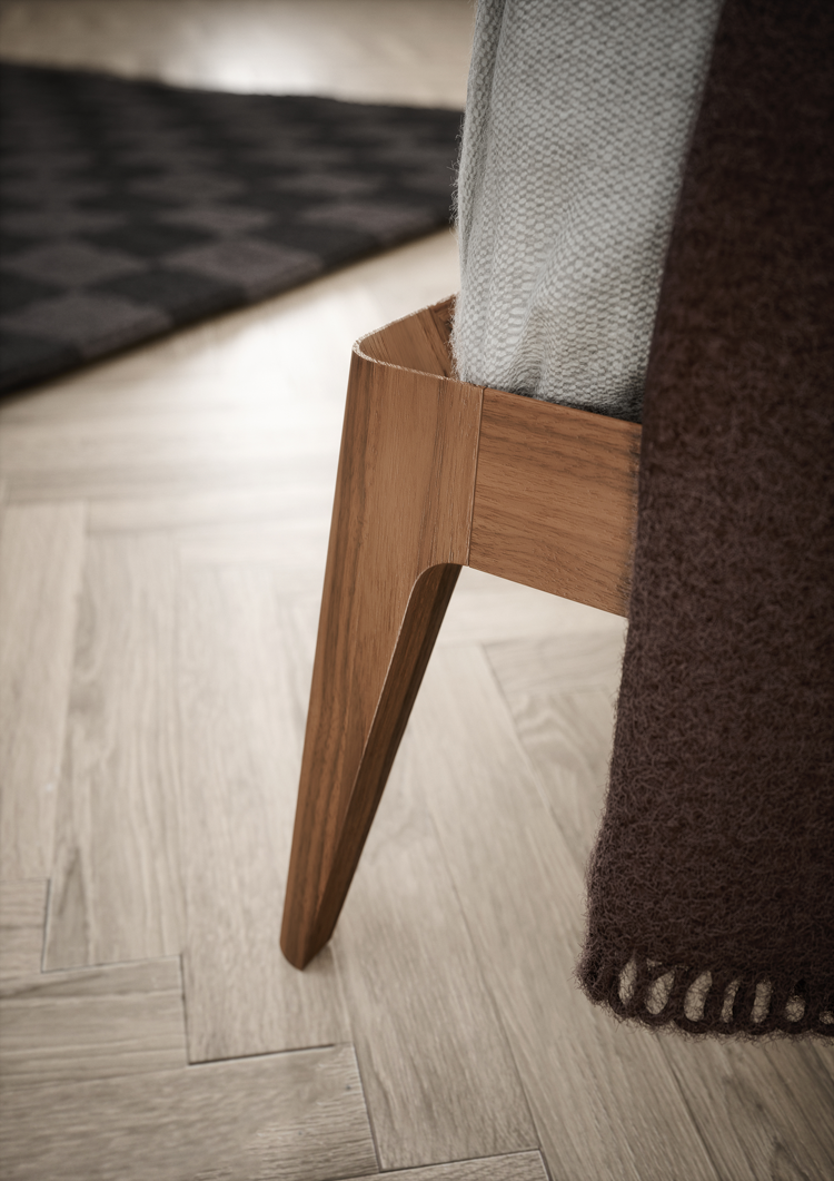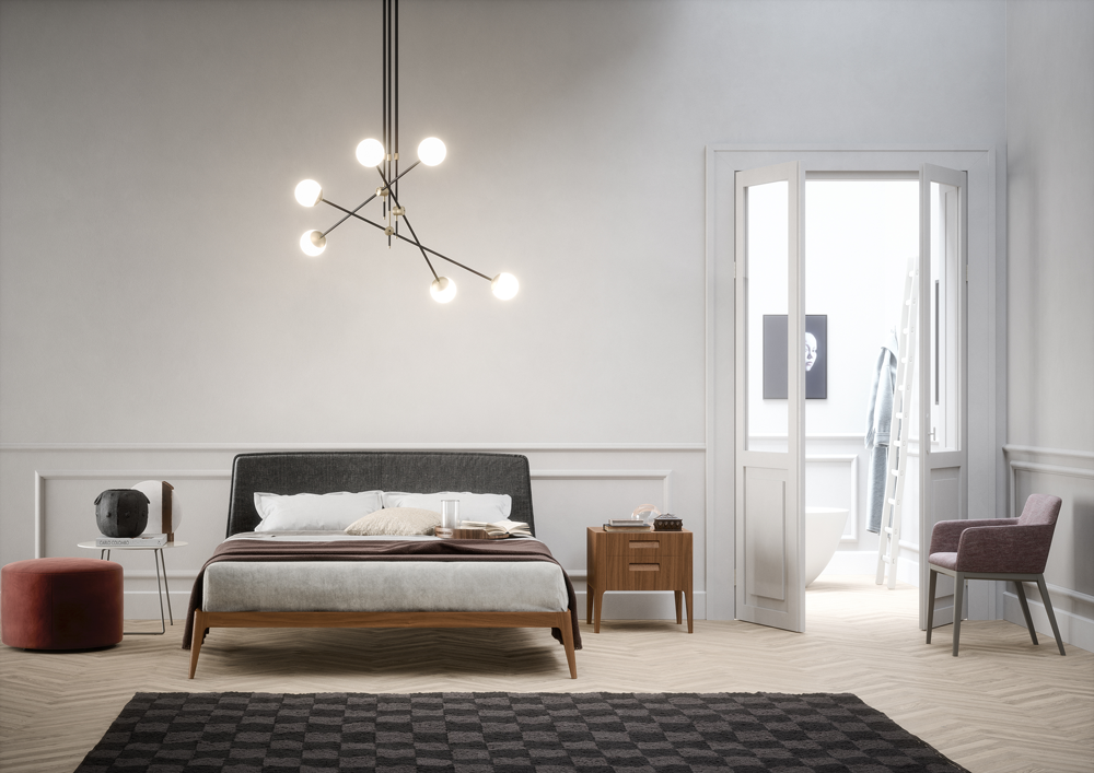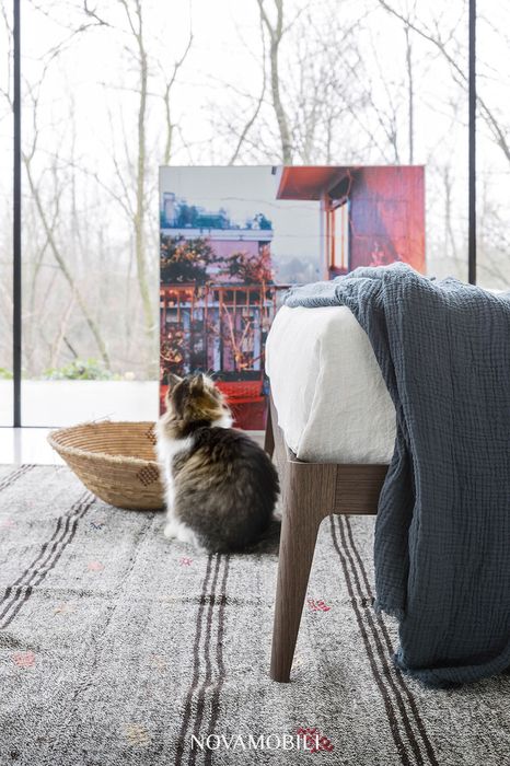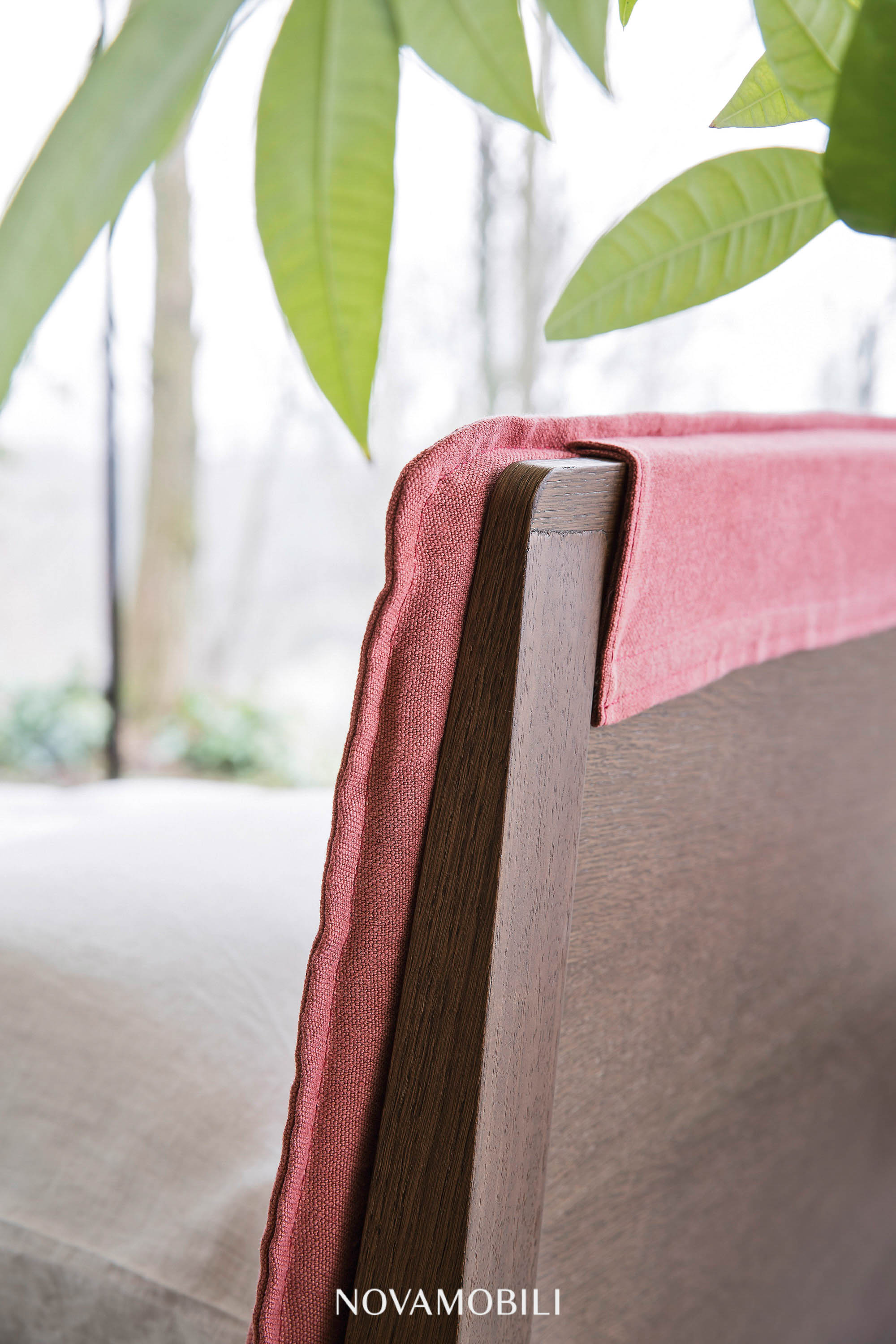 The Siri bed stands out for its distinctive, simple, and timeless design. The frame is available in the veneered finishes rovere miele and rovere terra while the Siri Soft headboard cover adorning the headboard is an optional extra available in any of the fabric, imitation leather, and leather options.