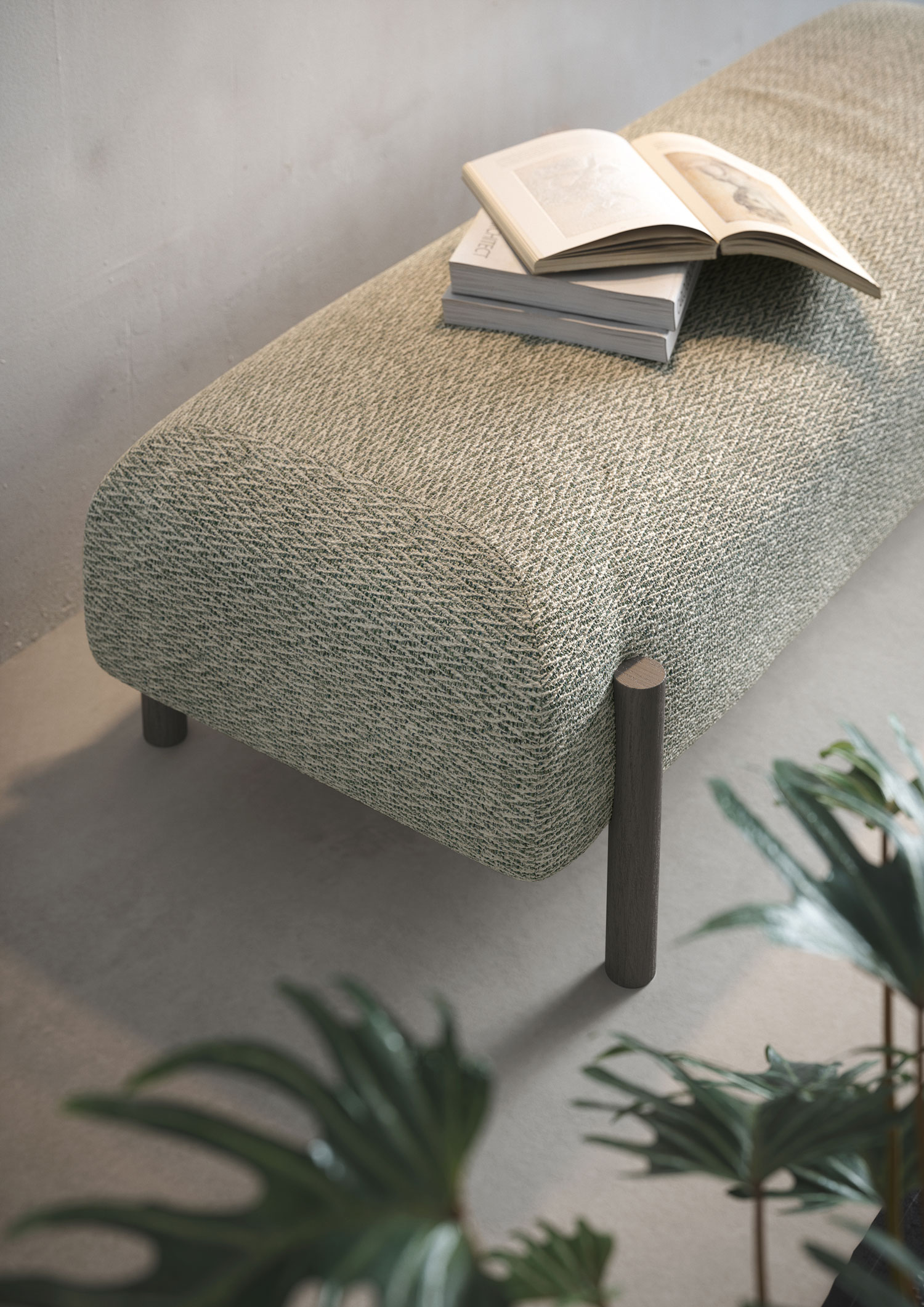 Versatile and modern, Dora is a padded bench with soft lines and removable fabric covers. Ideal for walk-in wardrobes or bedrooms, it’s customisable in a wide range of fabrics to suit any interior style.