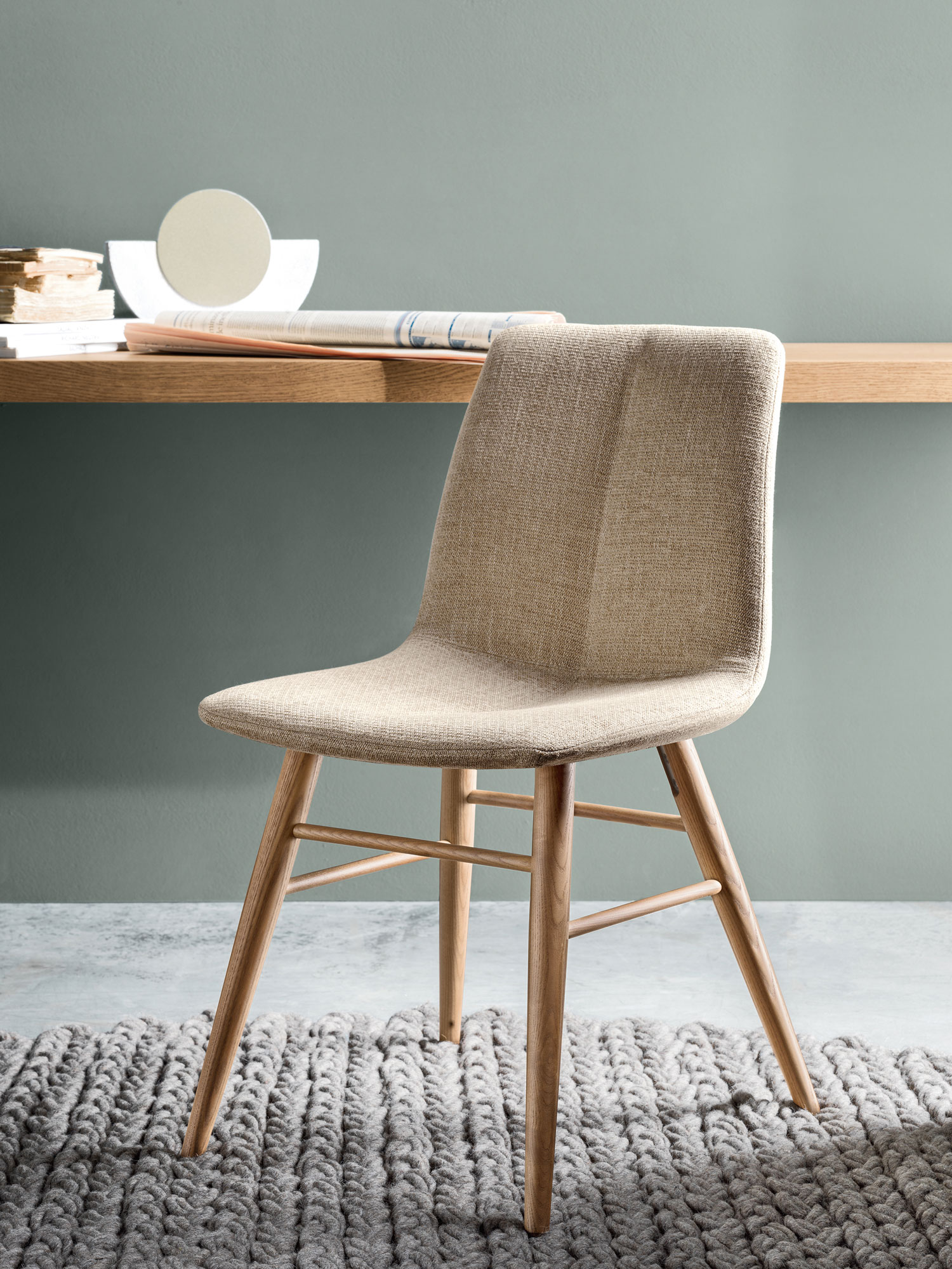 With its Nordic-inspired look, featuring a wooden frame, the Natt chair is a comfortable and practical option for different spaces in the home. While the frame can be lacquered in any color, the seat is available with removable fabric, felt, or imitation leather covers.