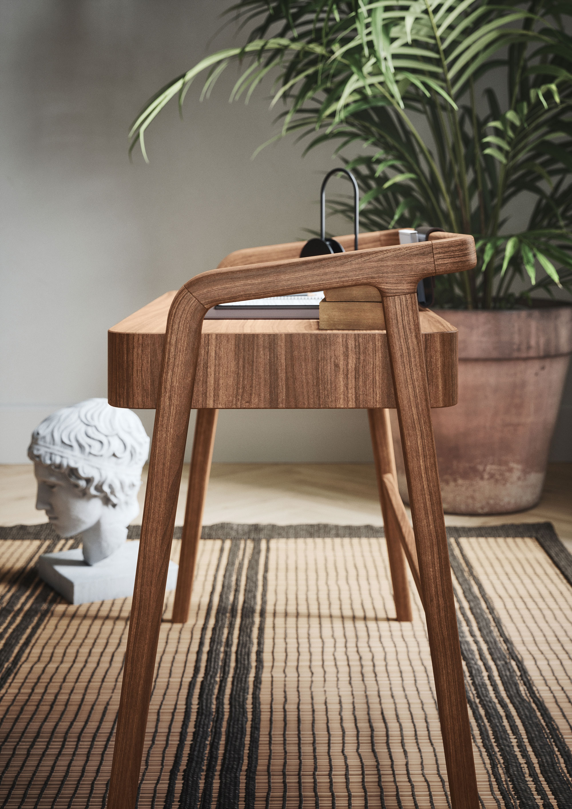 The Knot desk draws inspiration from Nordic design, combining lightness and practicality, making it perfect for work, study, or enhancing room elegance.