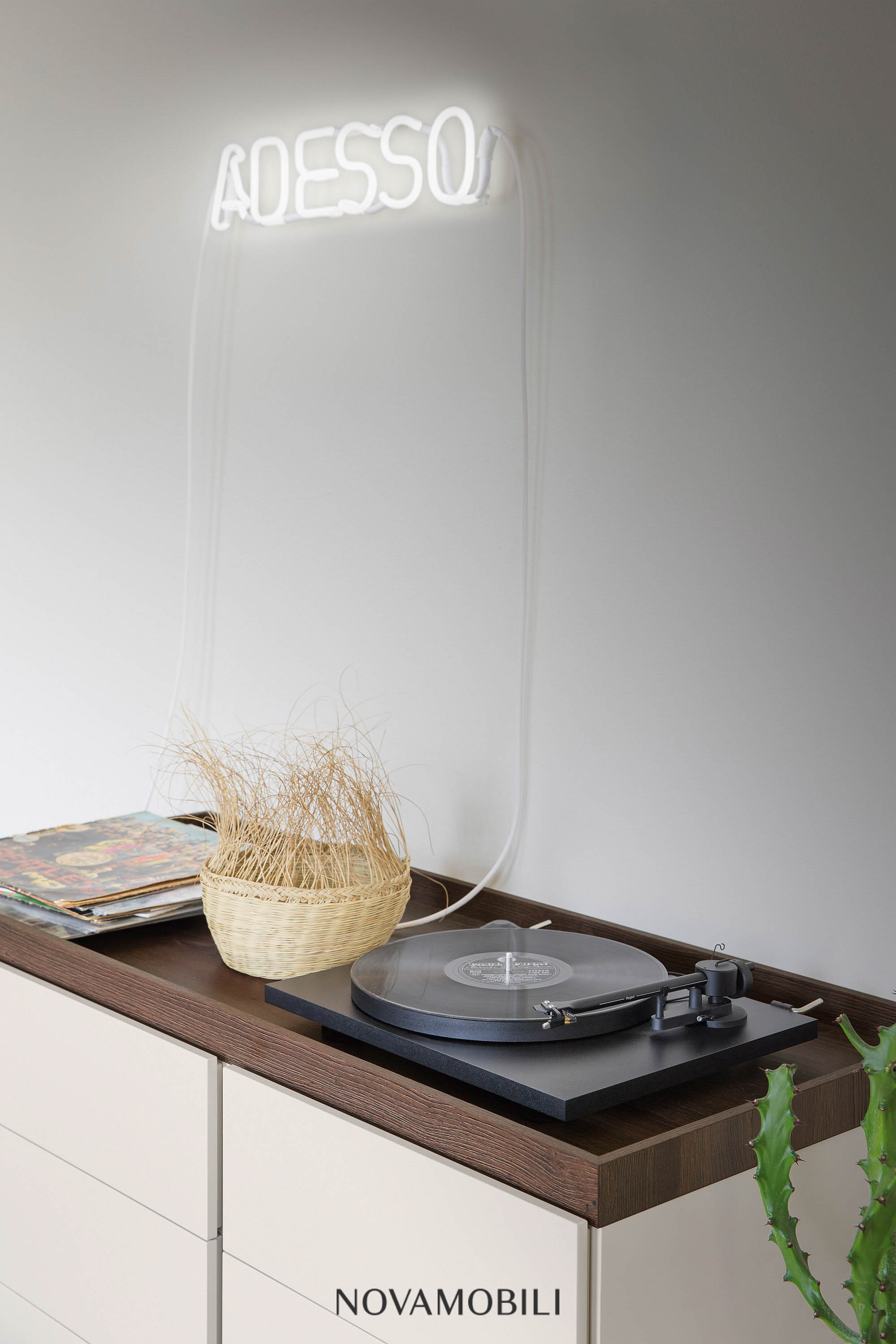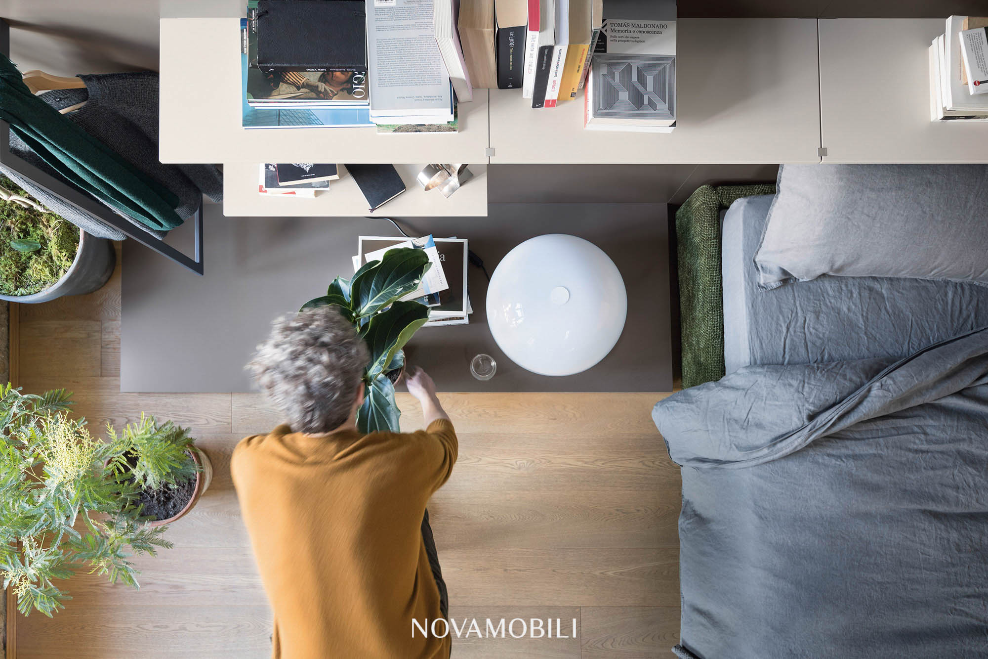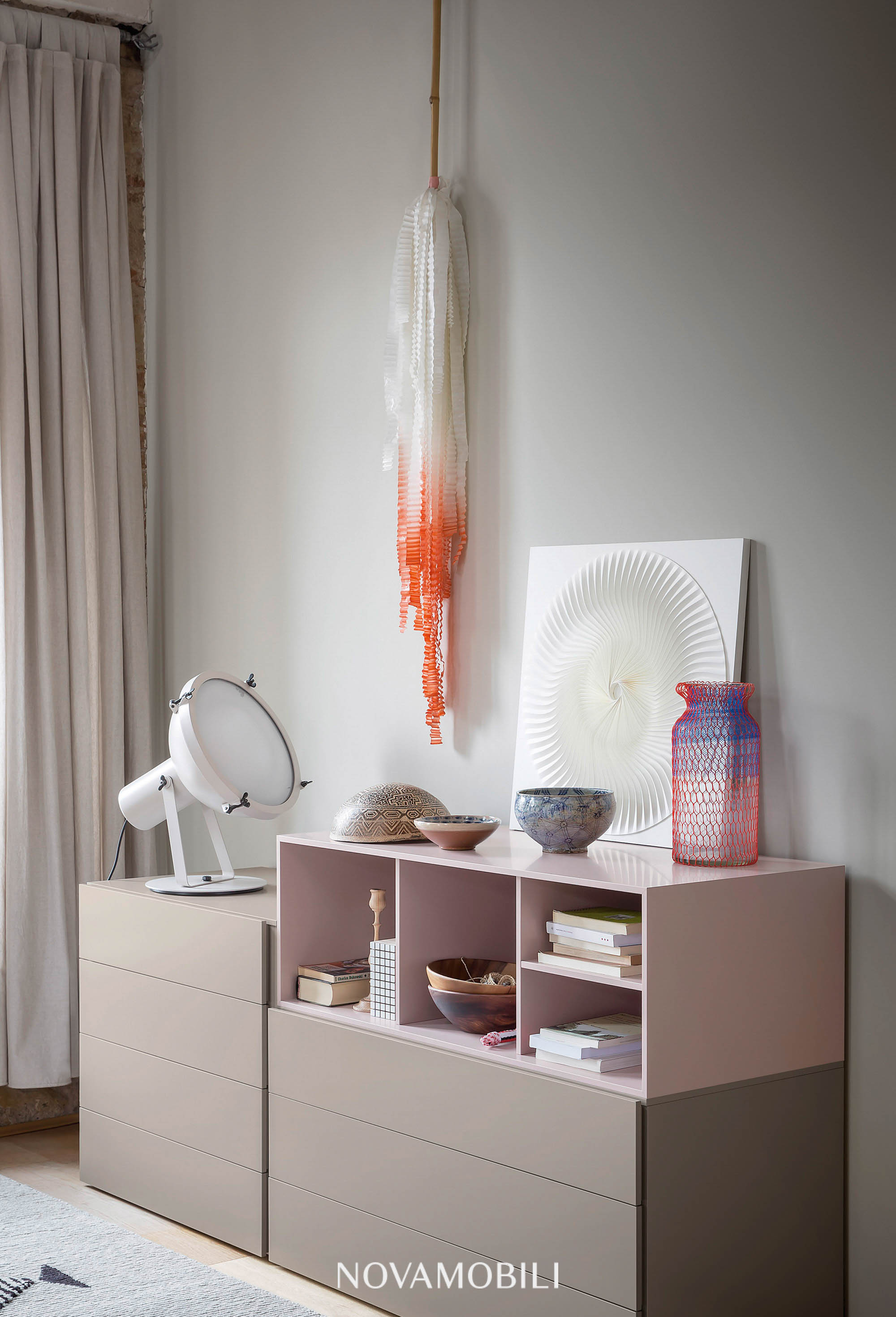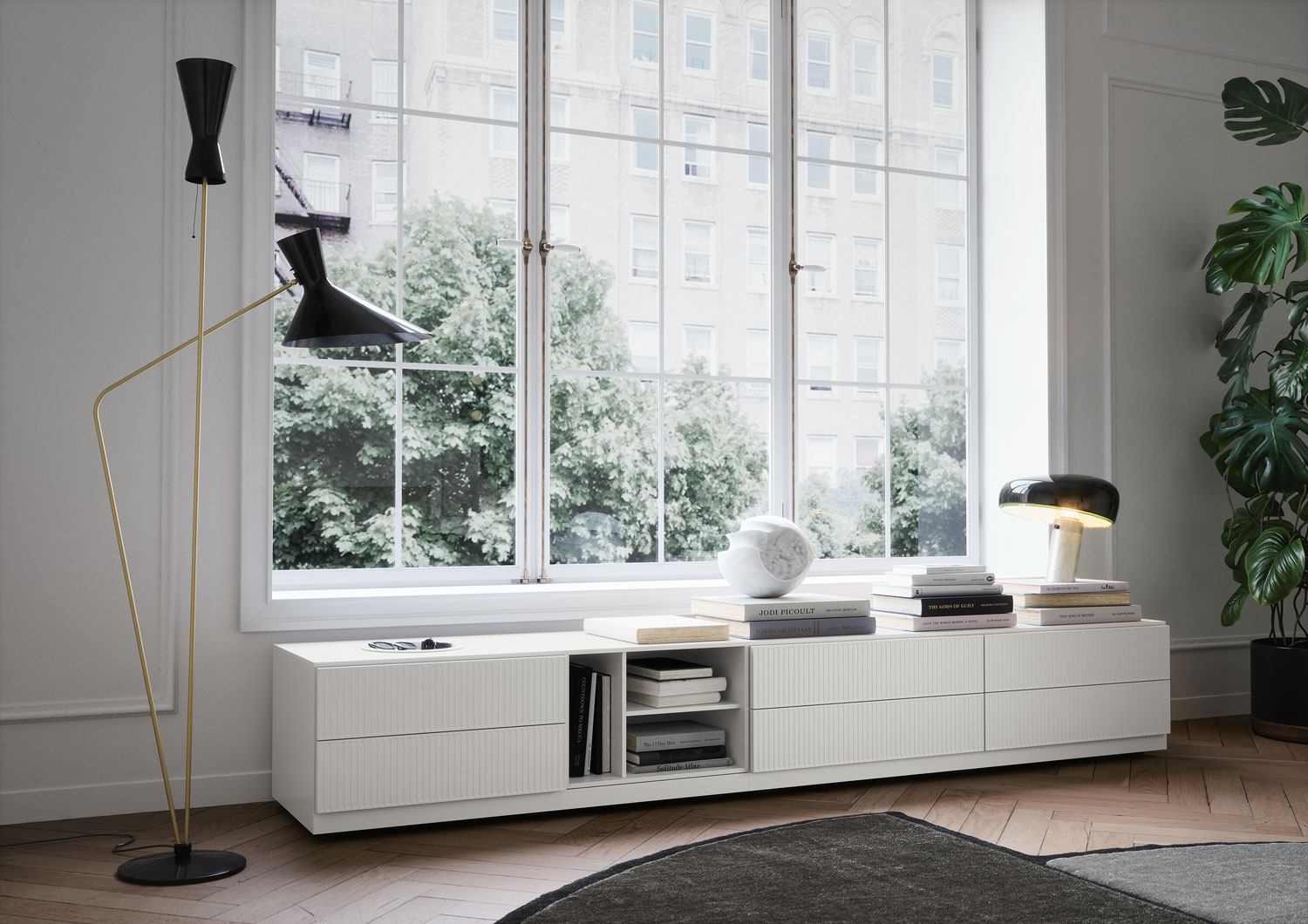 Easy System is a design that stands out for its pared-back look, impressive versatility, and endless furniture solutions. Drawer units and bedside tables become part of a more extensive system that can also include wall paneling - with or without shelves - floor benches, clothes racks, mirrors, open shelving, freestanding arrangements, desks, and Box 12 storage units. Each of the system components can be customized with an extensive range of finishes, including noce canaletto for drawers with Rays fronts.