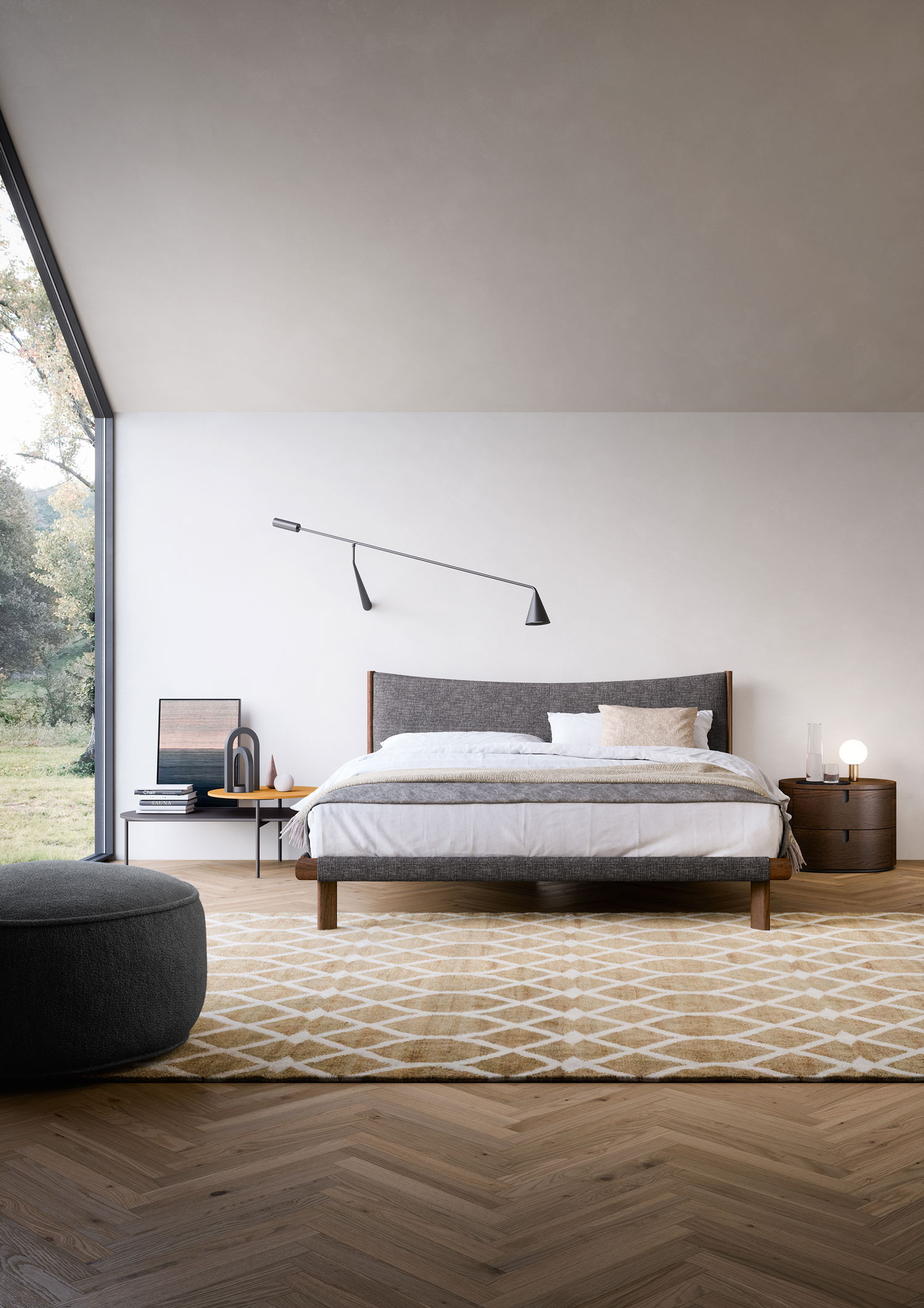 Kin features a refined silhouette with slim metal legs and dual-height tops in three configurations. Elegant and distinctive, it adds a touch of character and versatility to any bedroom.