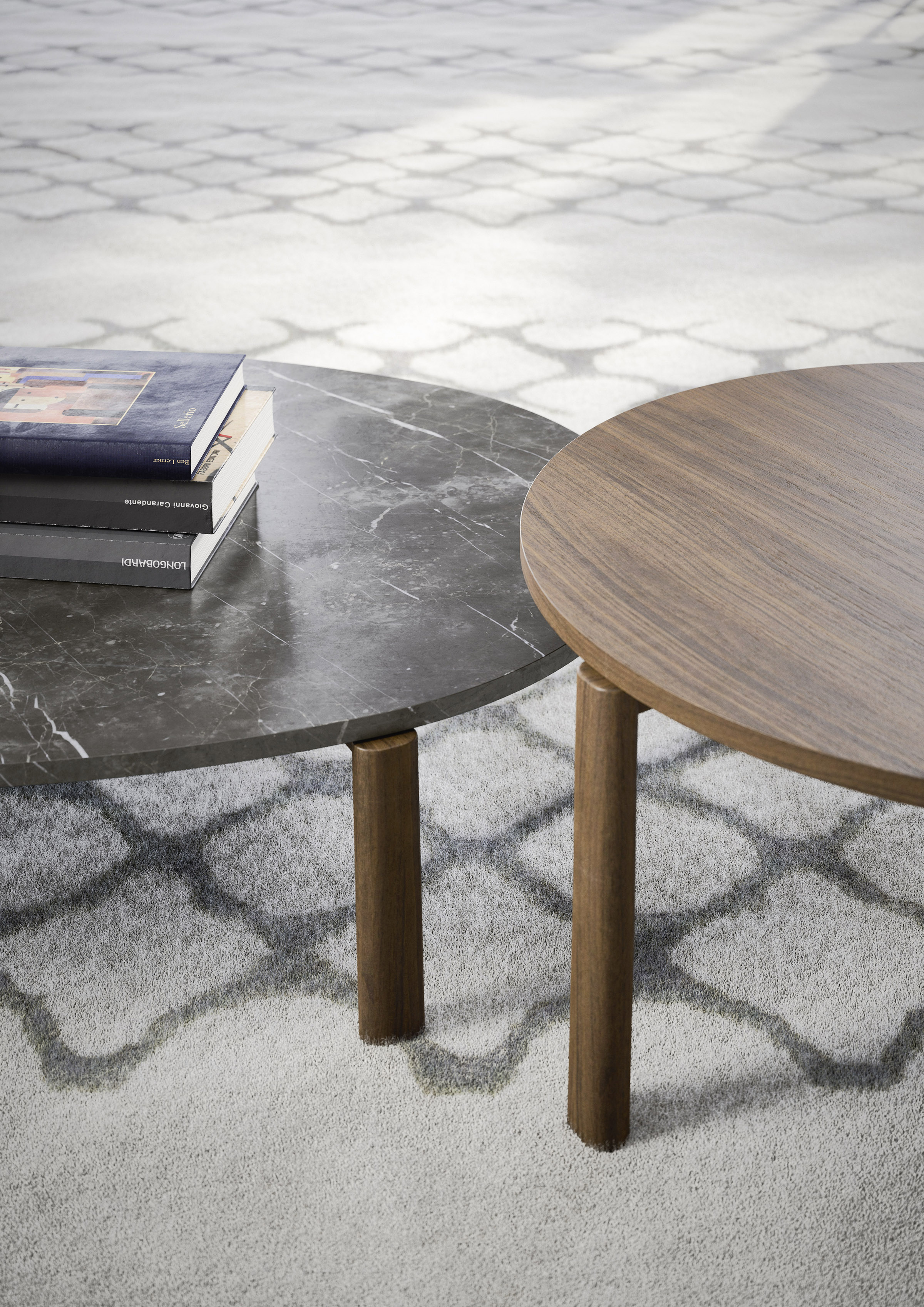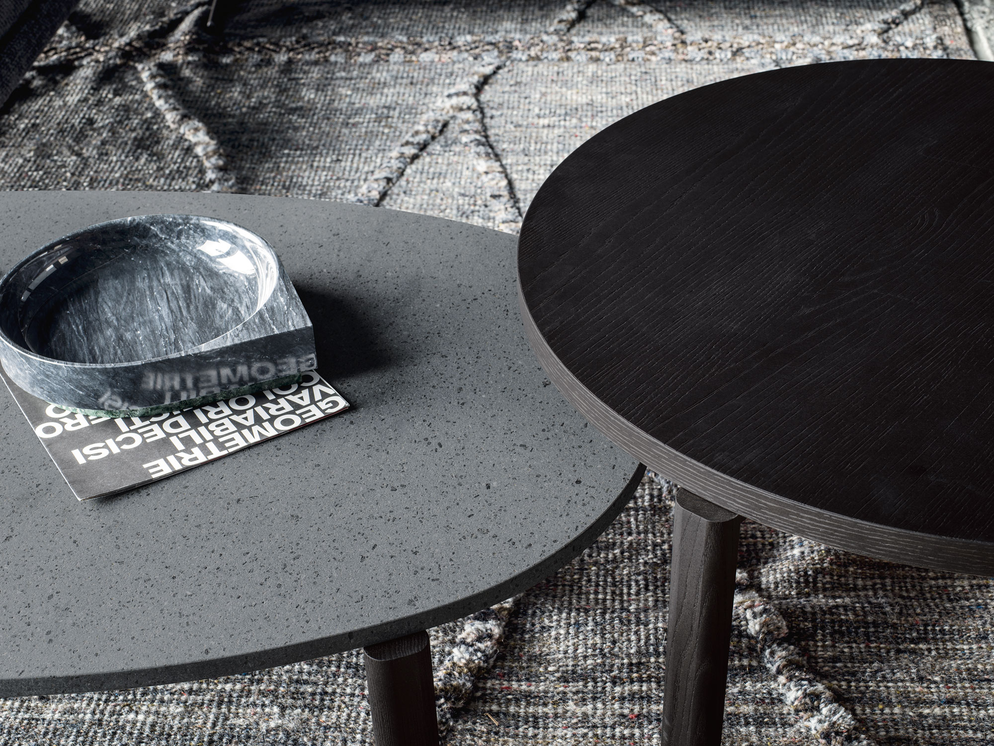 The Fly collection, crafted by Zaven, features versatile occasional tables with modular elements that can be used individually or grouped together. It allows for endless combinations in height, shape, and material.