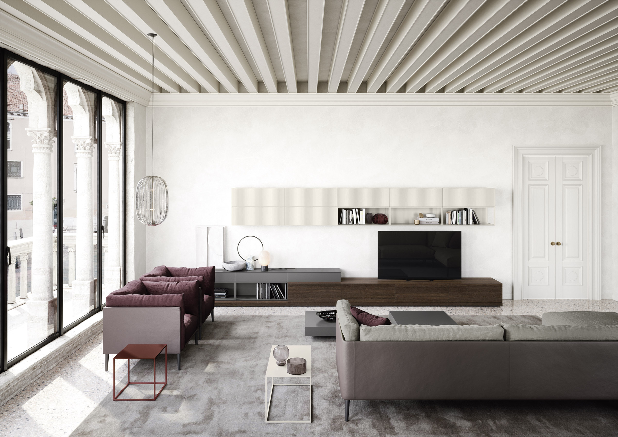 The light, elegant metal Team occasional table is available in a choice of two sizes – rectangular or square - and in any of the matt lacquered finishes.