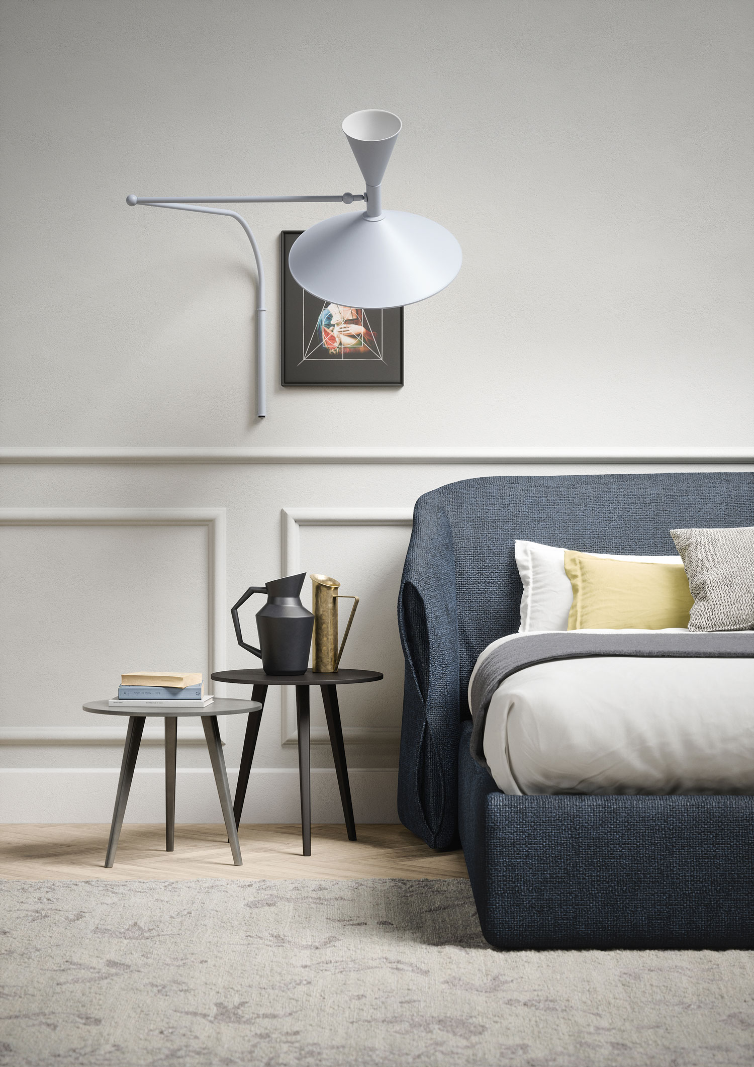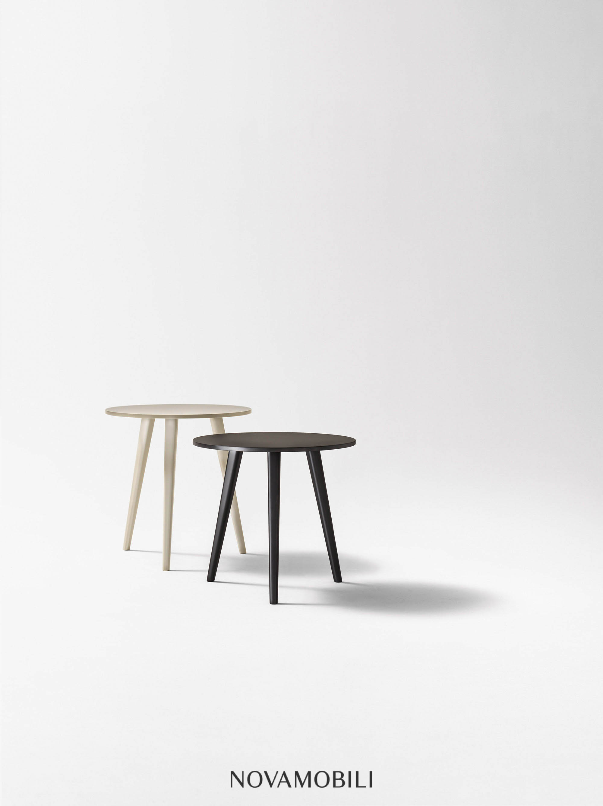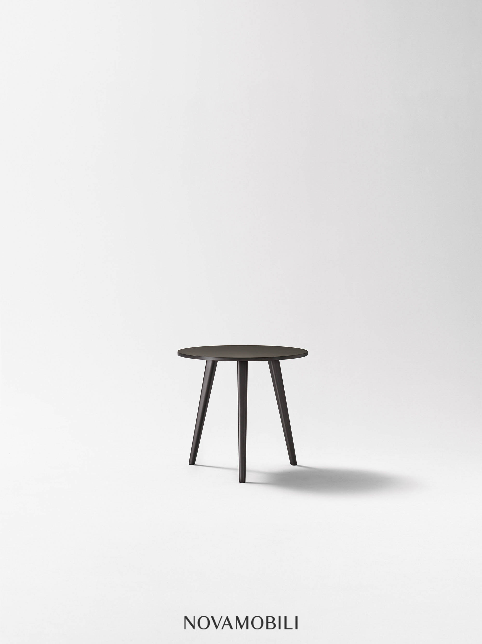 Featuring a circular top sitting on three legs, the simple and elegant Trio side table serves as a convenient surface when placed next to the sofa or as a practical nightstand next to the bed. The table comes in two different heights; its three matt lacquered legs are available in any of the colors.