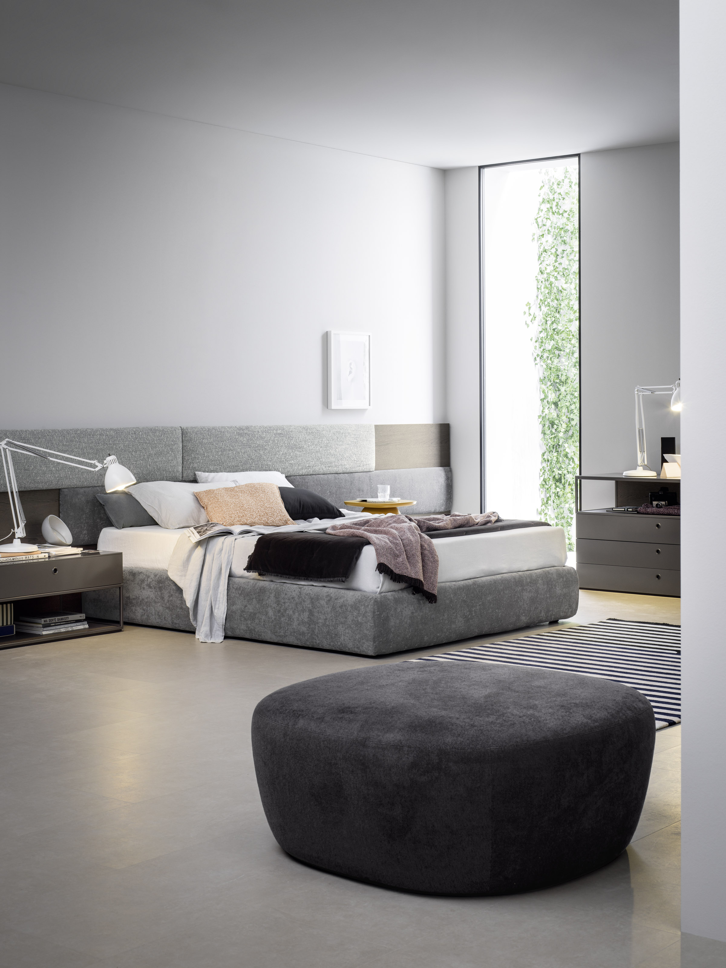 Designed by Federica Biasi, the Loto ottoman has a gently tapering design, enhancing its dynamic, contemporary character. This versatile piece comes in three different sizes.