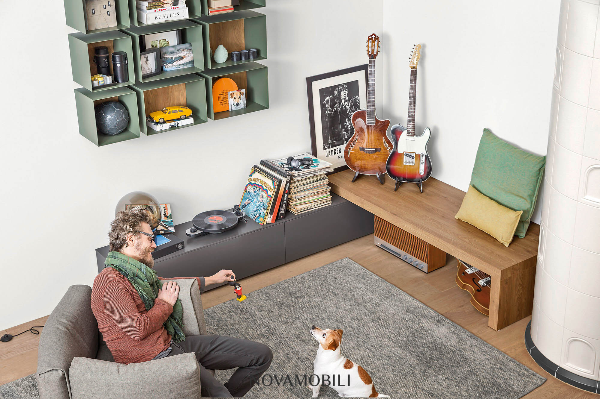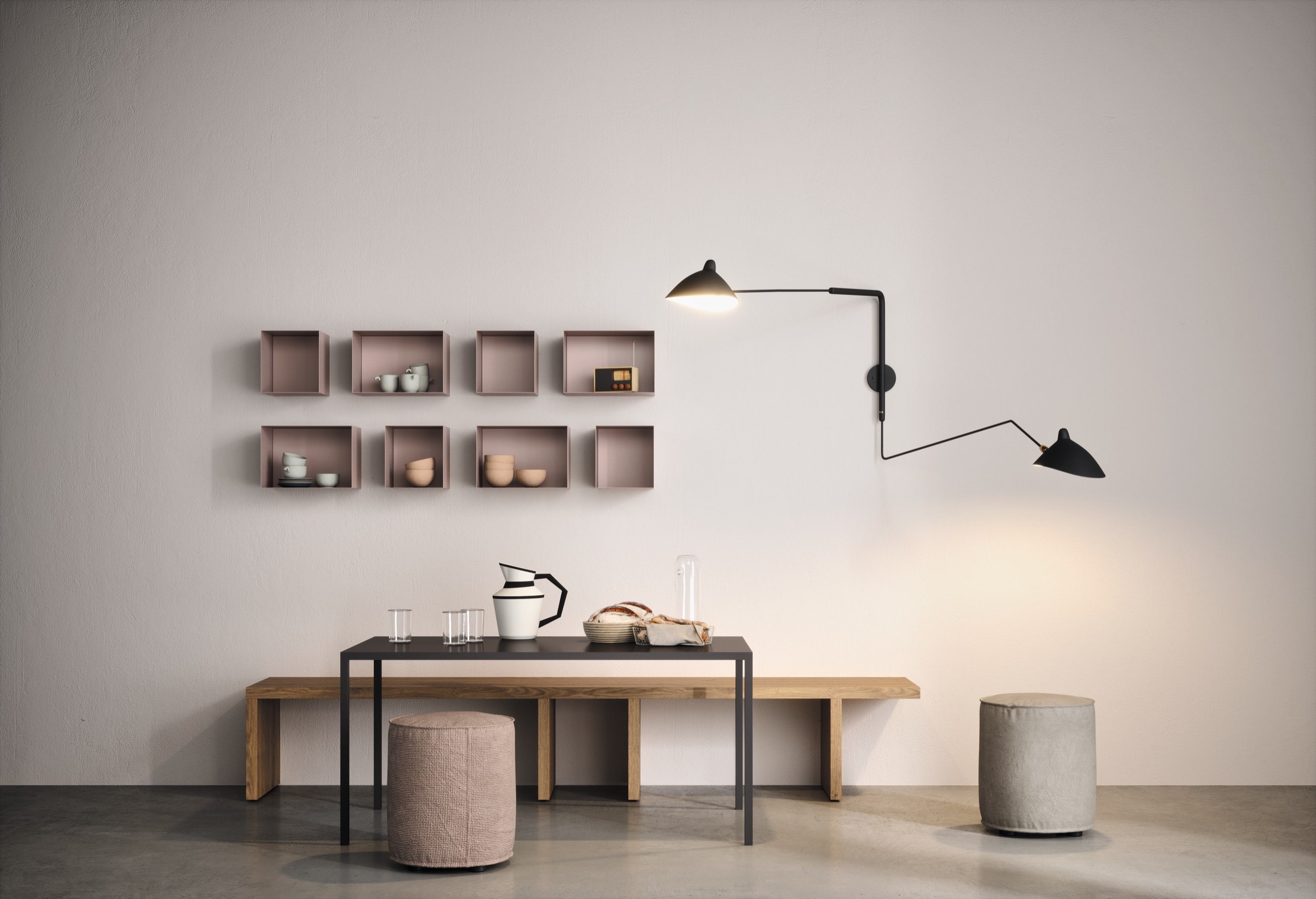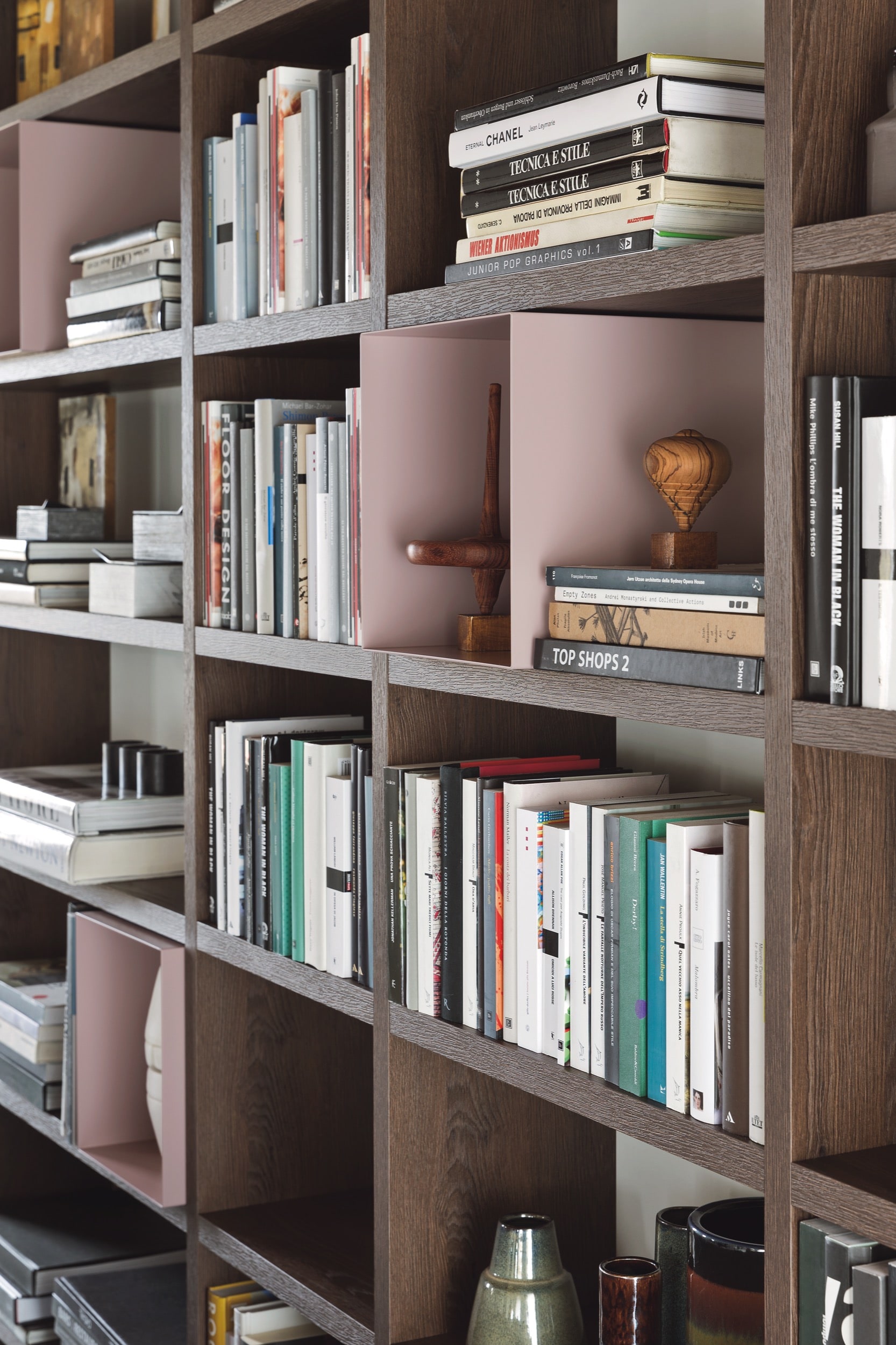 The metal Hub boxes allow you to create a wall display in a never-ending array of colorful configurations and combinations. The structure can be in any of the matt lacquered colors or metal lacquered finishes, and the back panel in any of the matt lacquered, eco-wood, décor and super matt finishes. The boxes can also be inserted in the Wall 30 systems.