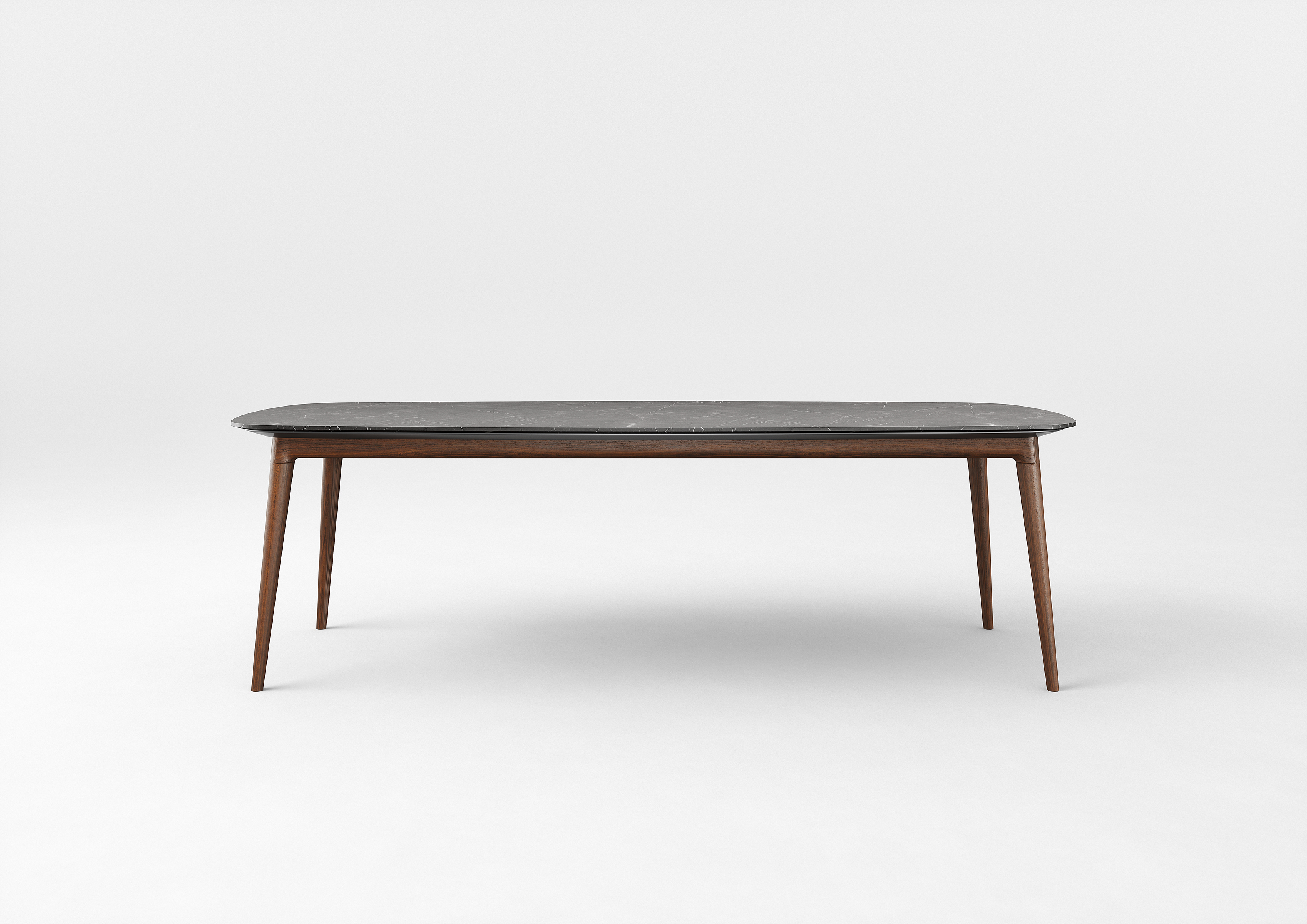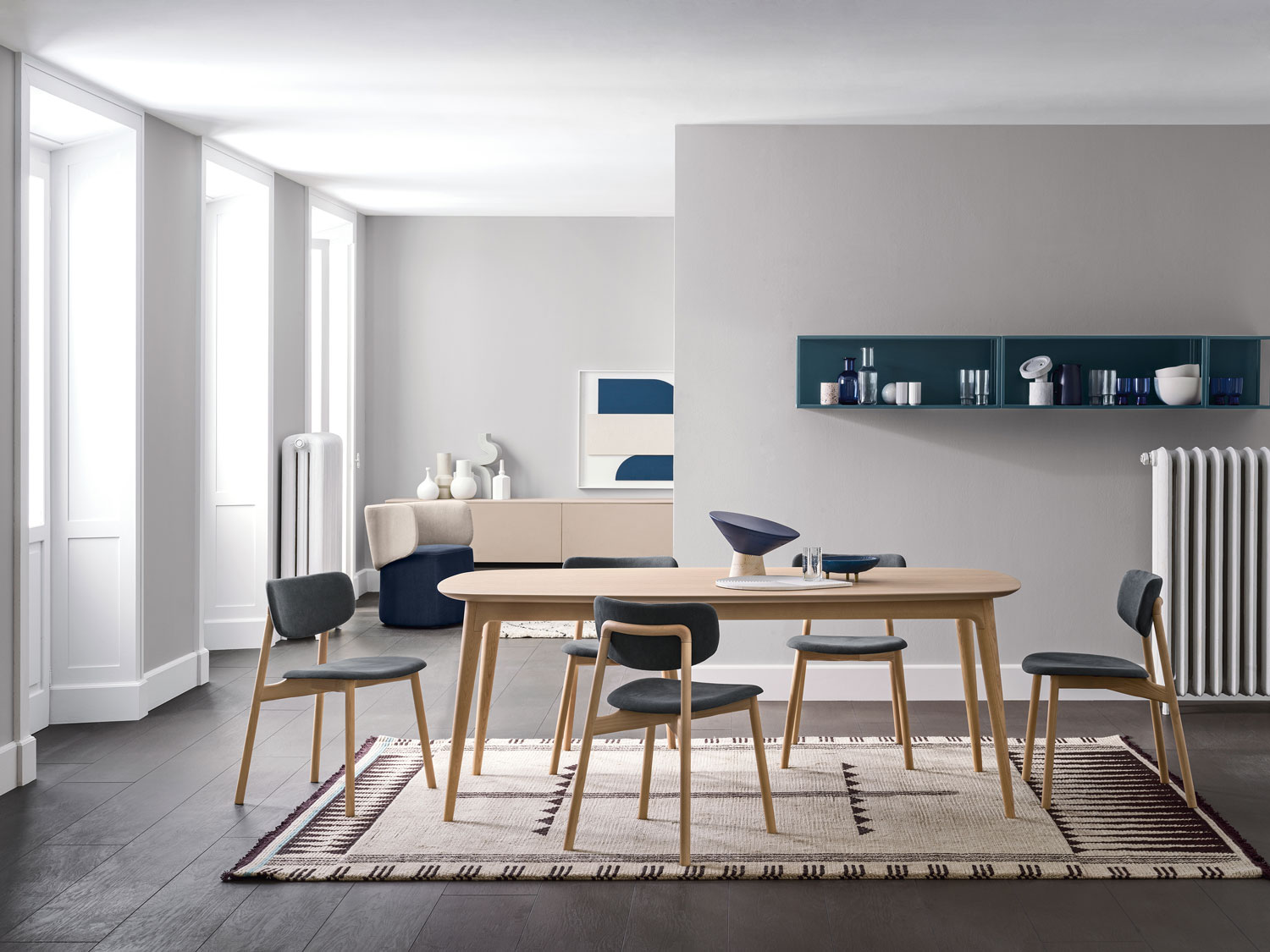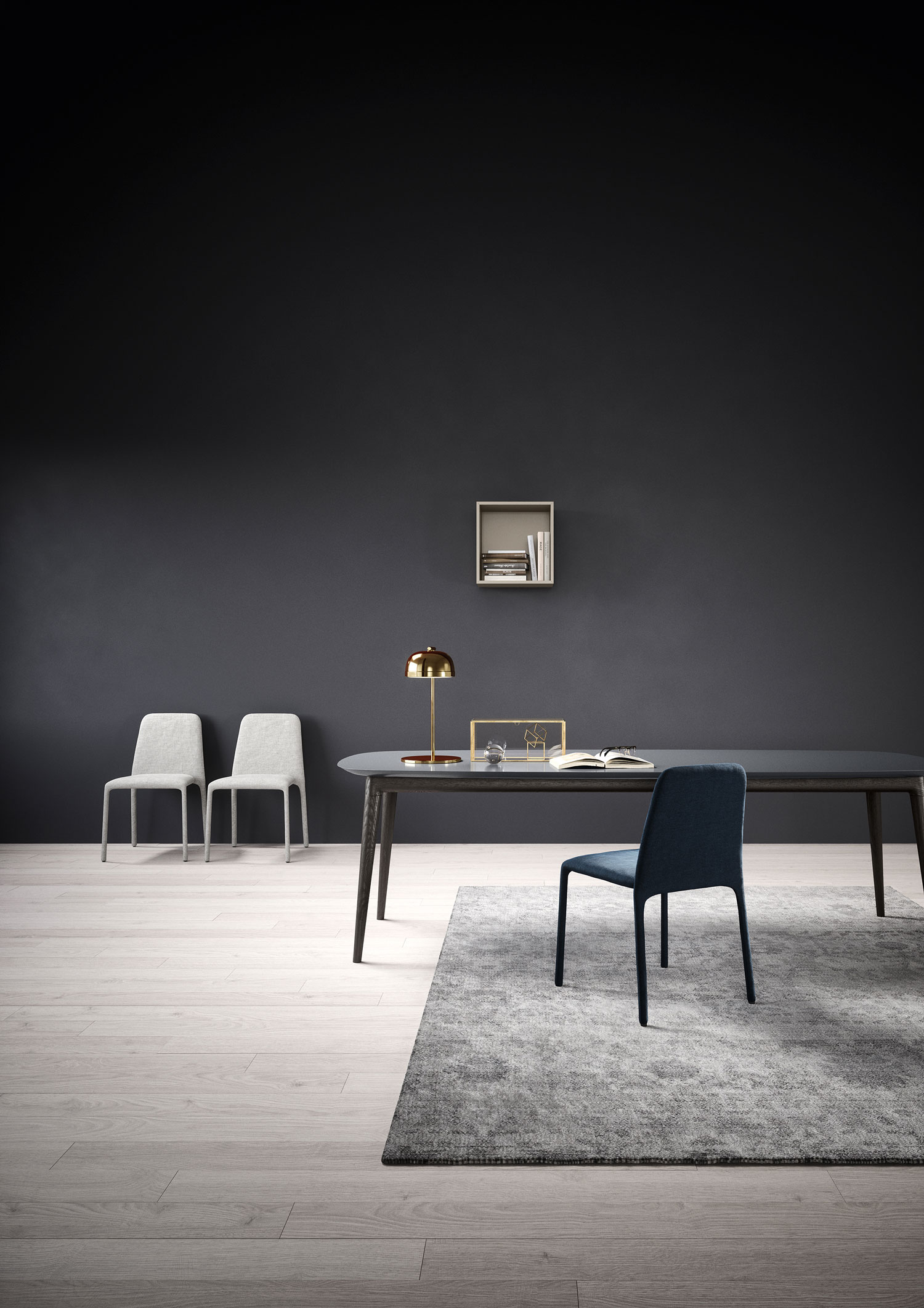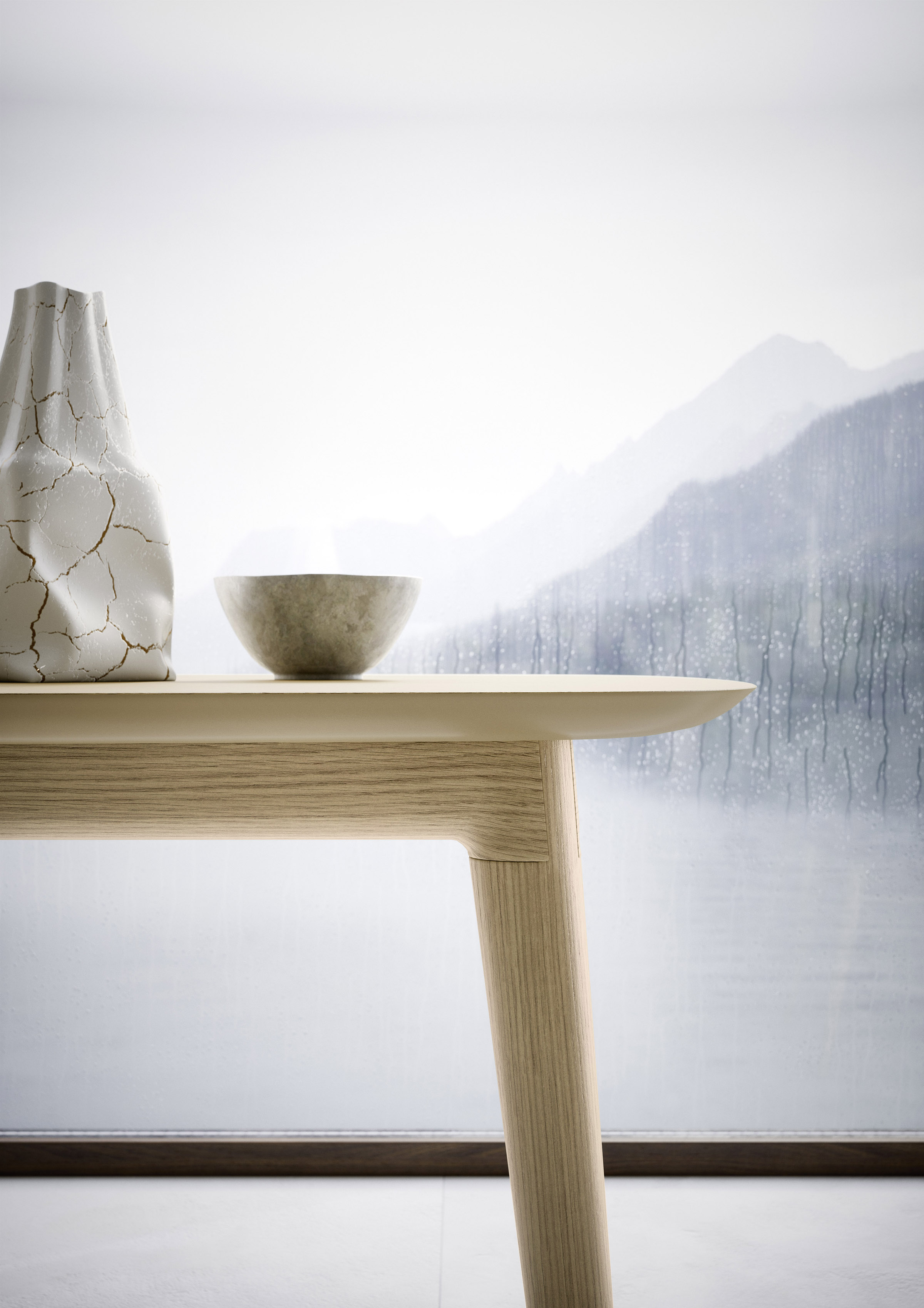 Designed by Matteo Zorzenoni, the Hanami table stands out for its flowing lines and attention to detail. The angled legs tapering towards the floor produce a light, dynamic look. The top can be in polished or matt Bianco Carrara or Grigio Oriente marble, noce canaletto, rovere chiaro or any of the matt lacquered colors, while legs are available in the noce canaletto or rovere chiaro stain.