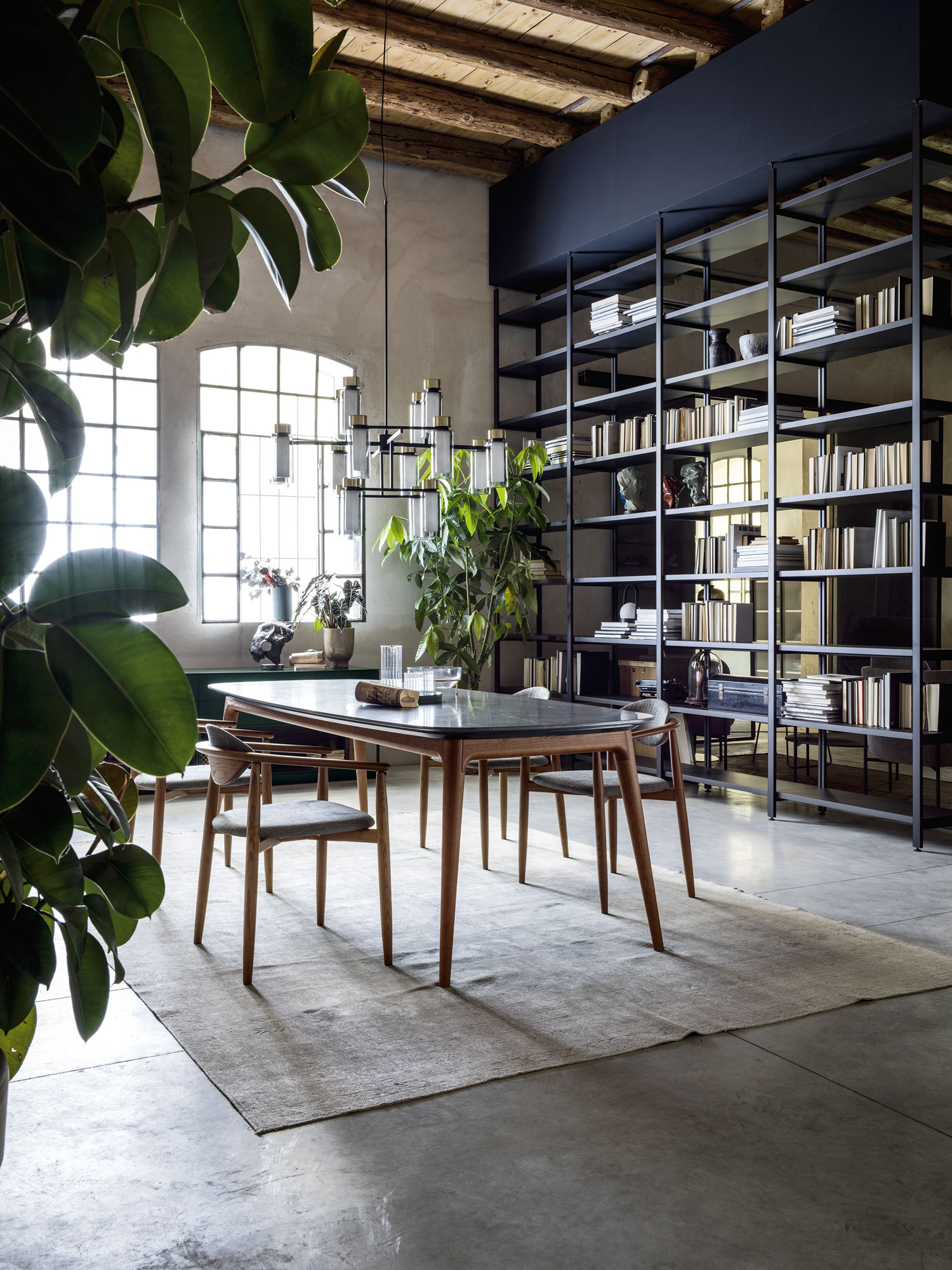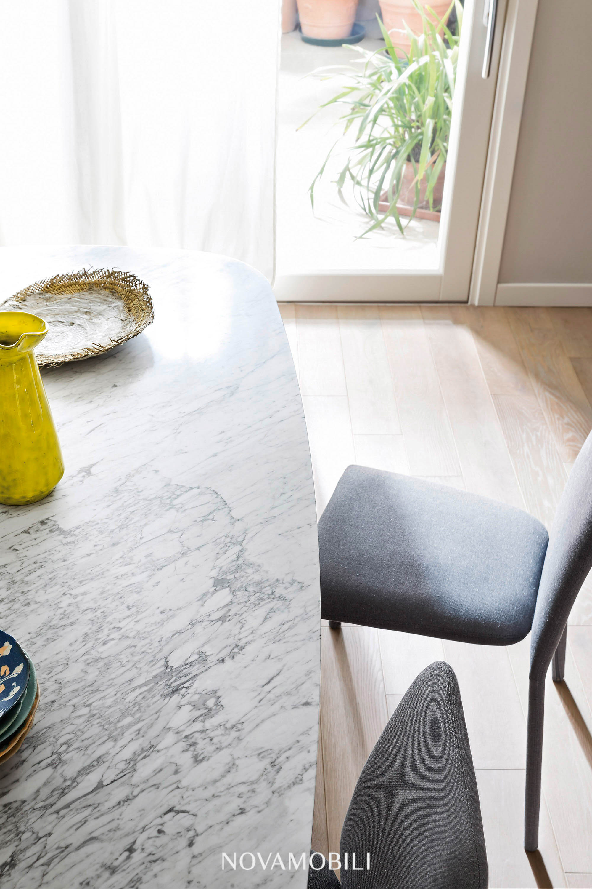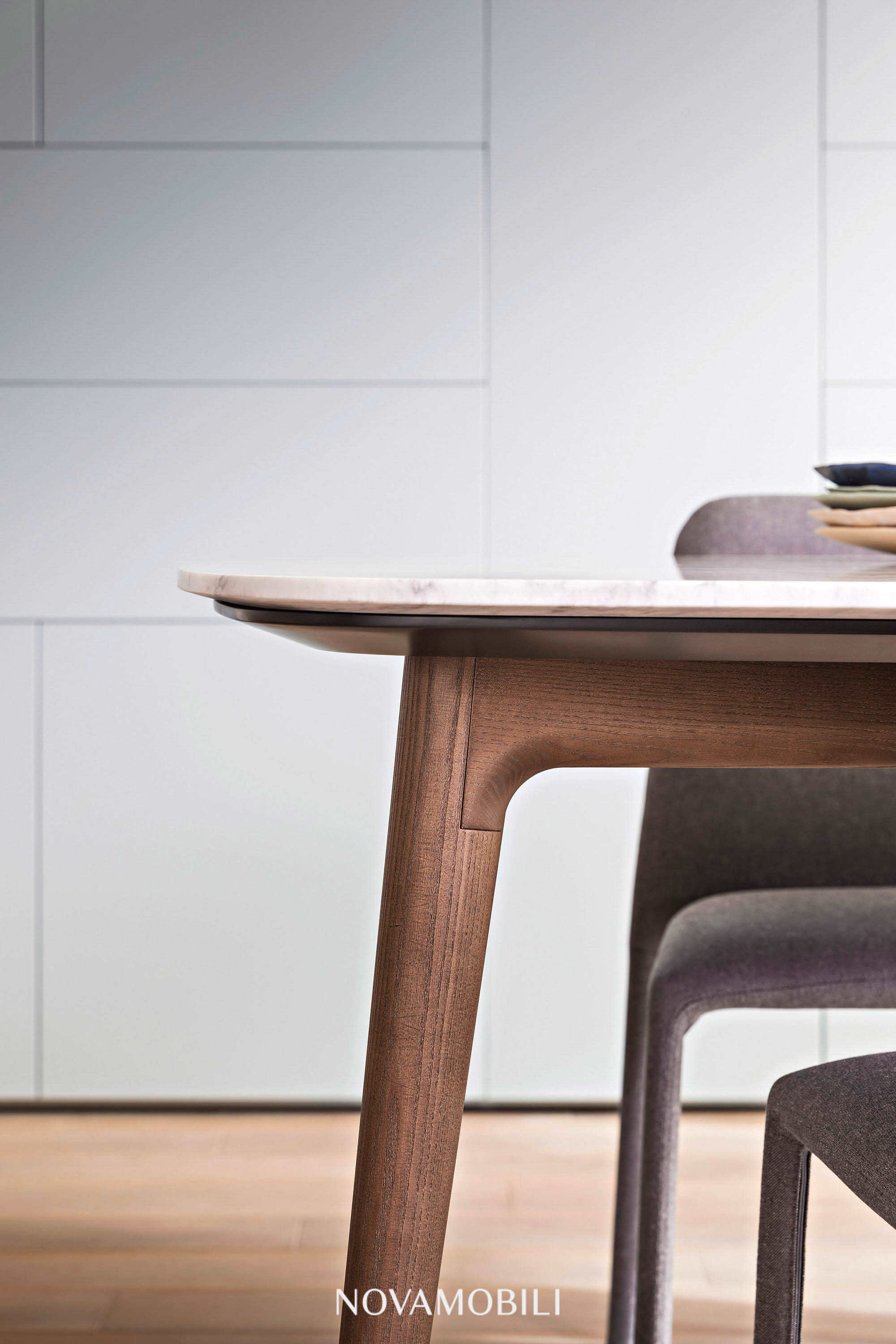 Designed by Matteo Zorzenoni, the Hanami table stands out for its flowing lines and attention to detail. The angled legs tapering towards the floor produce a light, dynamic look. The top can be in polished or matt Bianco Carrara or Grigio Oriente marble, noce canaletto, rovere chiaro or any of the matt lacquered colors, while legs are available in the noce canaletto or rovere chiaro stain.