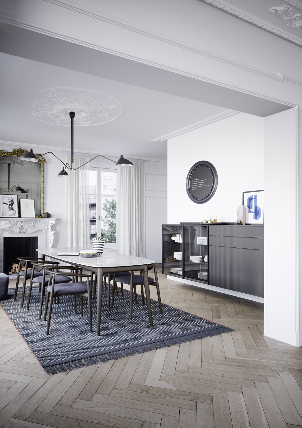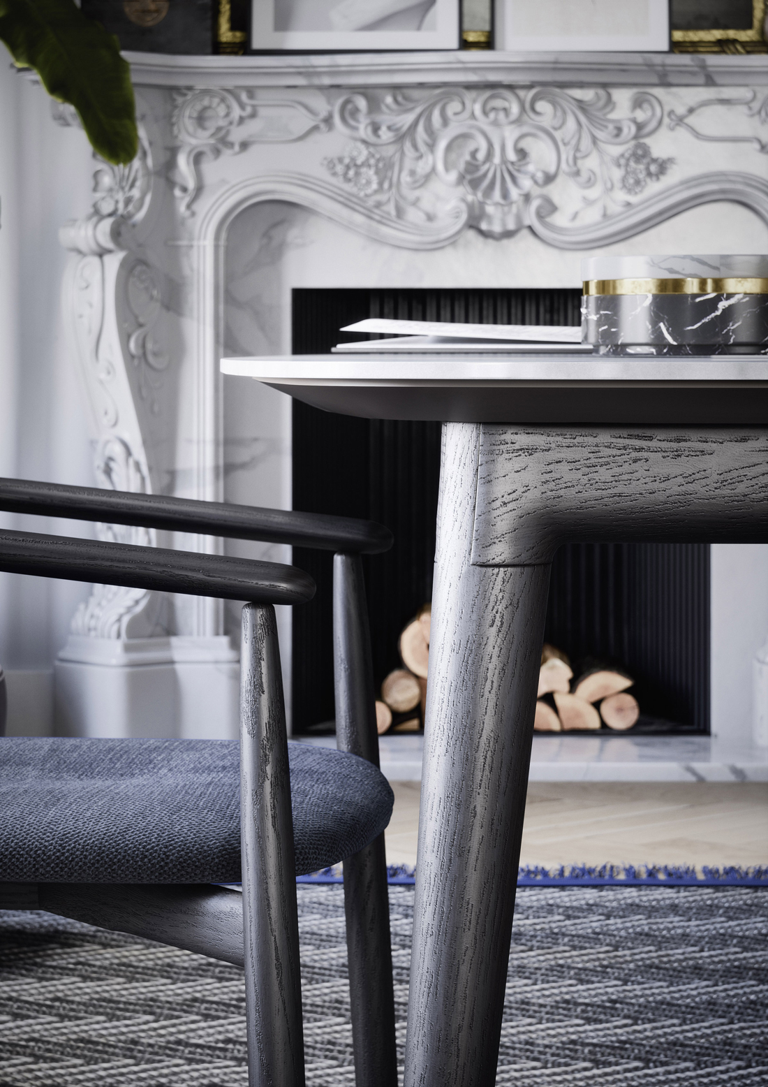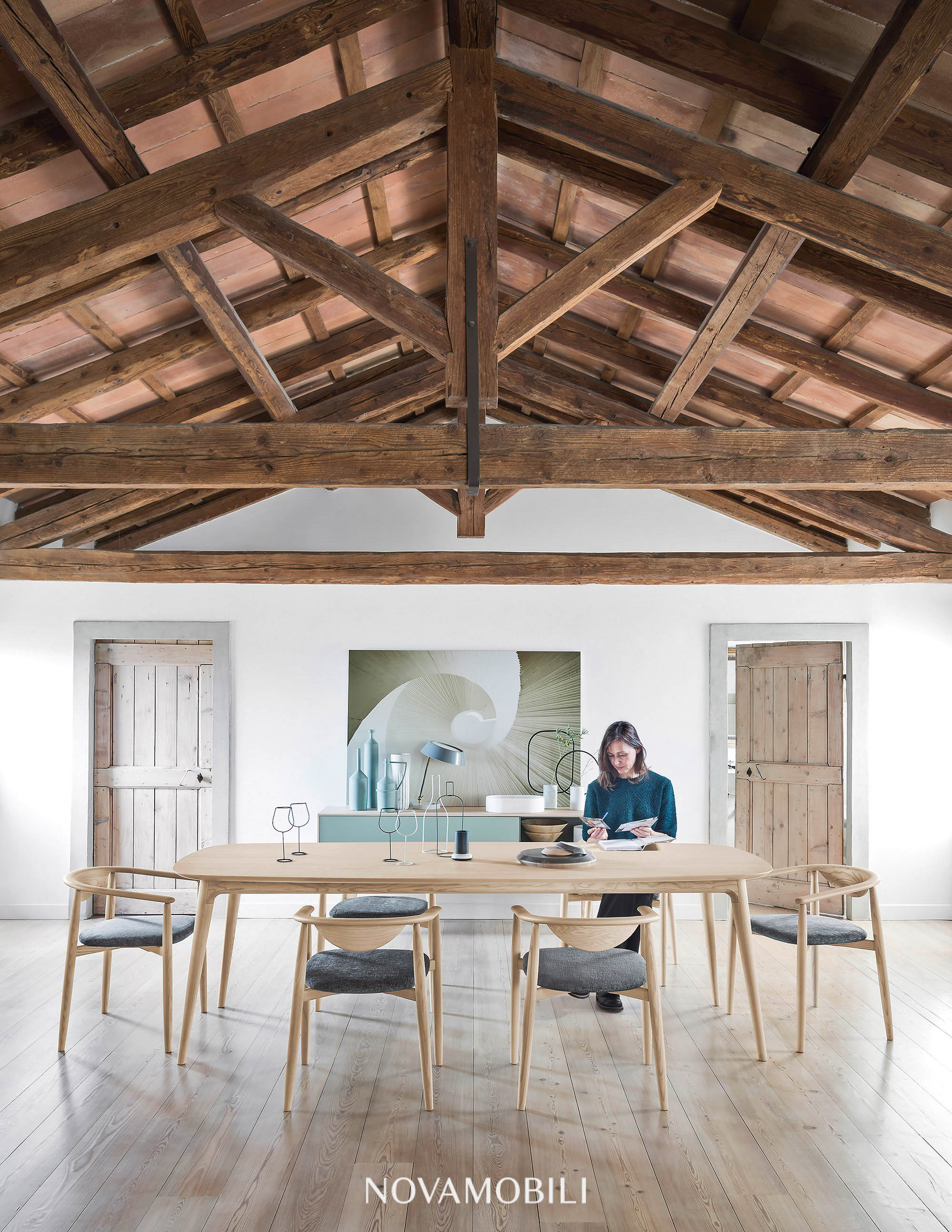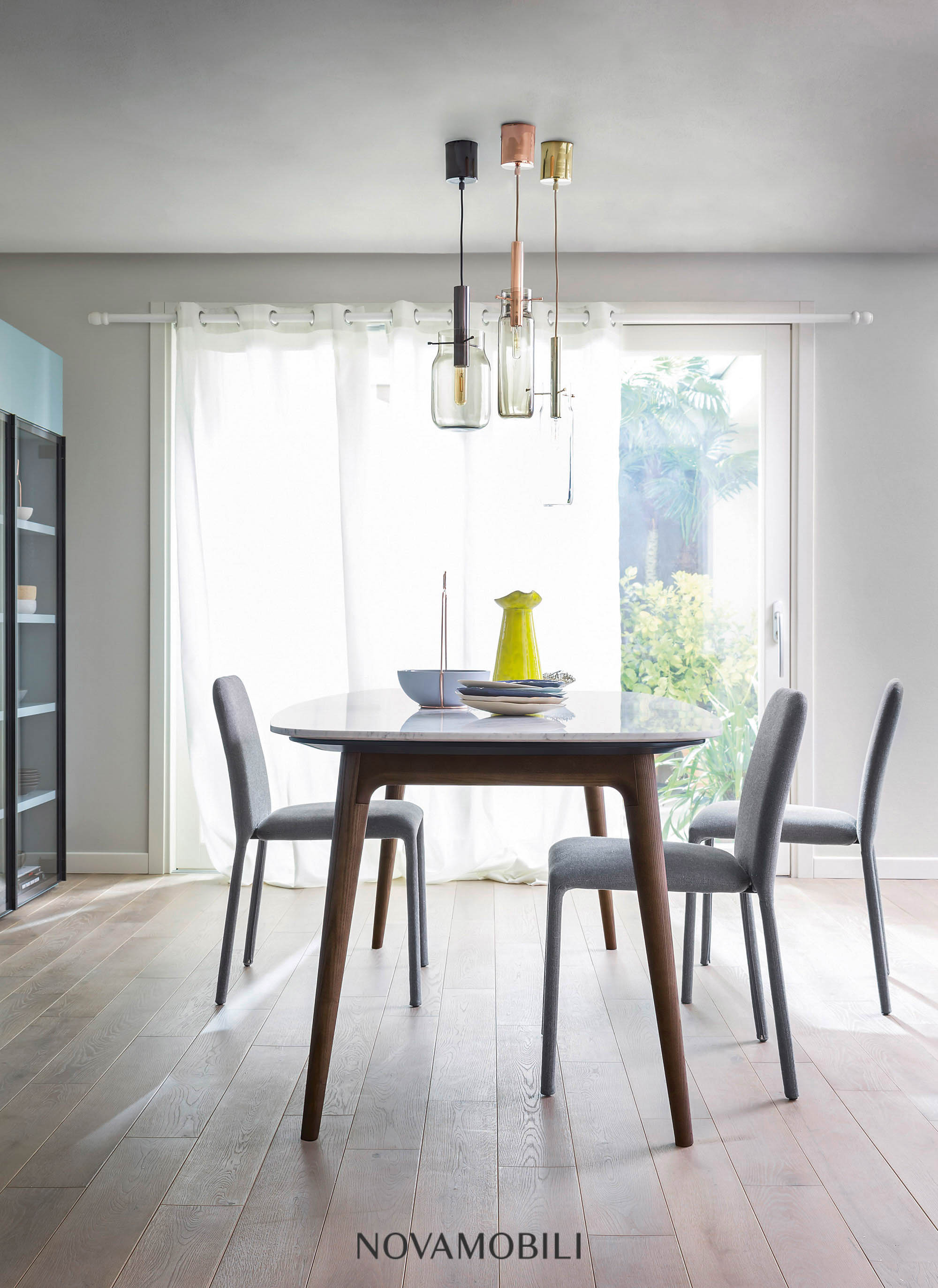 Designed by Matteo Zorzenoni, the Hanami table stands out for its flowing lines and attention to detail. The angled legs tapering towards the floor produce a light, dynamic look. The top can be in polished or matt Bianco Carrara or Grigio Oriente marble, noce canaletto, rovere chiaro or any of the matt lacquered colors, while legs are available in the noce canaletto or rovere chiaro stain.