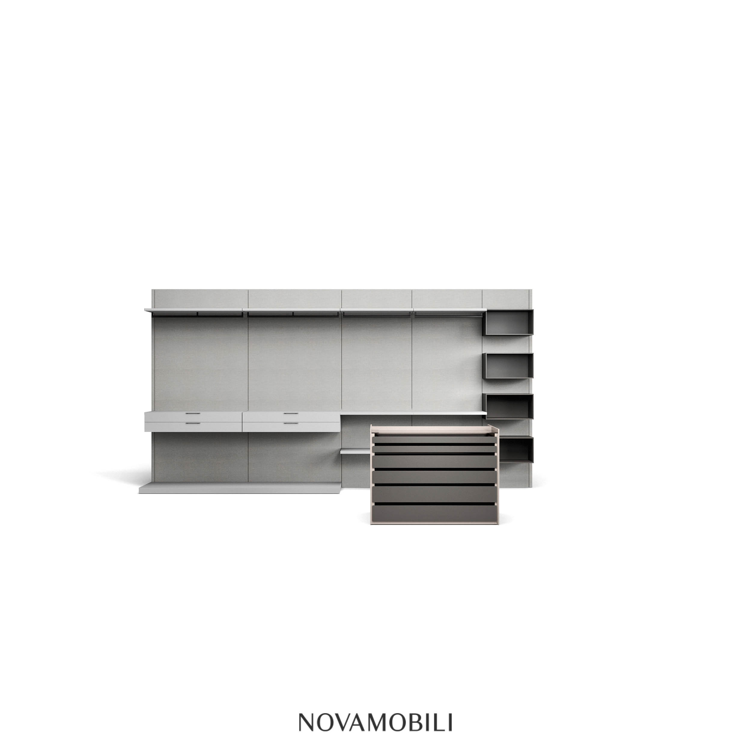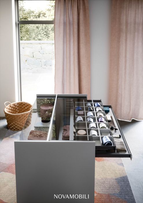The Aristotele double-sided unit is designed to add an elegant finishing touch to the walk-in closets.