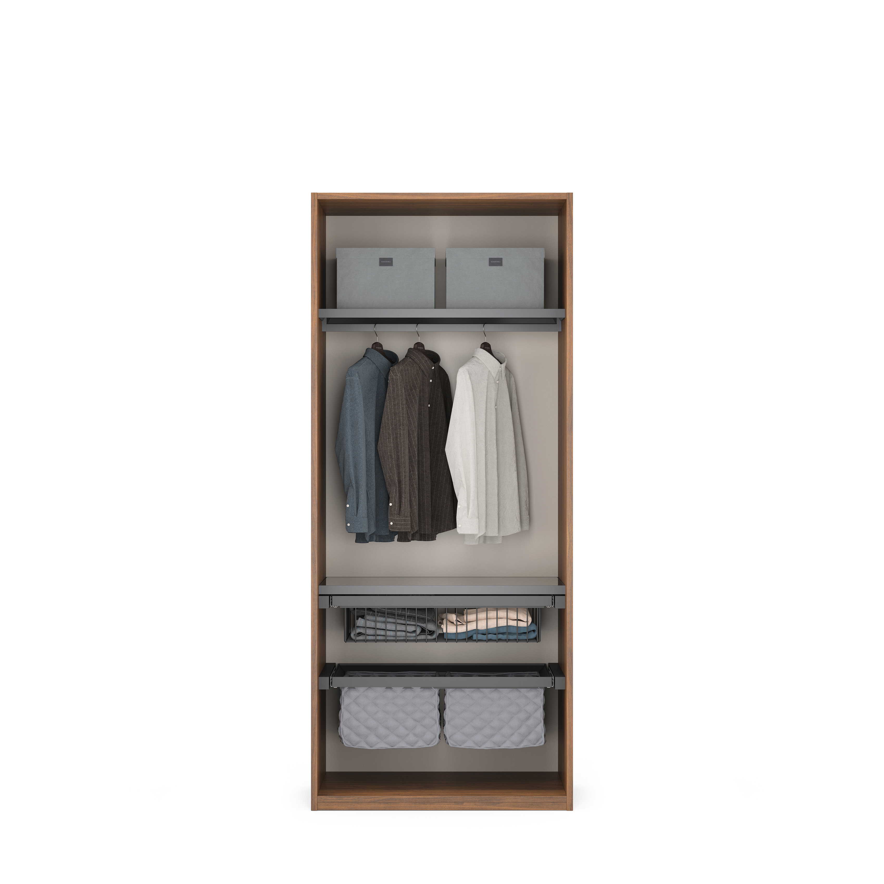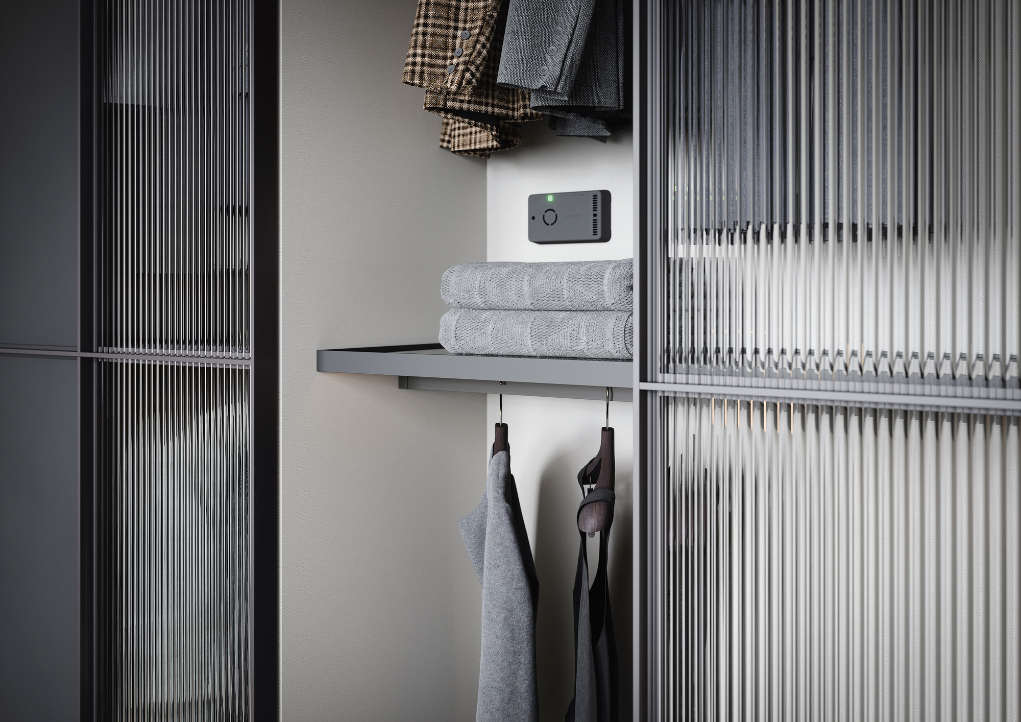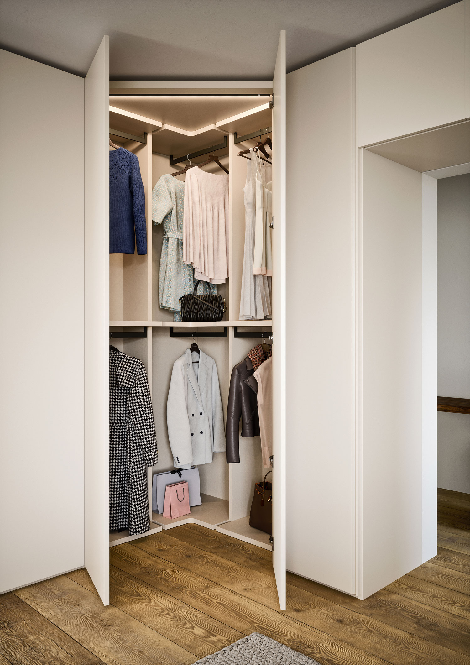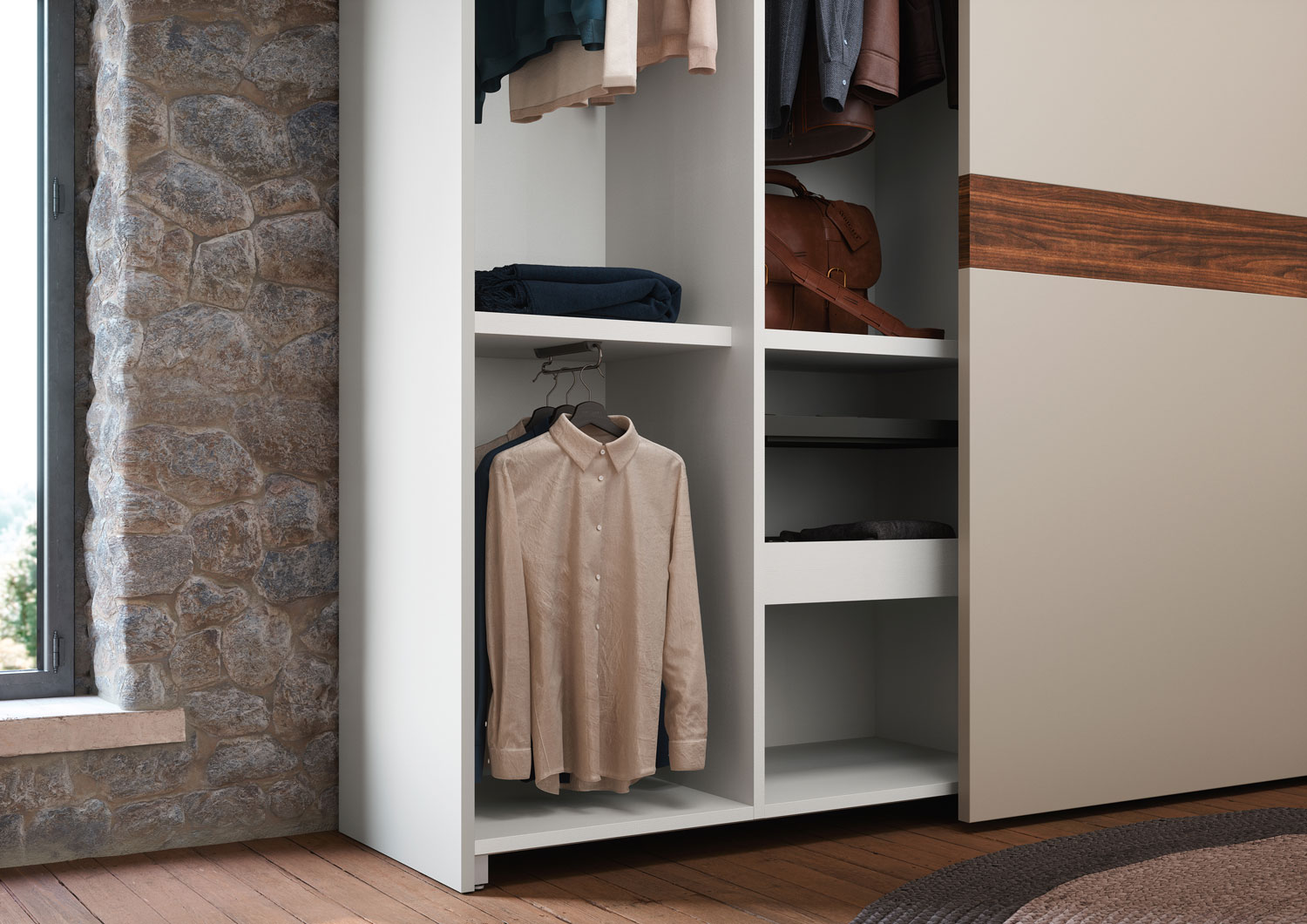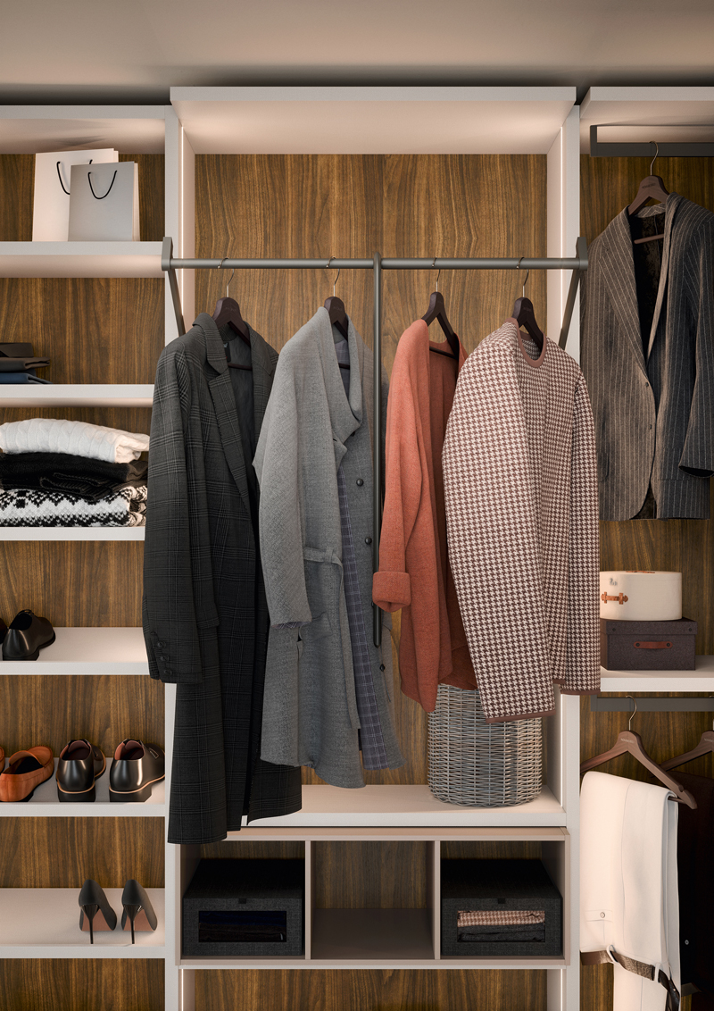 Novamobili clothes racks and hanging rails optimize wardrobe interiors, ideal for walk-in closets or standard wardrobes. They provide a stylish and efficient way to organize clothing, including innovative options like motorized clothes lifts.