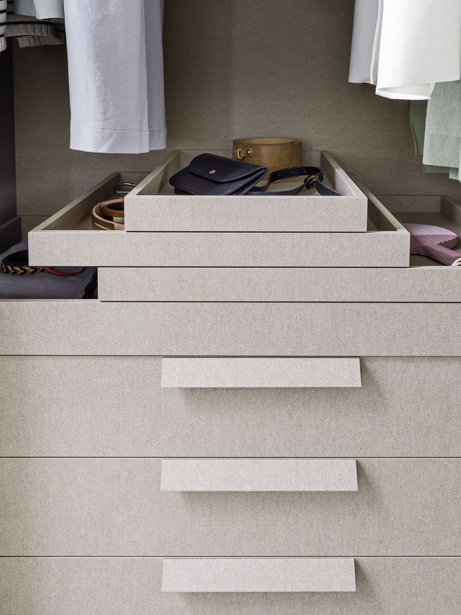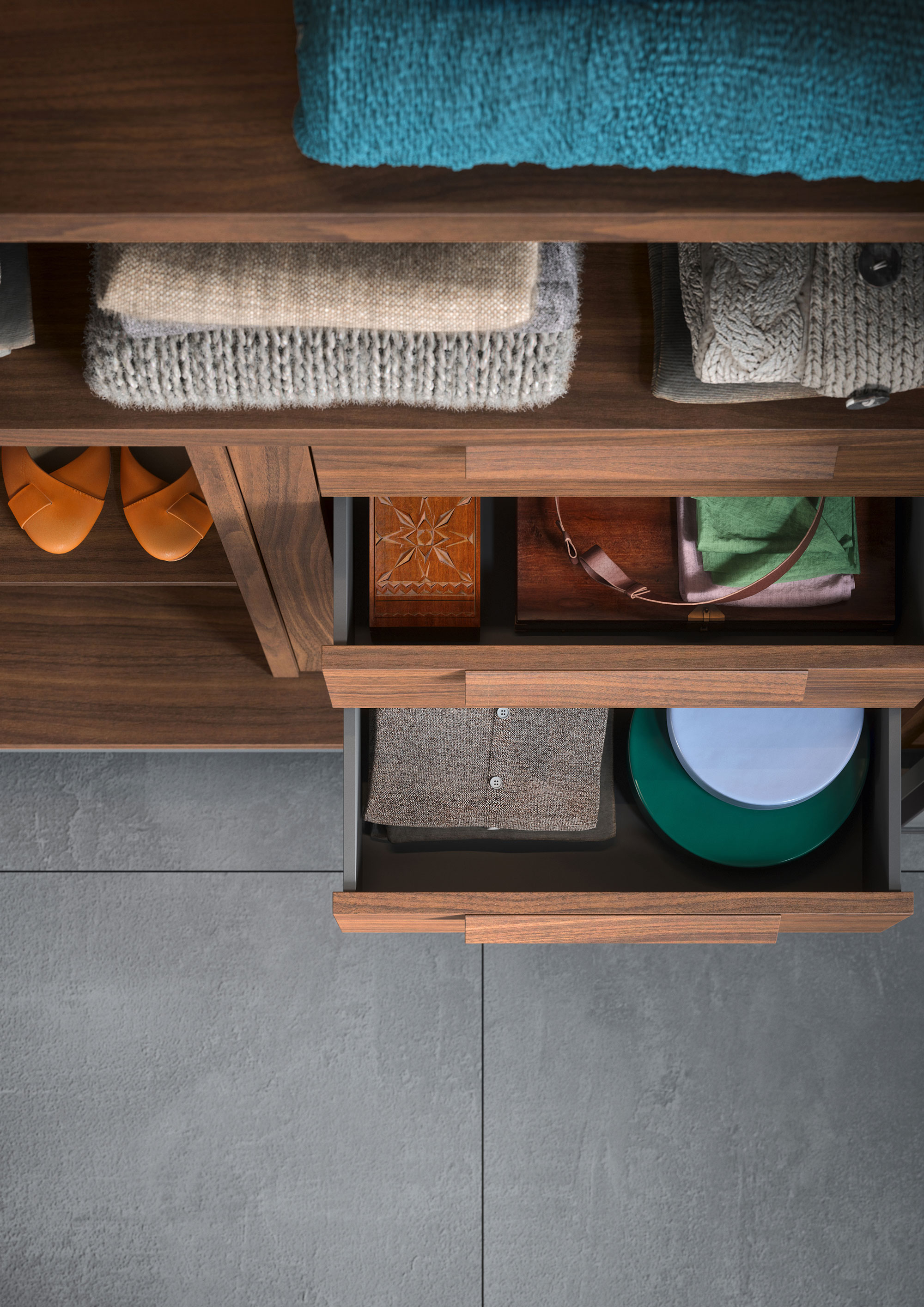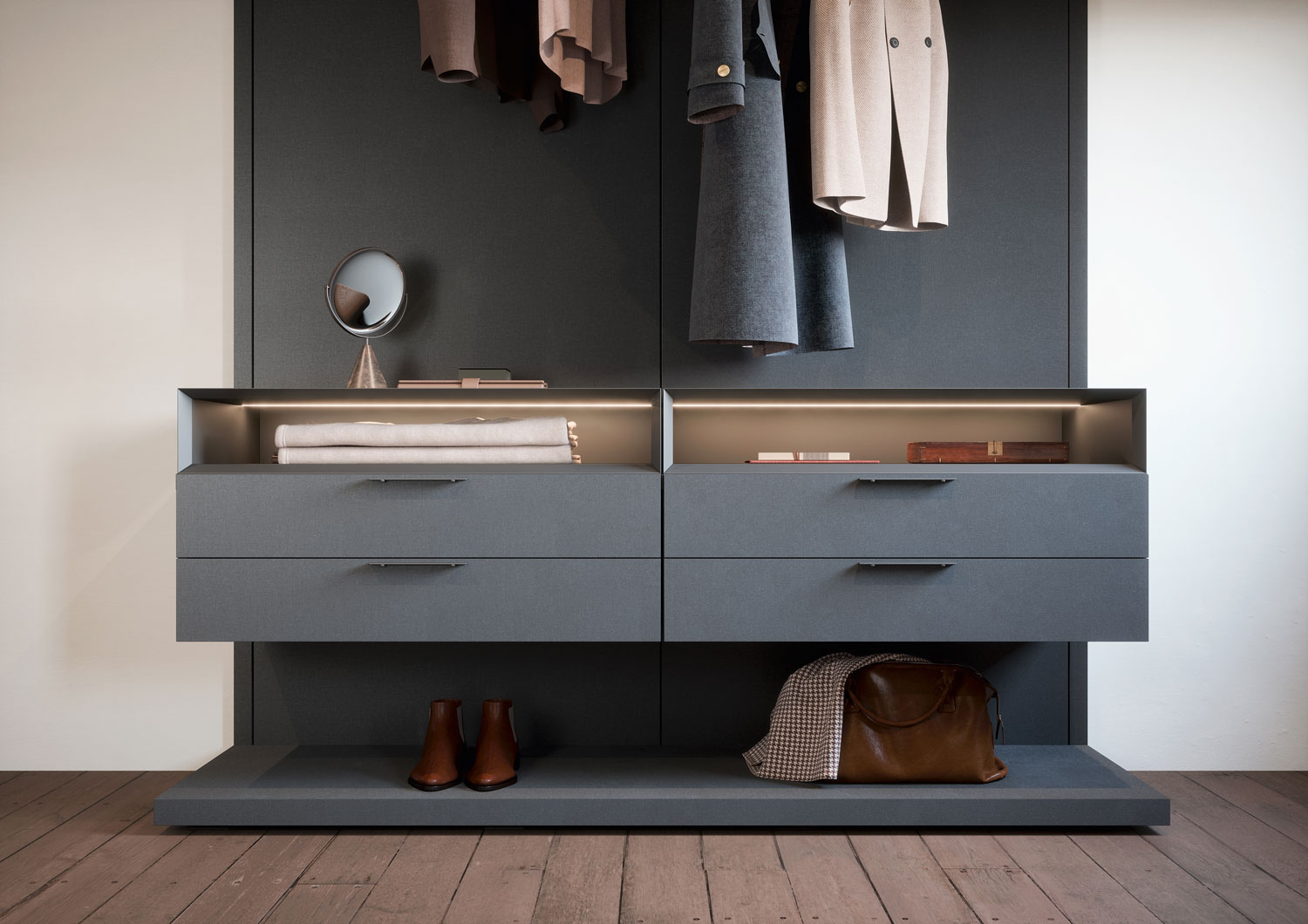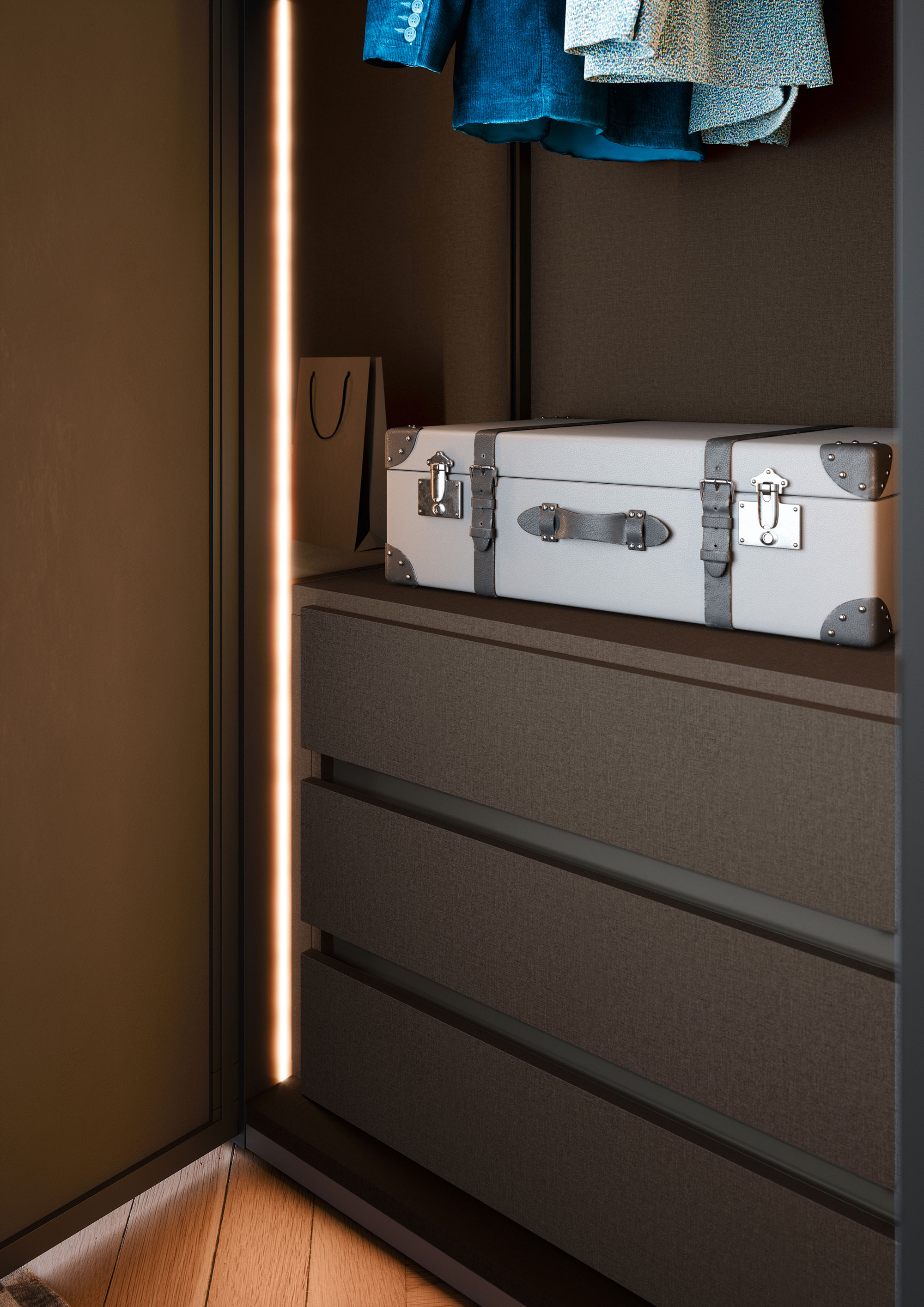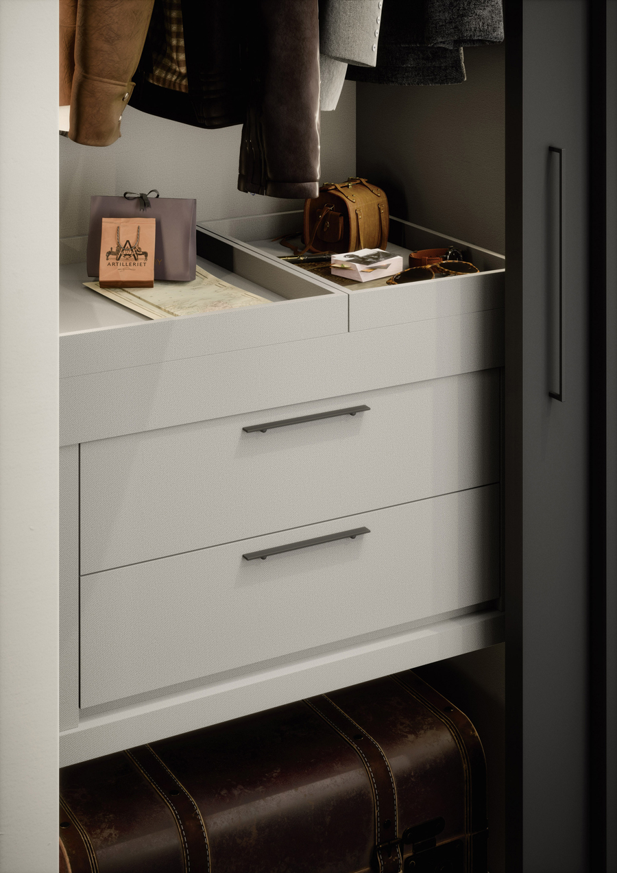Explore our range of customizable internal drawer units for wardrobes, available in various sizes, colors, and finishes. They offer both practical organization and stylish integration with Novamobili wardrobes.