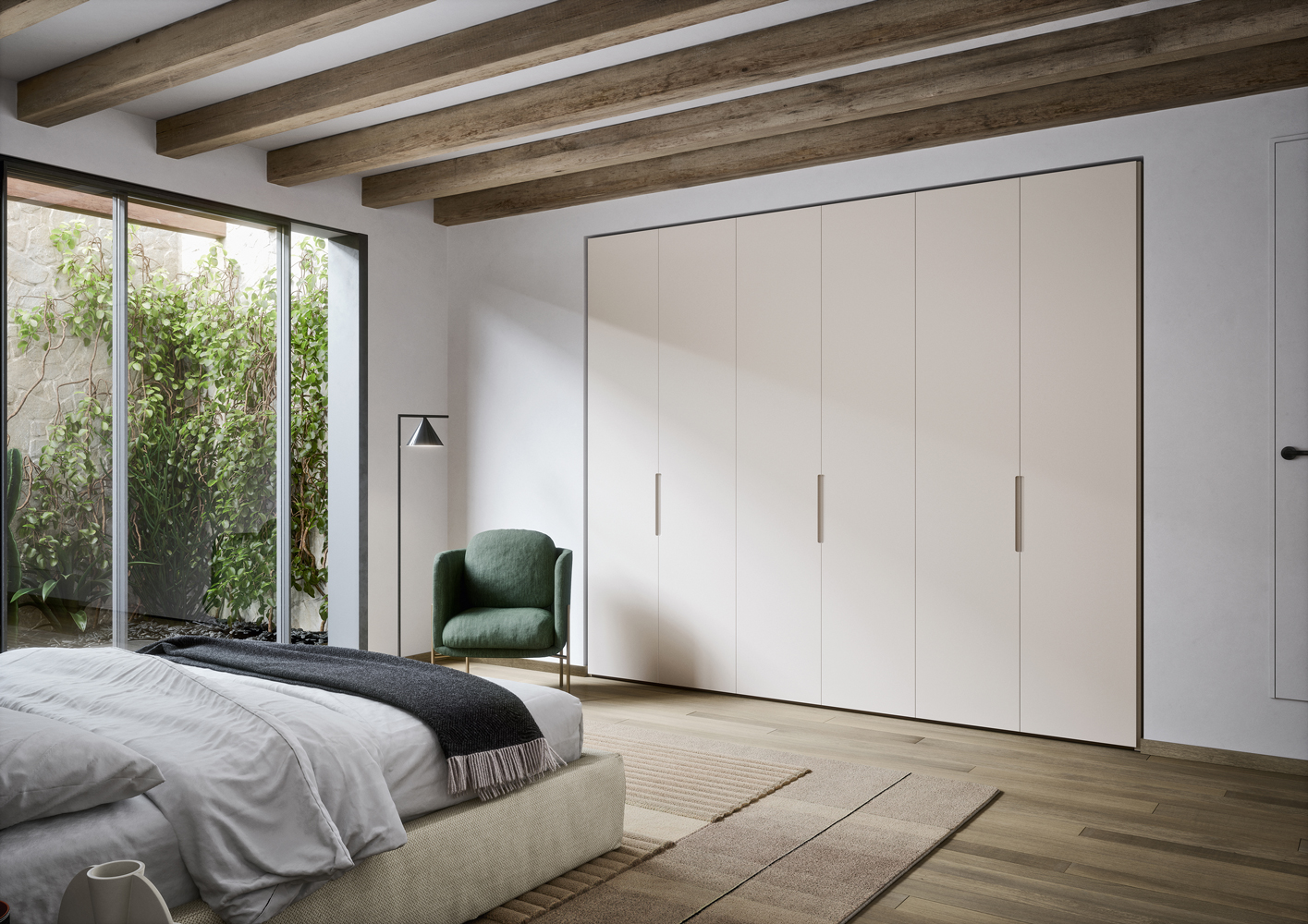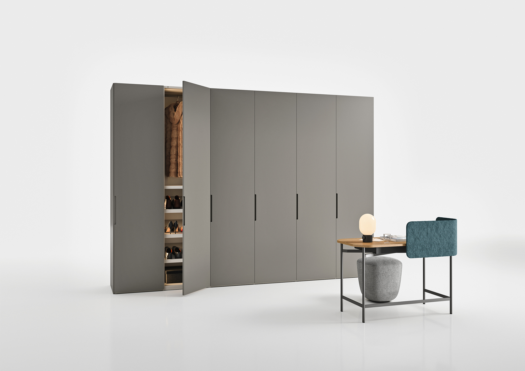 Offering an innovative and functional take on the fitted wardrobe, Vico broadens the hinged door wardrobe range. It features a recessed handle that makes it easy to open. Its understated, linear style lends itself effortlessly to Alfa and Gola wardrobes that can be used to create functional spaces which you can accessorize with mirrors, benches, or desks, and other items if you so desire. The Vico wardrobe is available in all matt lacquered colors.