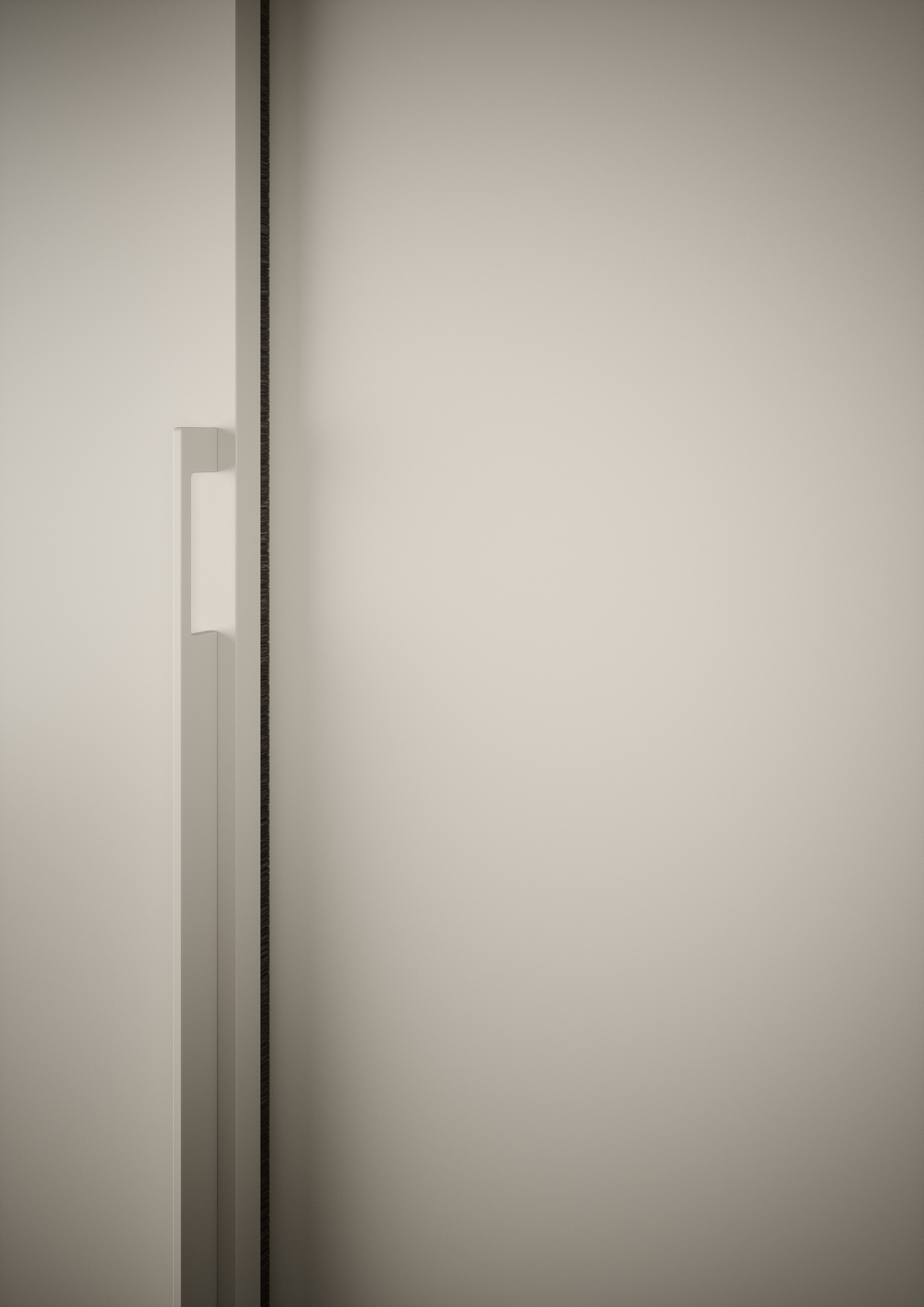 With its pared-back design and clean lines, the Alfa sliding door wardrobe is an elegant addition to any bedroom. Available in all matt lacquered colors and in melamine, eco-wood, and super matt finishes, it can be customized with a wide range of handles. The wardrobe can be recessed, set against a wall, or fitted in a corner arrangement.