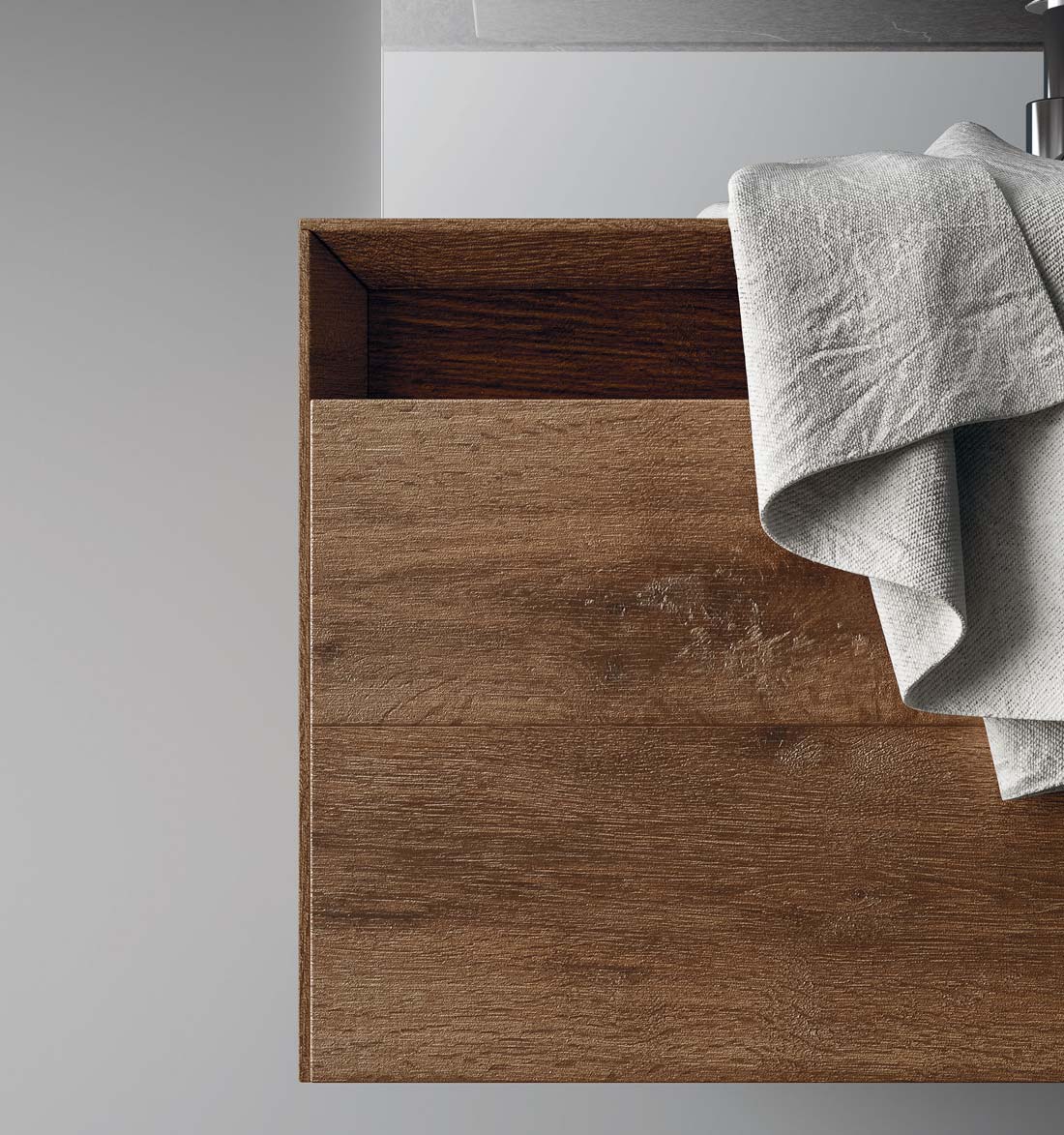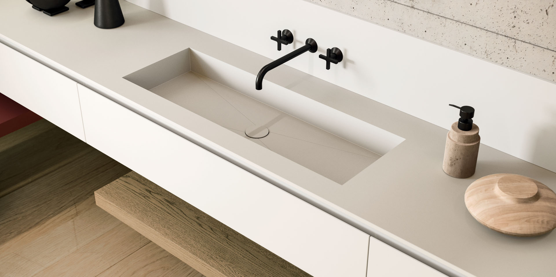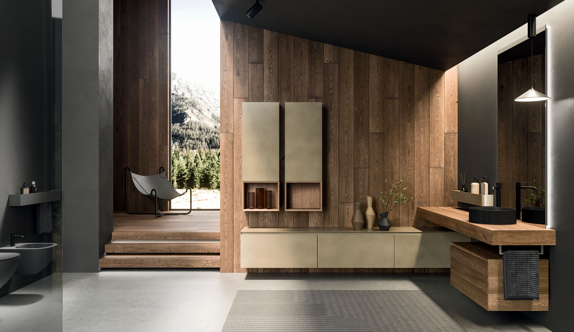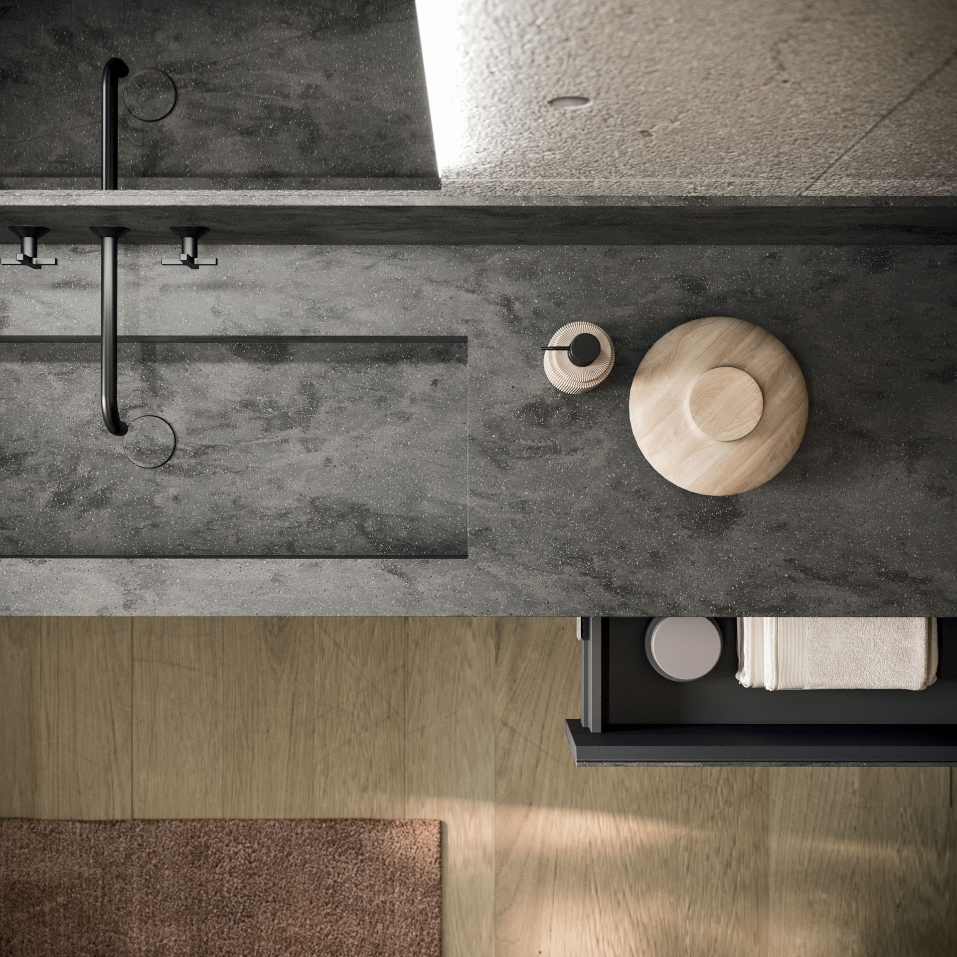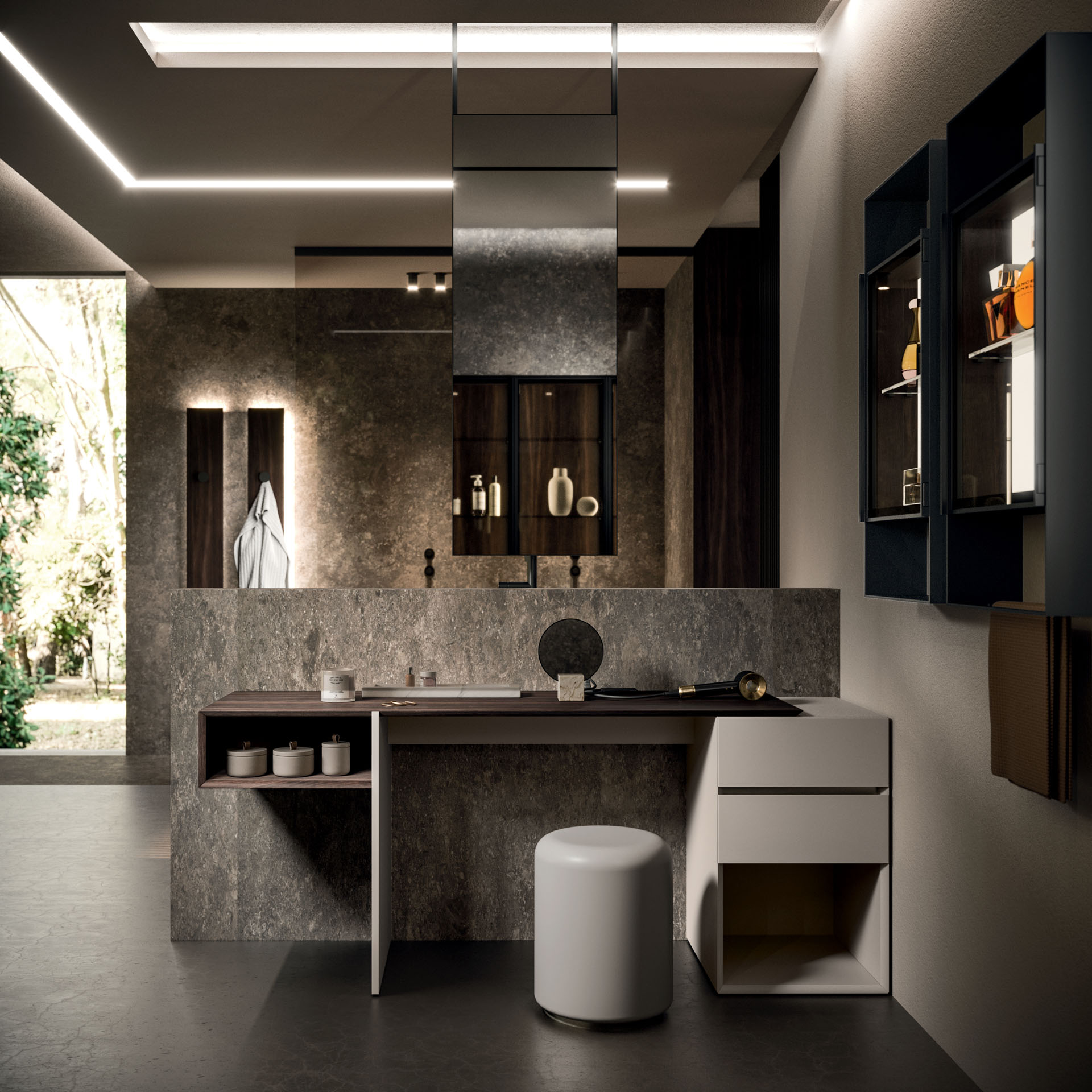 360 is a modular configuration system that’s offers a completely customisable bathroom solution. This very contemporary collection harmonises the balance of hand-planed laths of parquet and the contemporary style lines of the surfaces perfectly. Each cabinet becomes a piece of art through meticulous design, which makes every detail special. 360 Gradi modular system is extremely versatile in its materials; sand lacquers, glossy, woods or Kerlite®, Fenix NTM®, marbles, stones, metal, Koral, and varnished glass cladding and even slabs of parquet floor are used. The main feature of the Loft collection is the curved washbasin complimented by stylish hidden pull out storage spaces available in lacquered or wood finish. This bathroom collection ignites the feeling of living amongst a work of art.