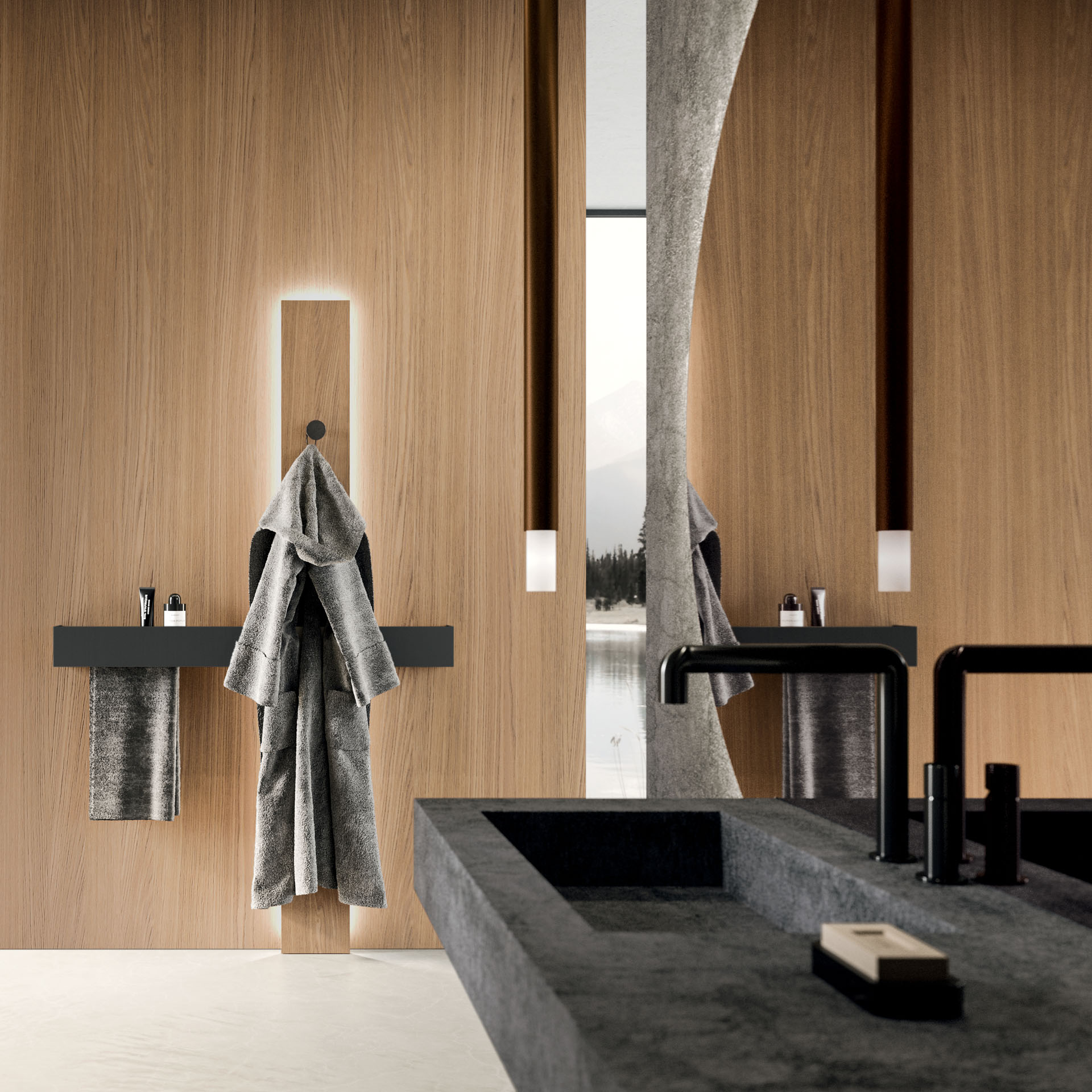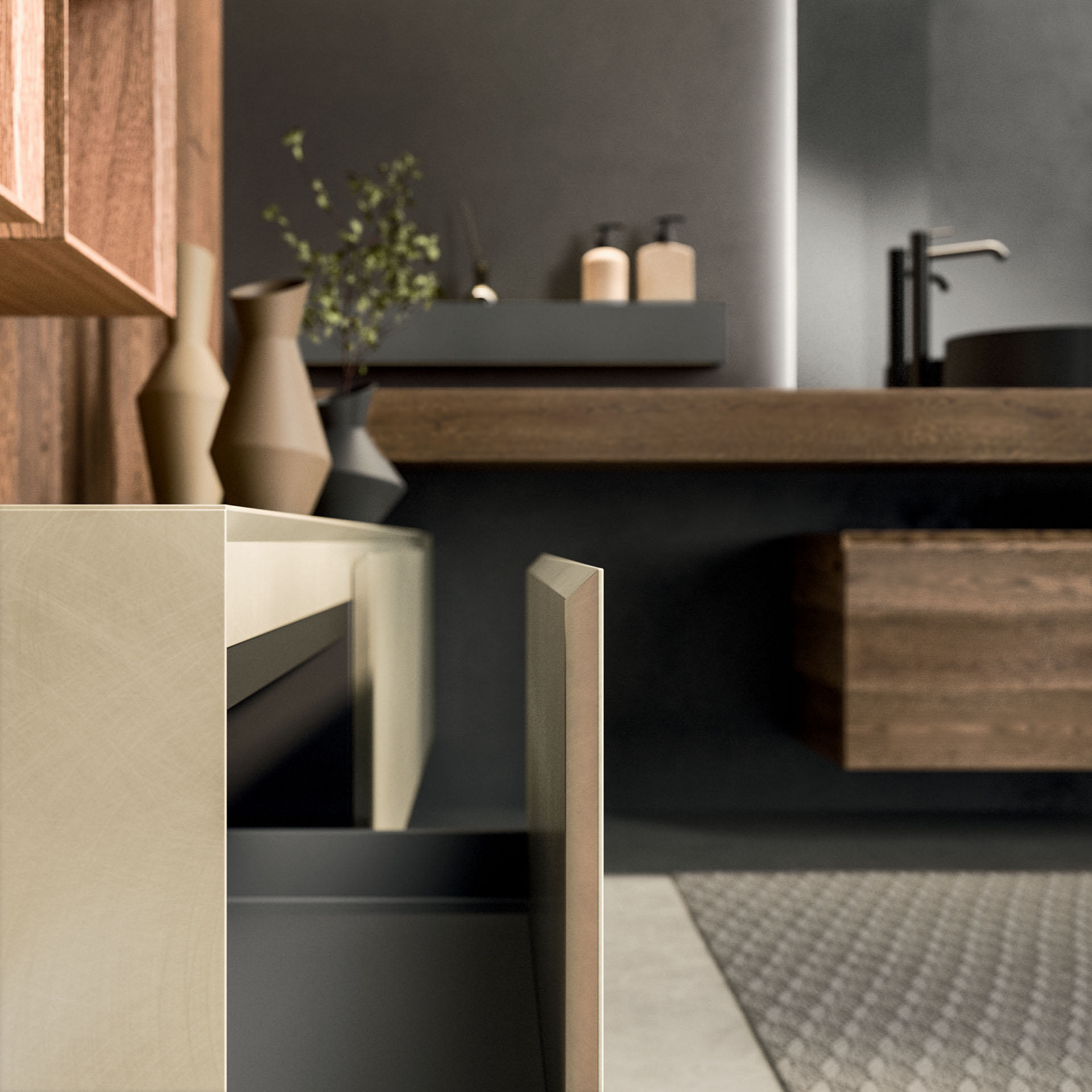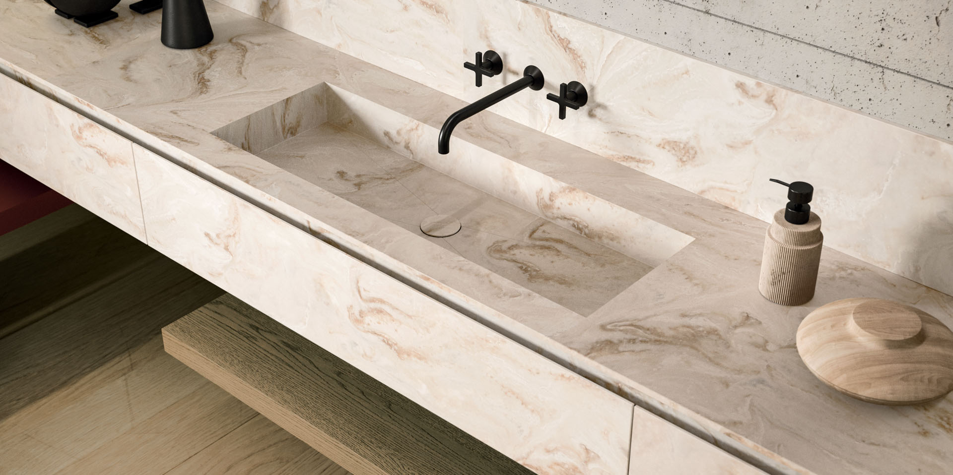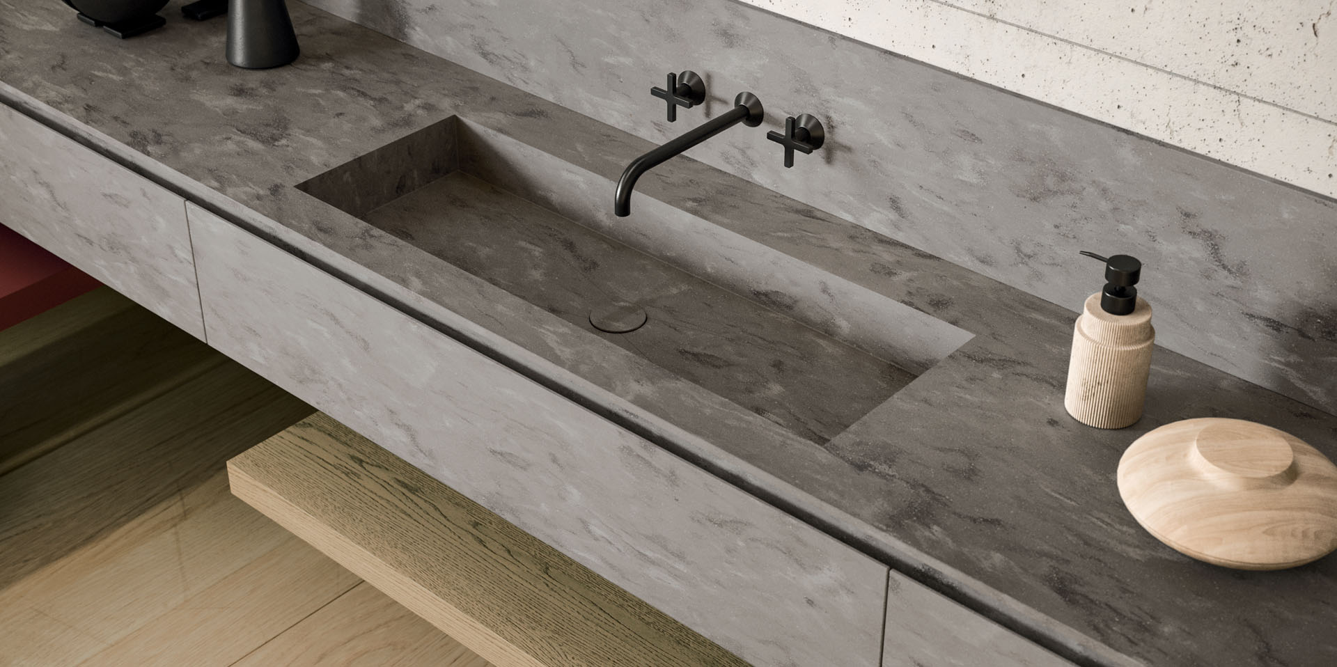 360 is a modular configuration system that’s offers a completely customisable bathroom solution. This very contemporary collection harmonises the balance of hand-planed laths of parquet and the contemporary style lines of the surfaces perfectly. Each cabinet becomes a piece of art through meticulous design, which makes every detail special. 360 Gradi modular system is extremely versatile in its materials; sand lacquers, glossy, woods or Kerlite®, Fenix NTM®, marbles, stones, metal, Koral, and varnished glass cladding and even slabs of parquet floor are used. The main feature of the Loft collection is the curved washbasin complimented by stylish hidden pull out storage spaces available in lacquered or wood finish. This bathroom collection ignites the feeling of living amongst a work of art.