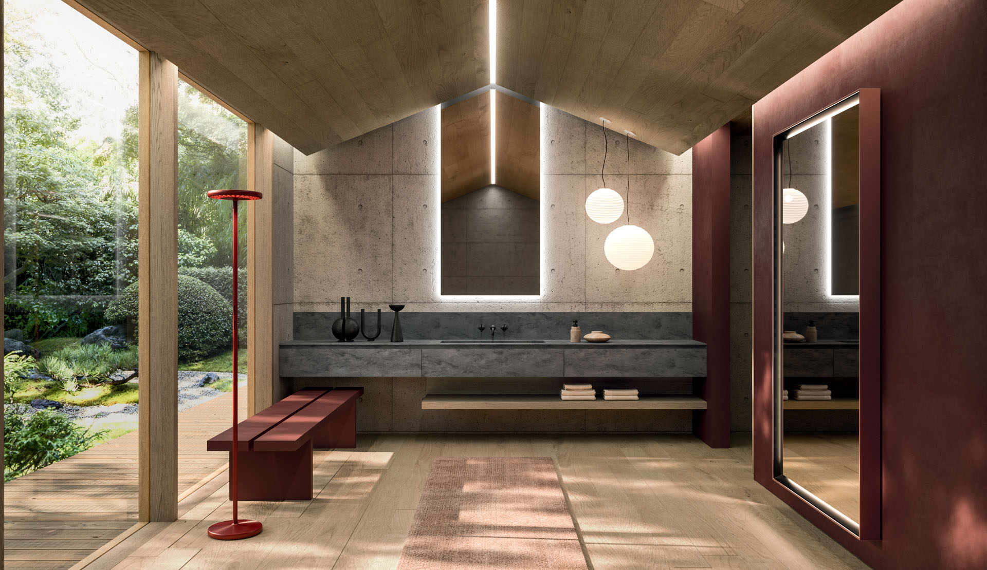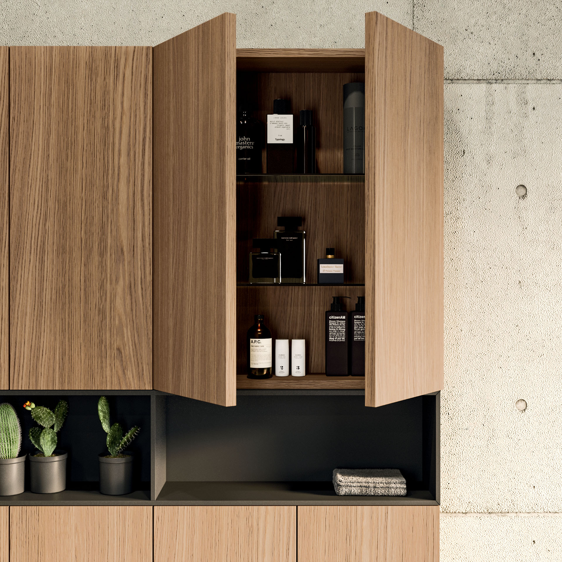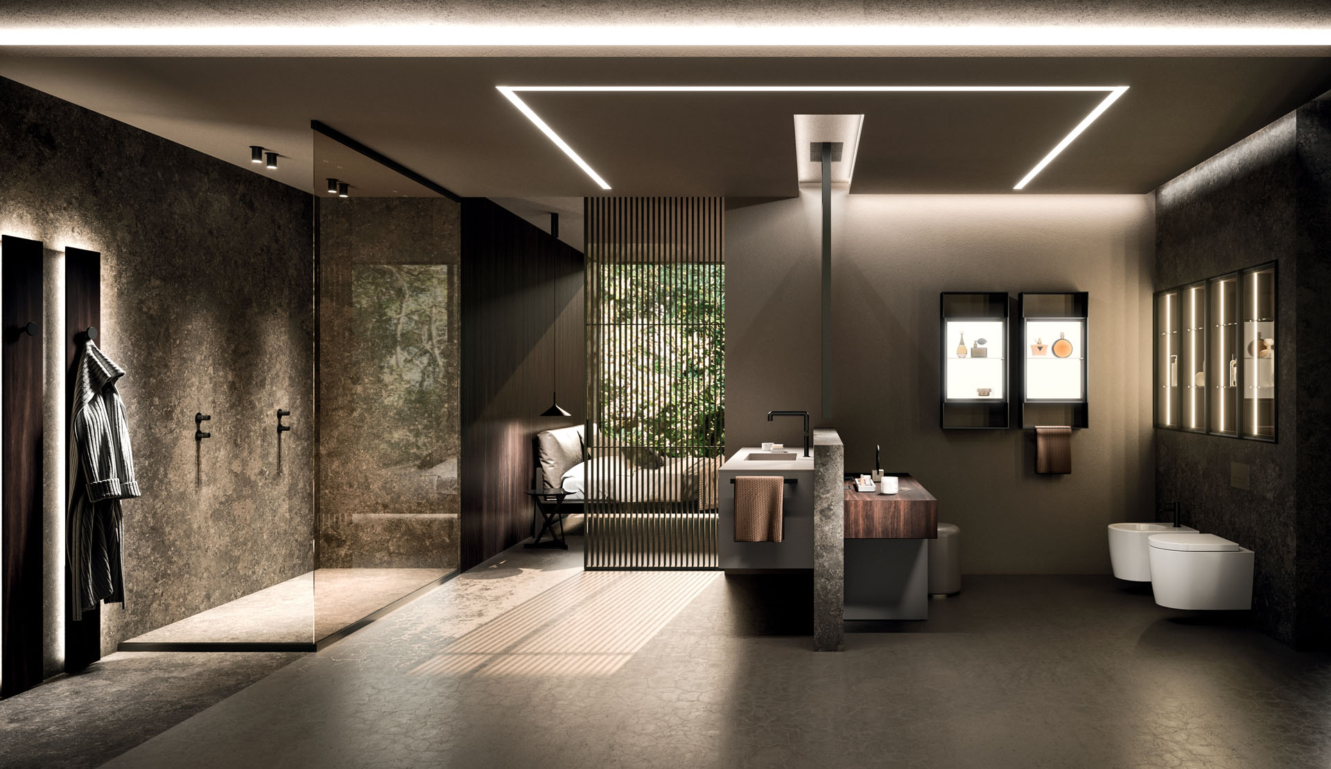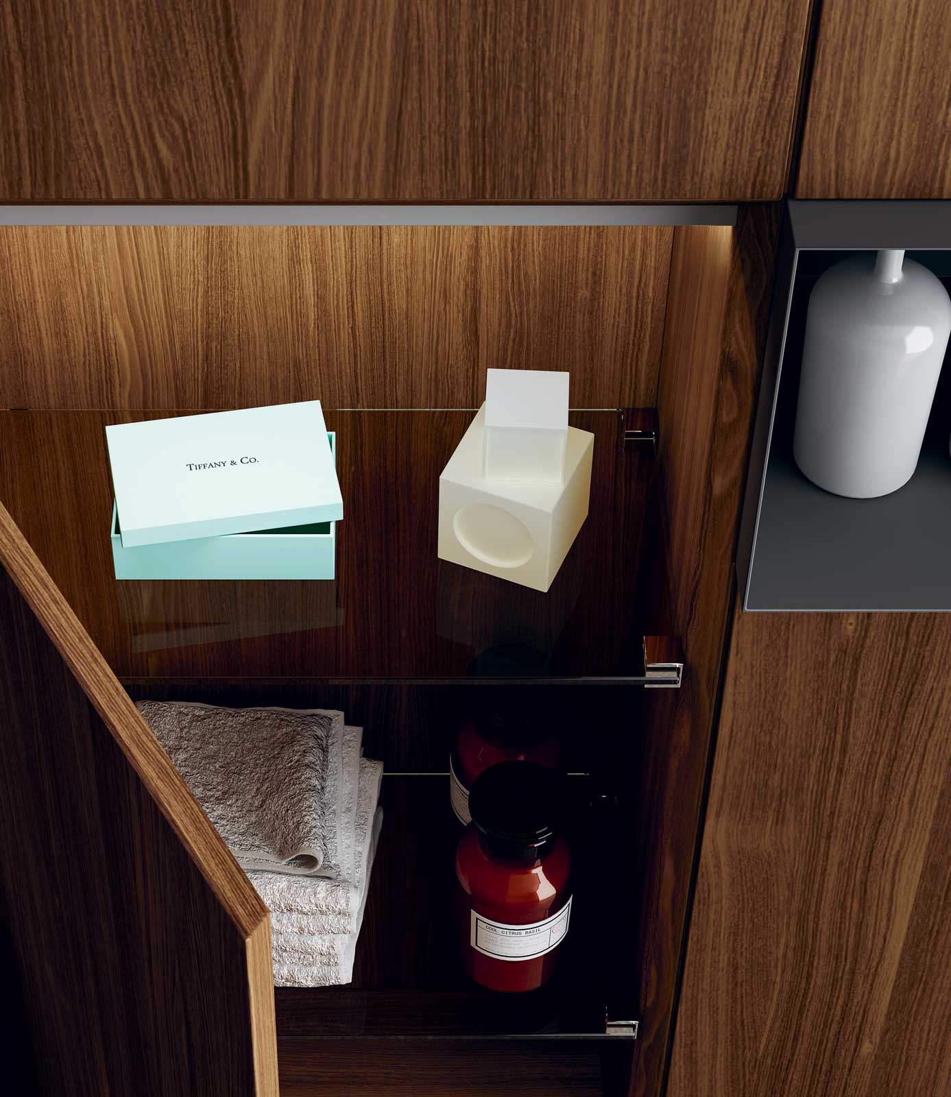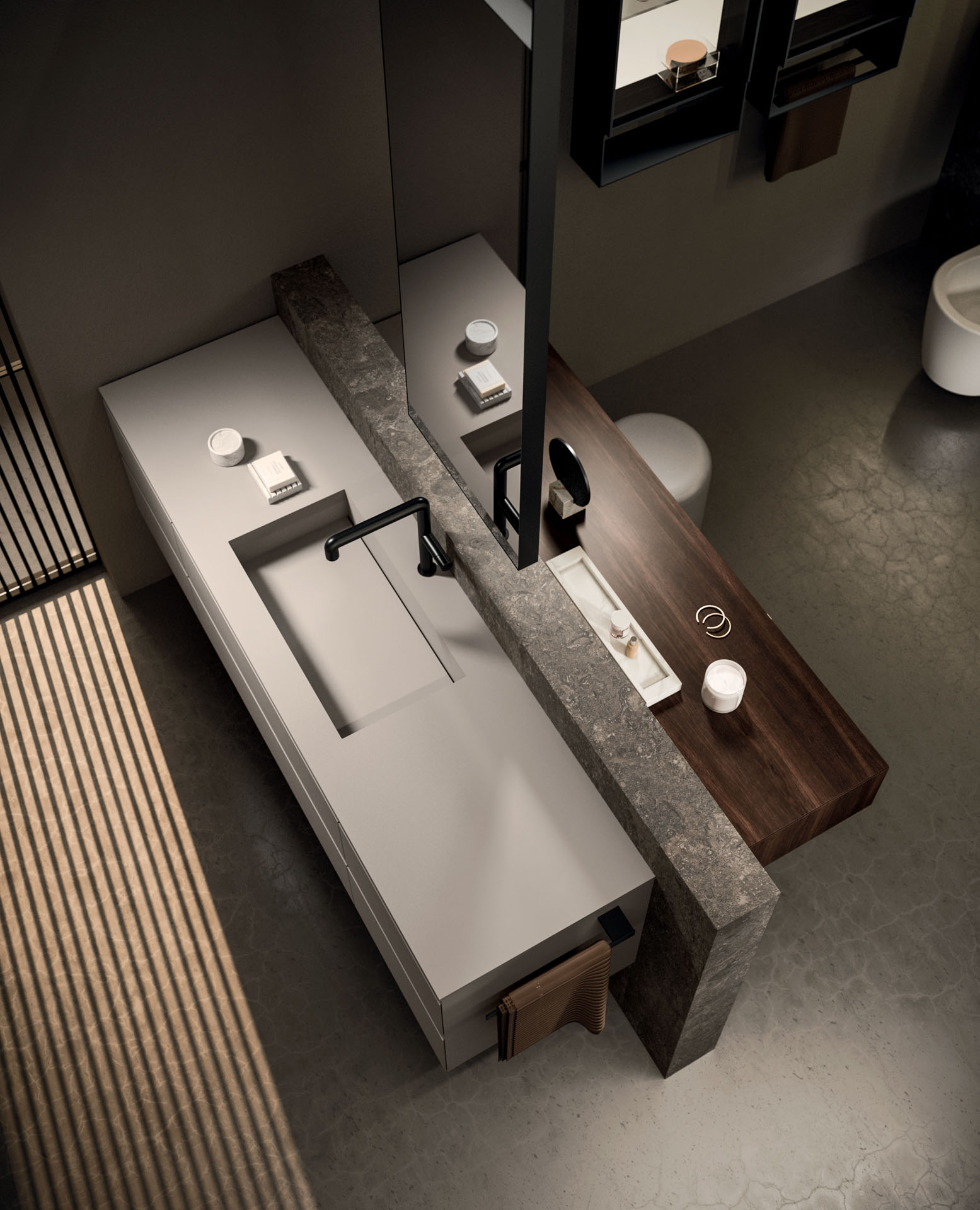 360 is a modular configuration system that’s offers a completely customisable bathroom solution. This very contemporary collection harmonises the balance of hand-planed laths of parquet and the contemporary style lines of the surfaces perfectly. Each cabinet becomes a piece of art through meticulous design, which makes every detail special. 360 Gradi modular system is extremely versatile in its materials; sand lacquers, glossy, woods or Kerlite®, Fenix NTM®, marbles, stones, metal, Koral, and varnished glass cladding and even slabs of parquet floor are used. The main feature of the Loft collection is the curved washbasin complimented by stylish hidden pull out storage spaces available in lacquered or wood finish. This bathroom collection ignites the feeling of living amongst a work of art.