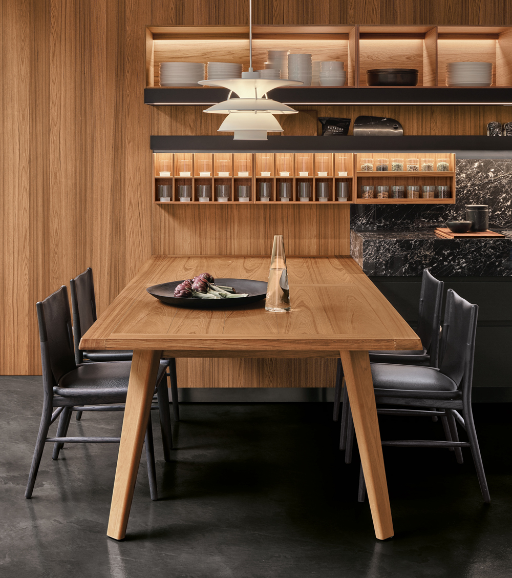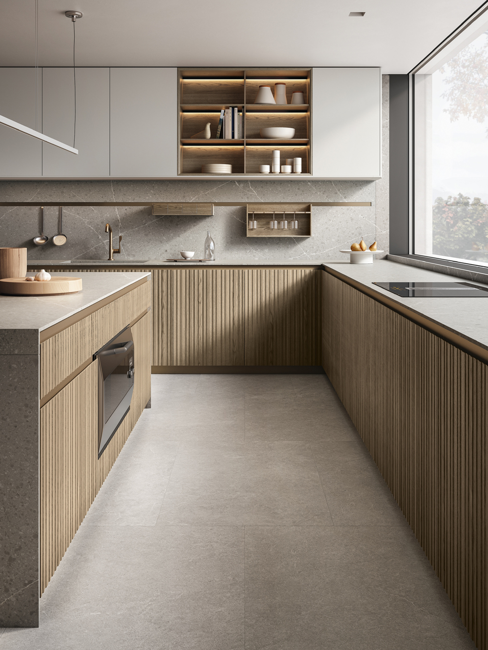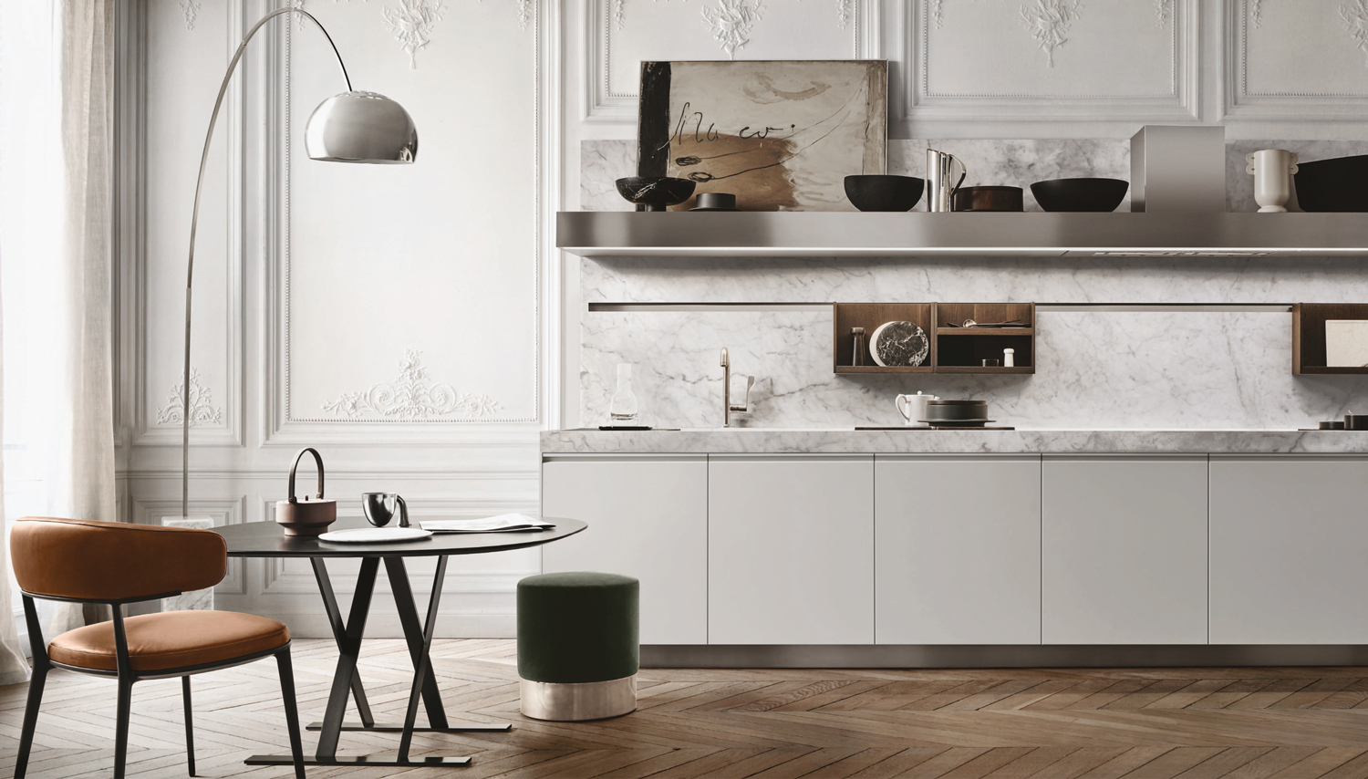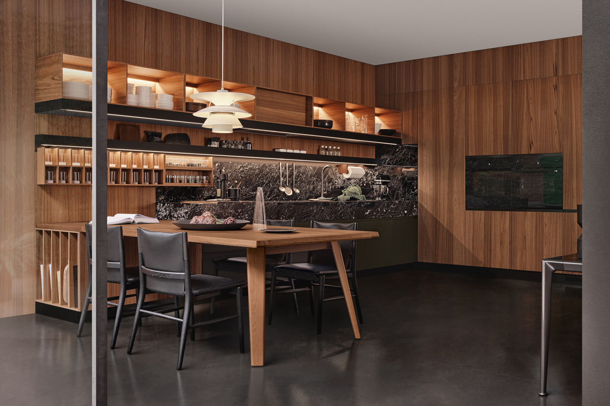 The Accessory Rails Collection—including the 7.8 cm Accessory Rail and Thea Rail—enhances the space between base and wall units. Made in aluminum with stainless or black anodised finish, these customizable rails can integrate sockets, ceramic inserts, and LED lighting.