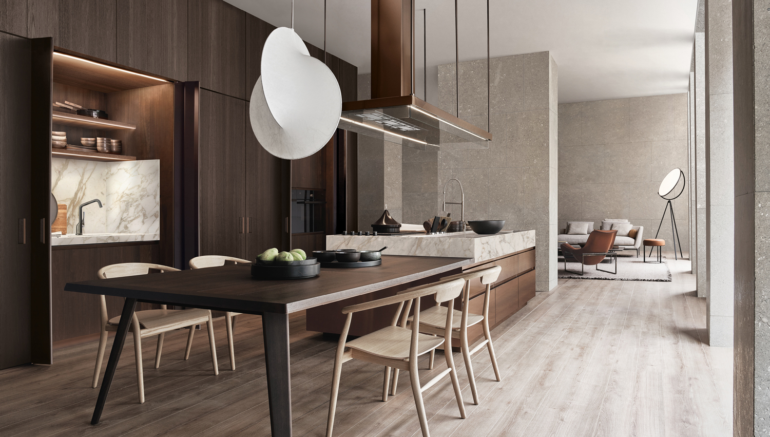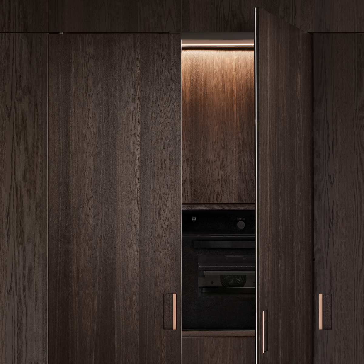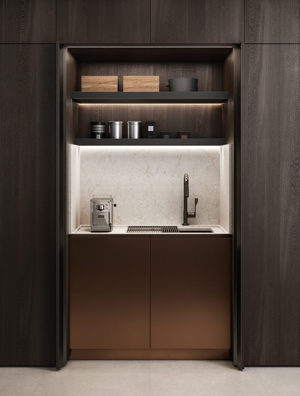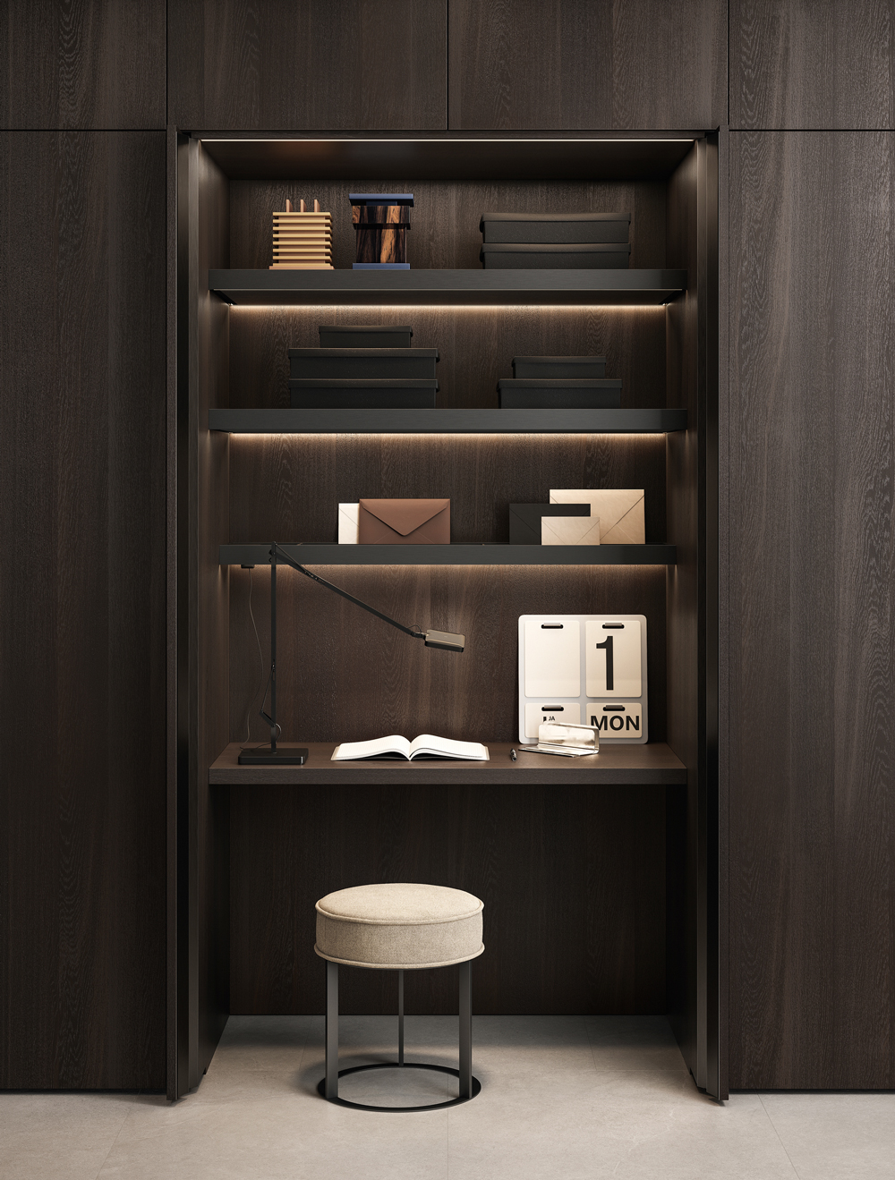 The Pocket Door Systems are designed to hide and reveal workspaces. Ideal for modular kitchens, the doors slide away for full access and close to create a clean finish. Customizable in function and finish.