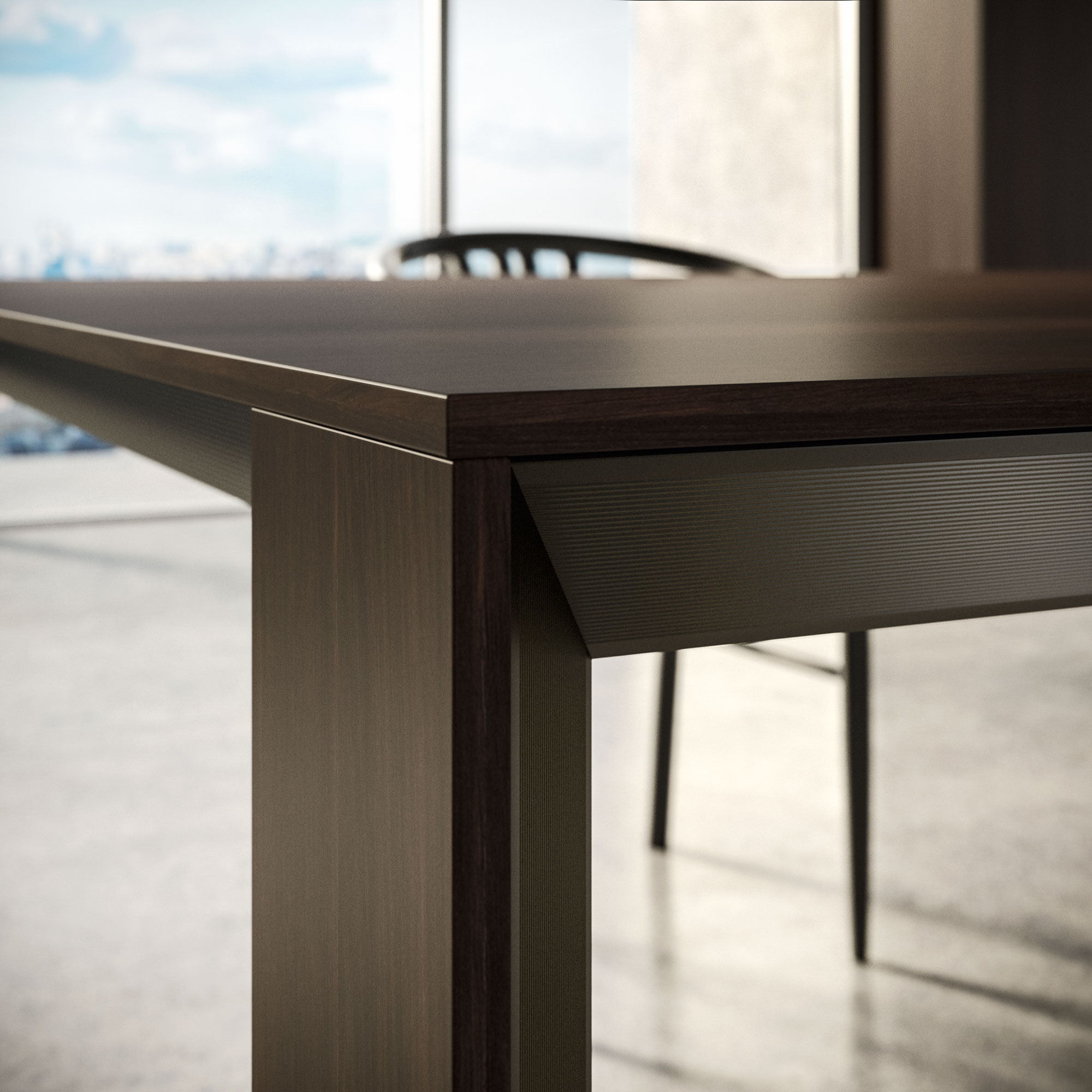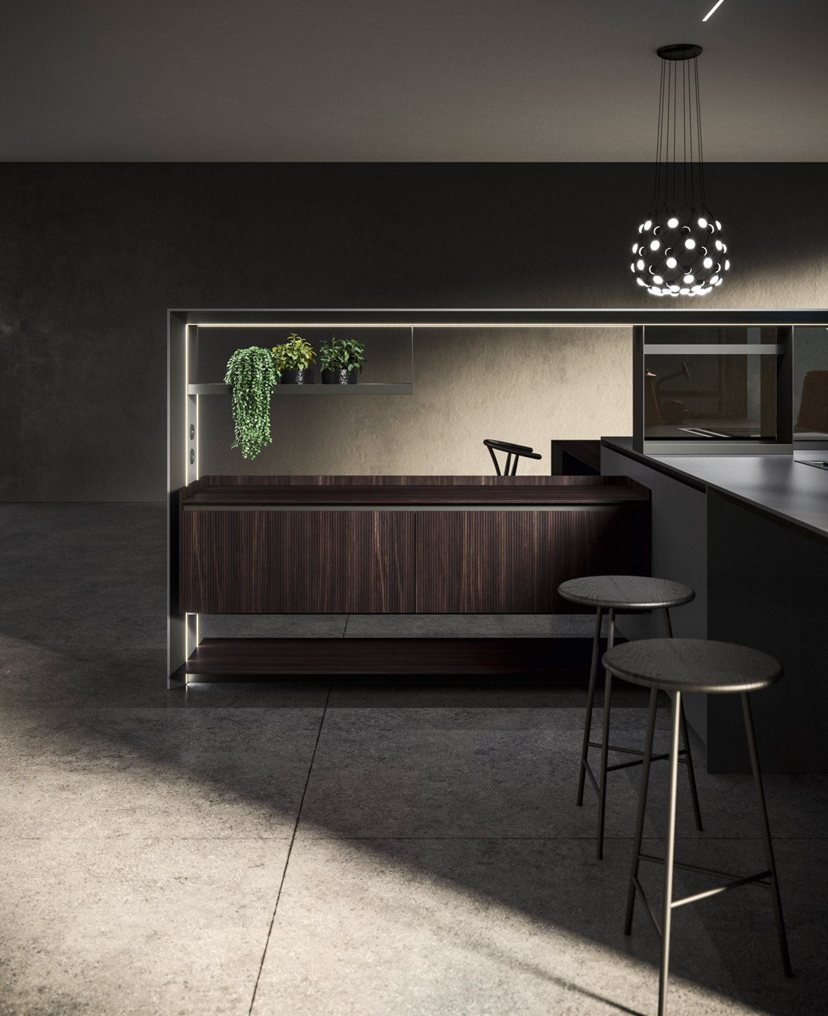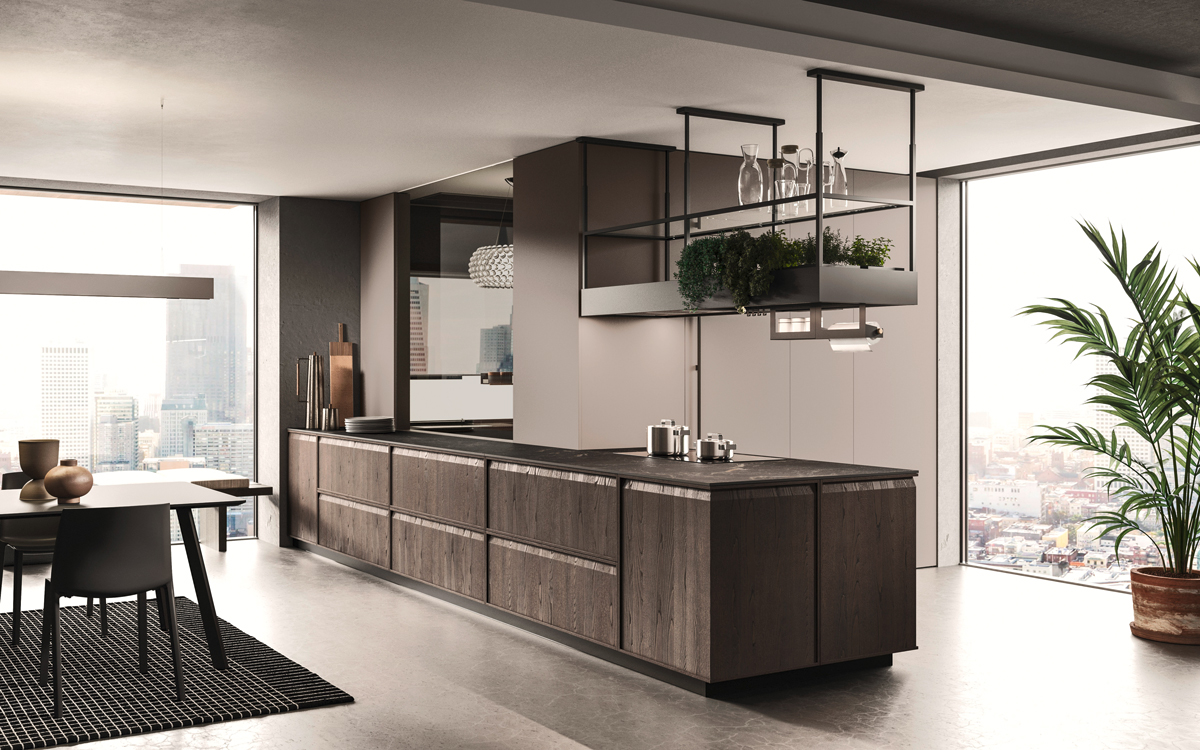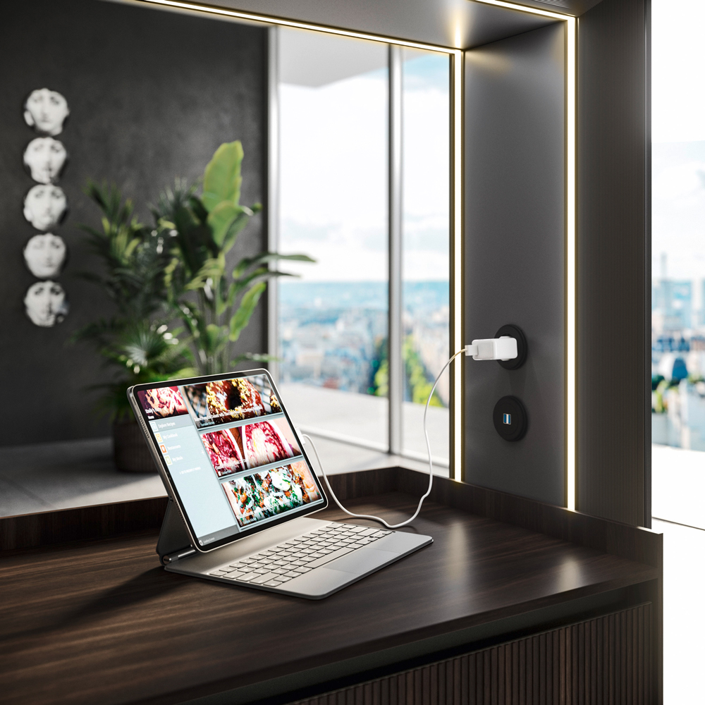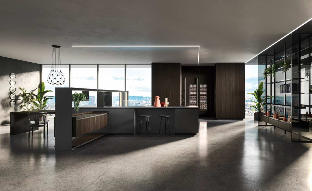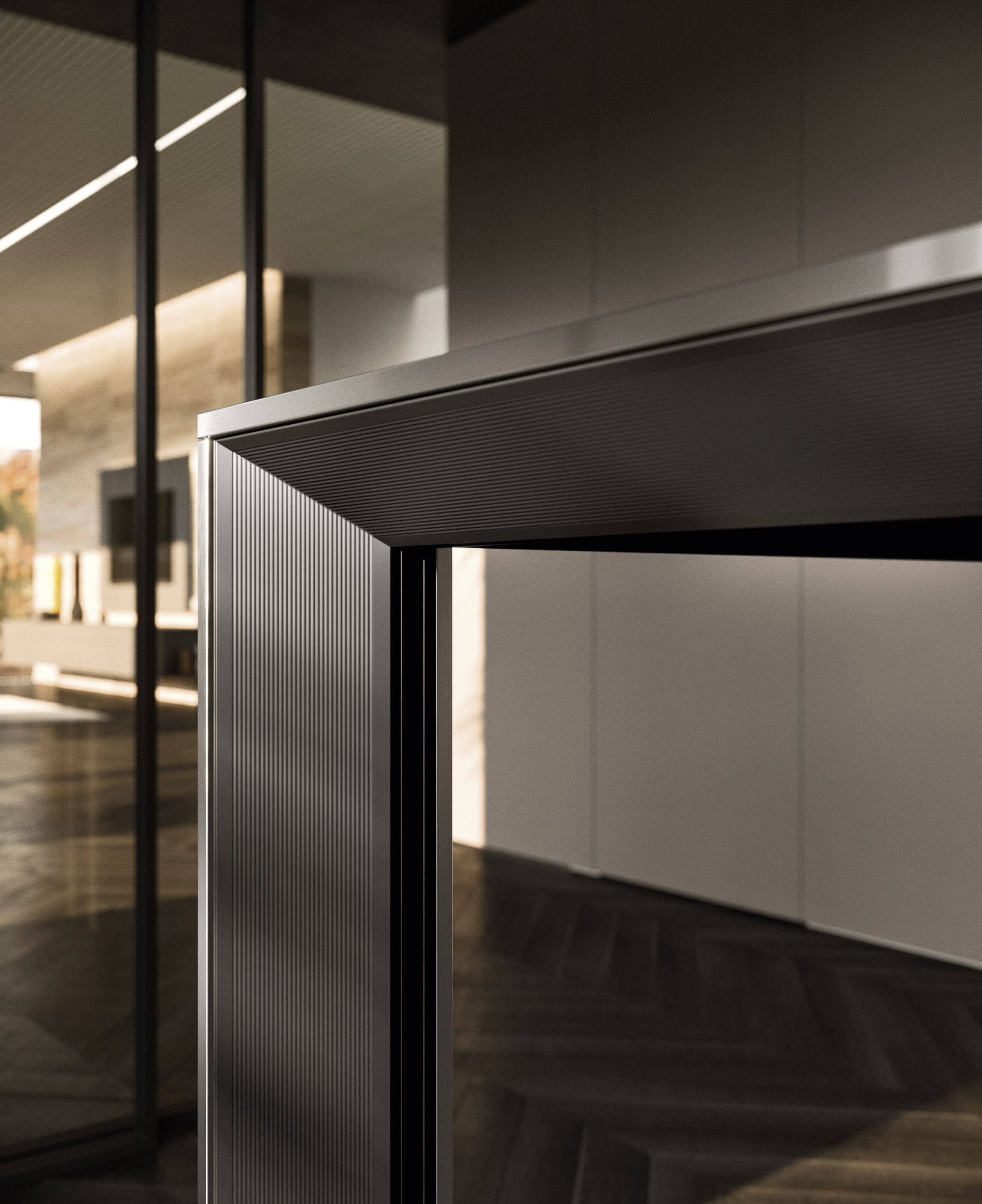 Alu_Project is the defining feature of the collection, characterised by its sleek black anodised aluminium profile. Serving as both structure and connector, it integrates effortlessly across suspended units, tables, workstations, and partitions. Its versatility enables limitless design configurations, bringing visual coherence and a bold architectural identity to every space.