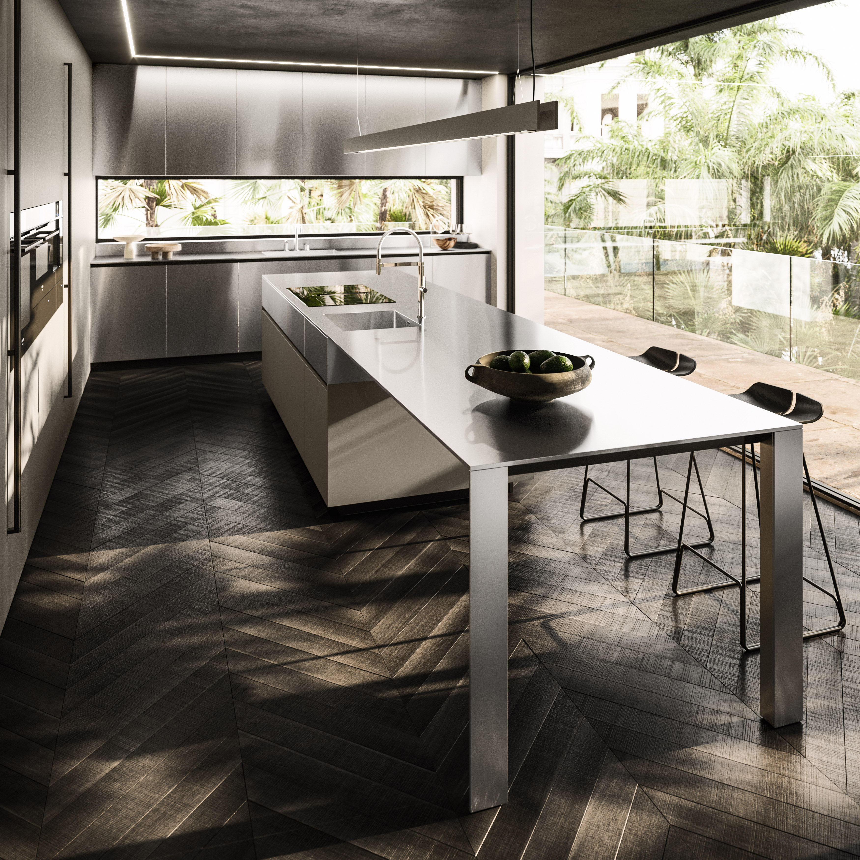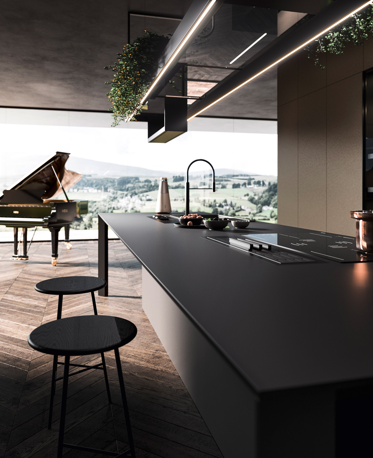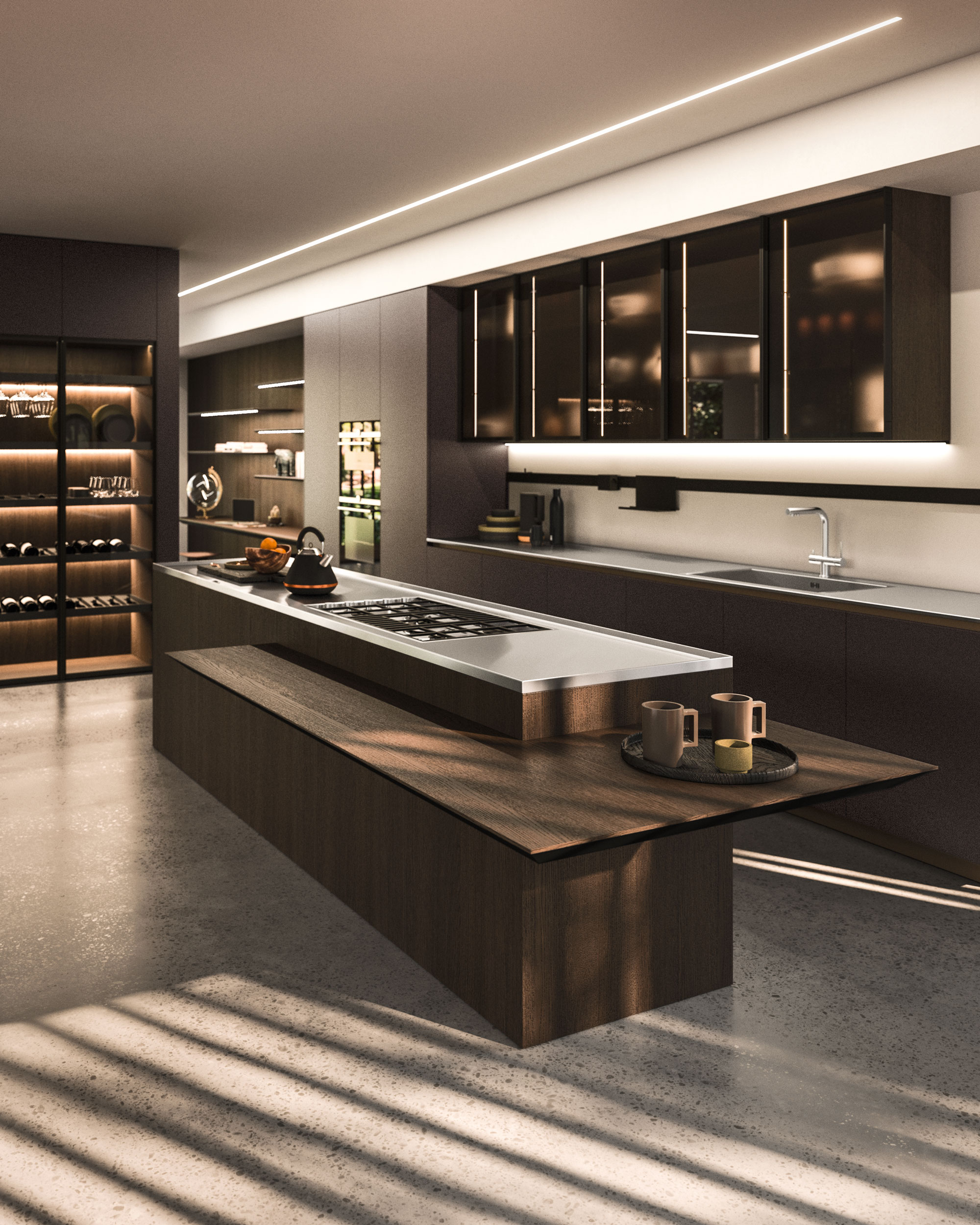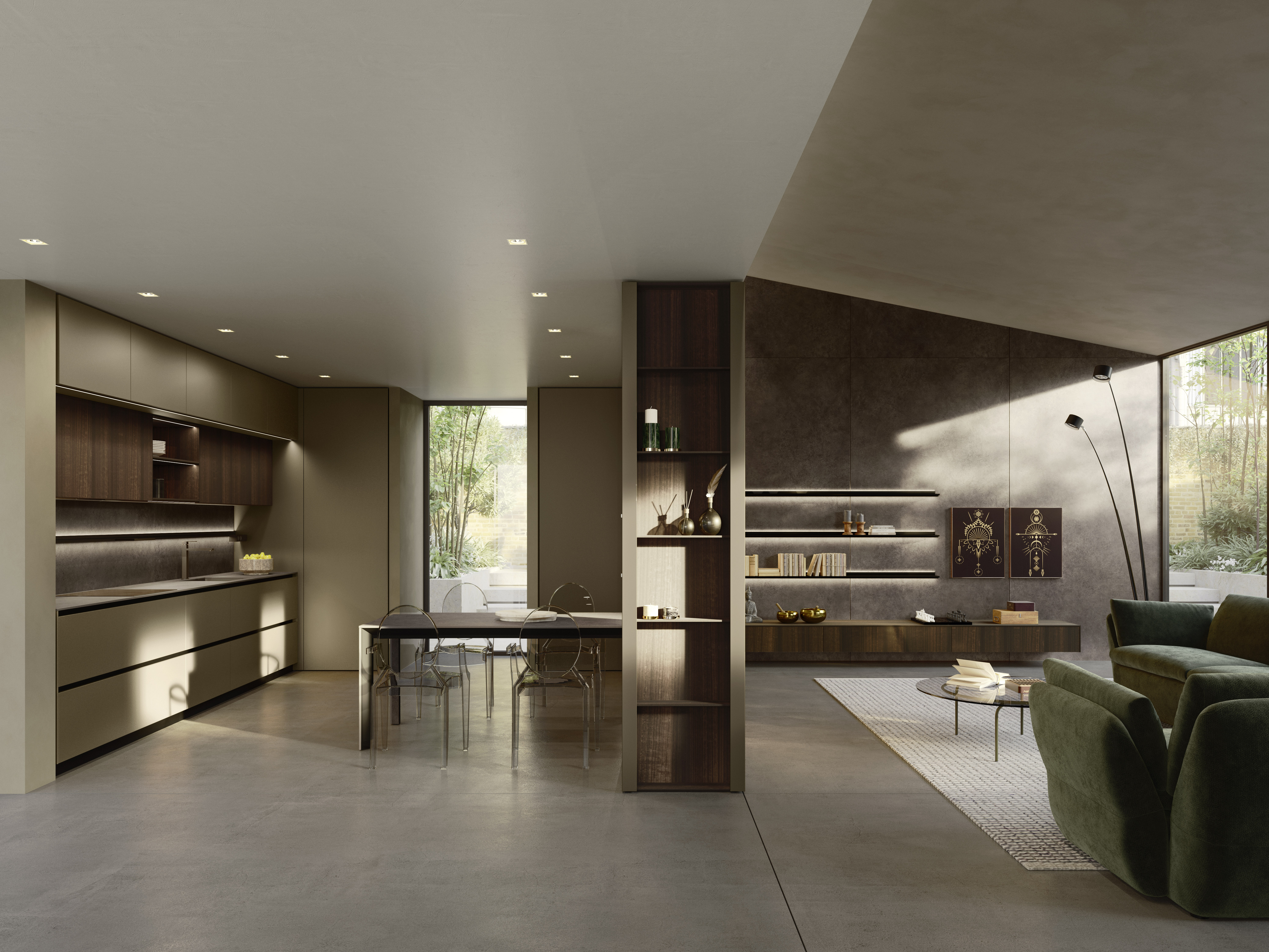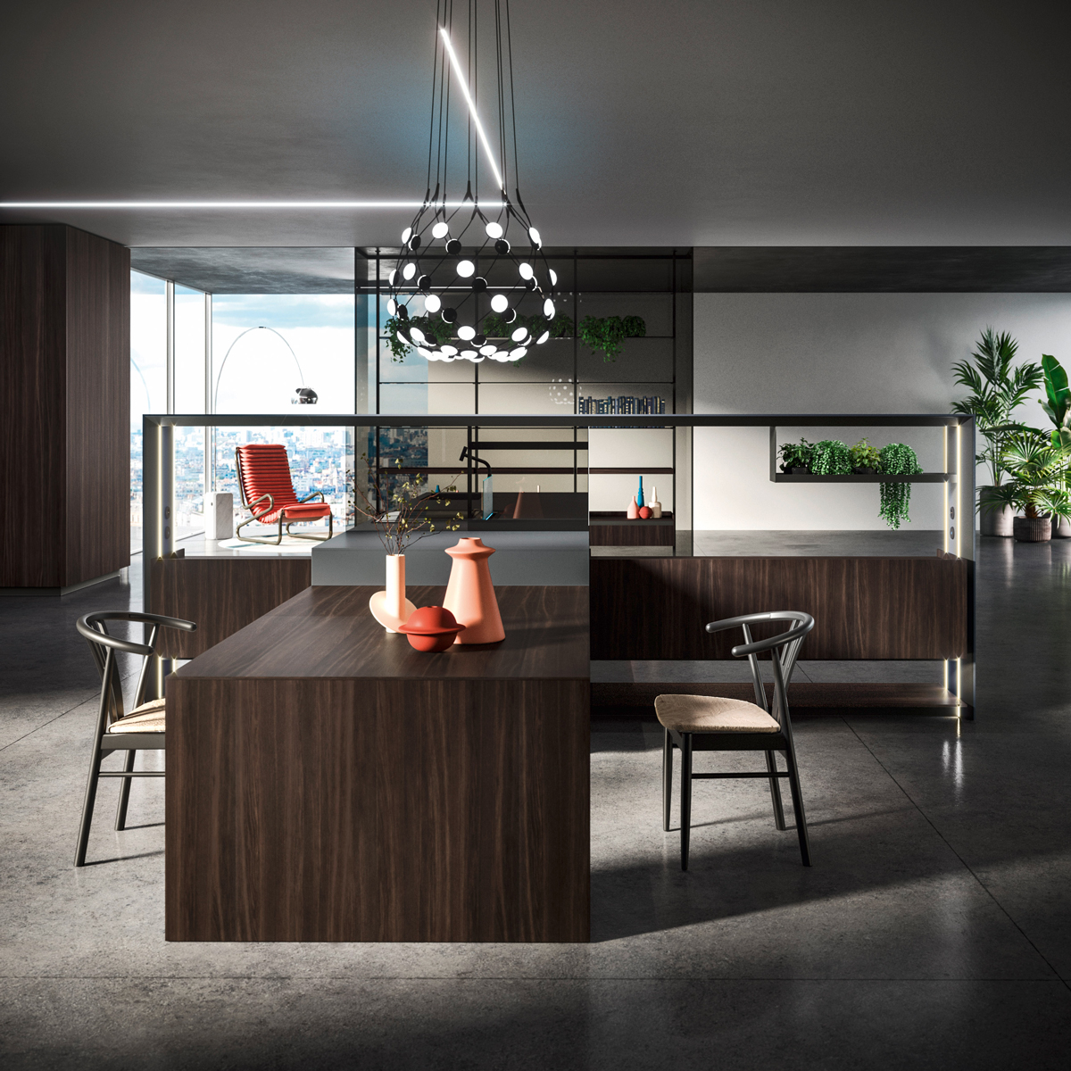 Alu_Project is the defining feature of the collection, characterised by its sleek black anodised aluminium profile. Serving as both structure and connector, it integrates effortlessly across suspended units, tables, workstations, and partitions. Its versatility enables limitless design configurations, bringing visual coherence and a bold architectural identity to every space.