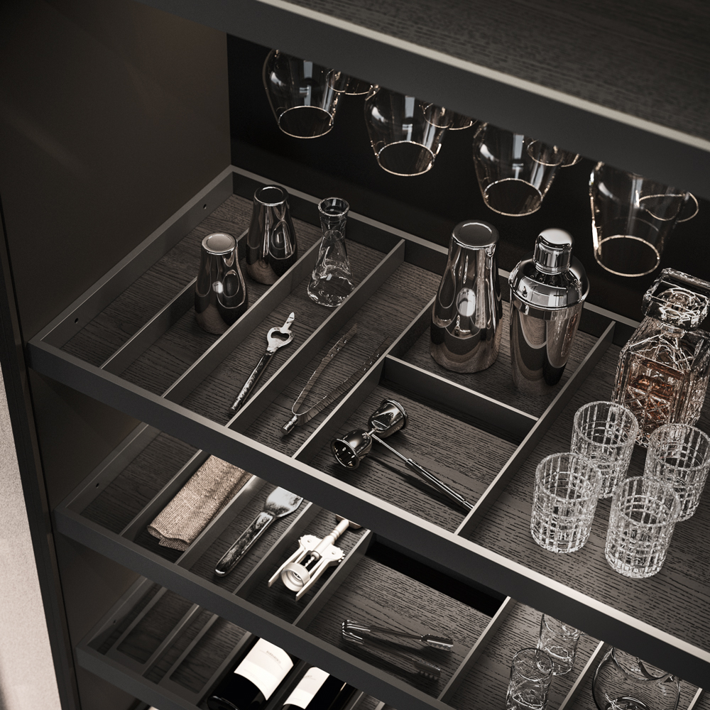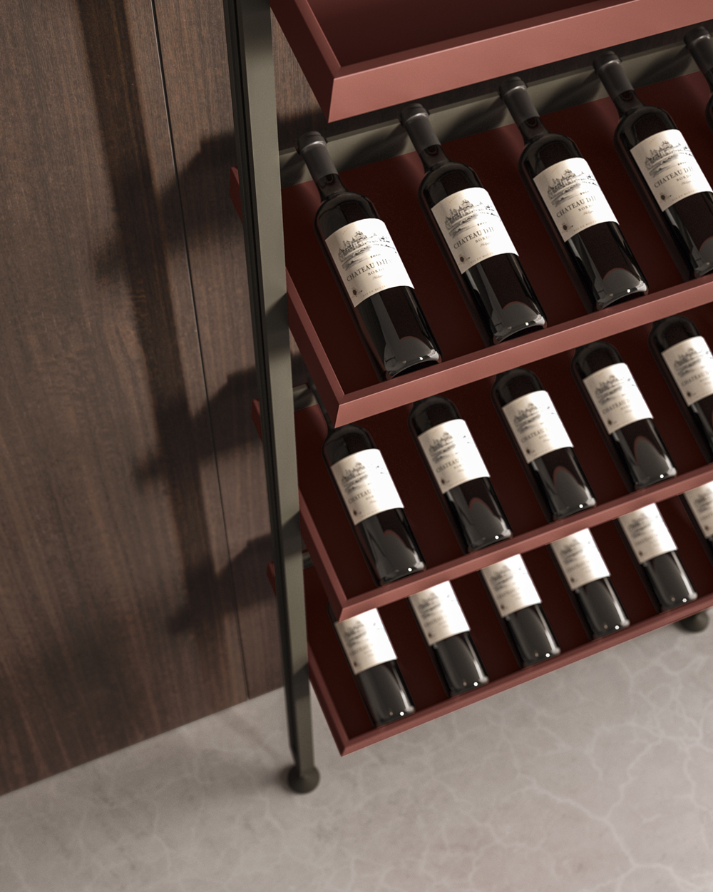 Arrital has a number of wine and wine glass holder display elements including the Vertical System, the AK_Winery , elements in the GEM glass unit collection and the Refrigerated drawer.