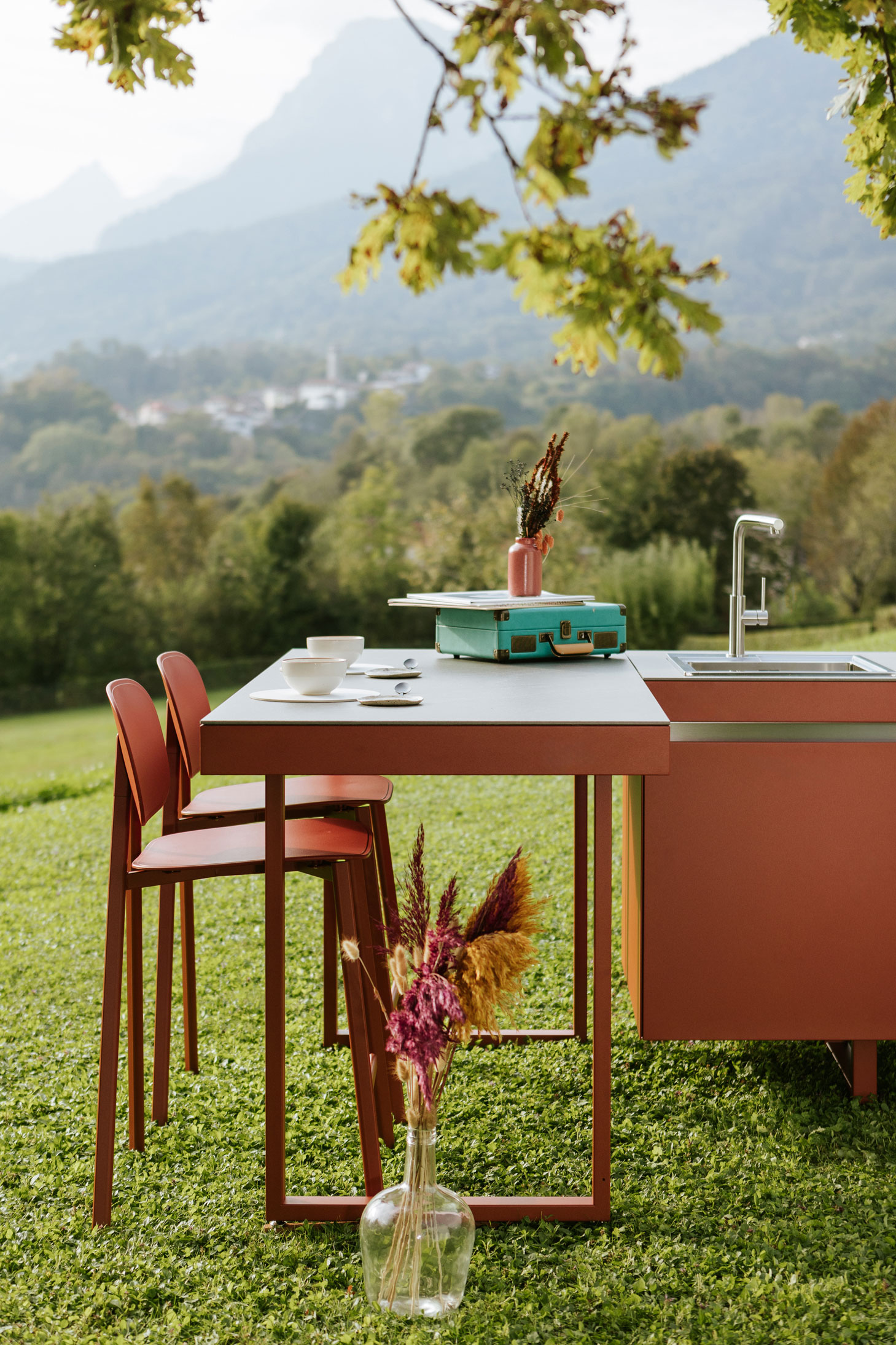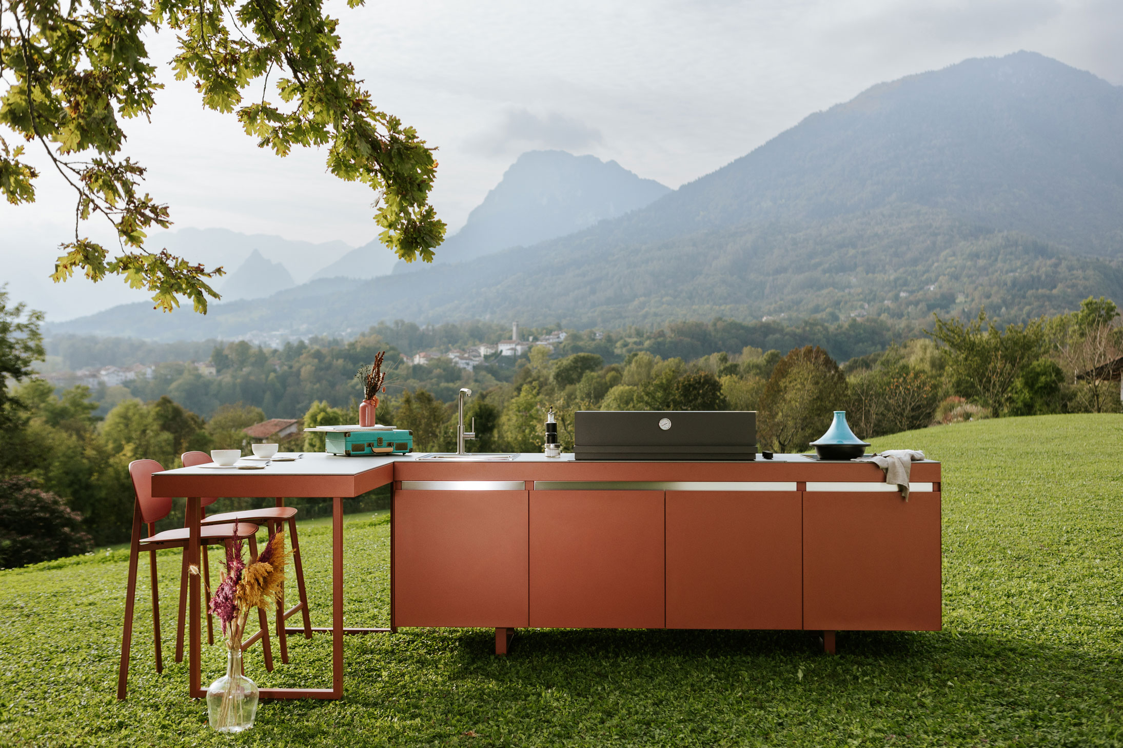 More than just colour, Agher by Fògher transforms outdoor living into a sensory experience. Inspired by the rich tones of the maple tree—Agher in the Dolomites—this kitchen features a curated palette designed to elevate every moment outdoors. A statement in design and elegance, Agher seamlessly blends form and function.