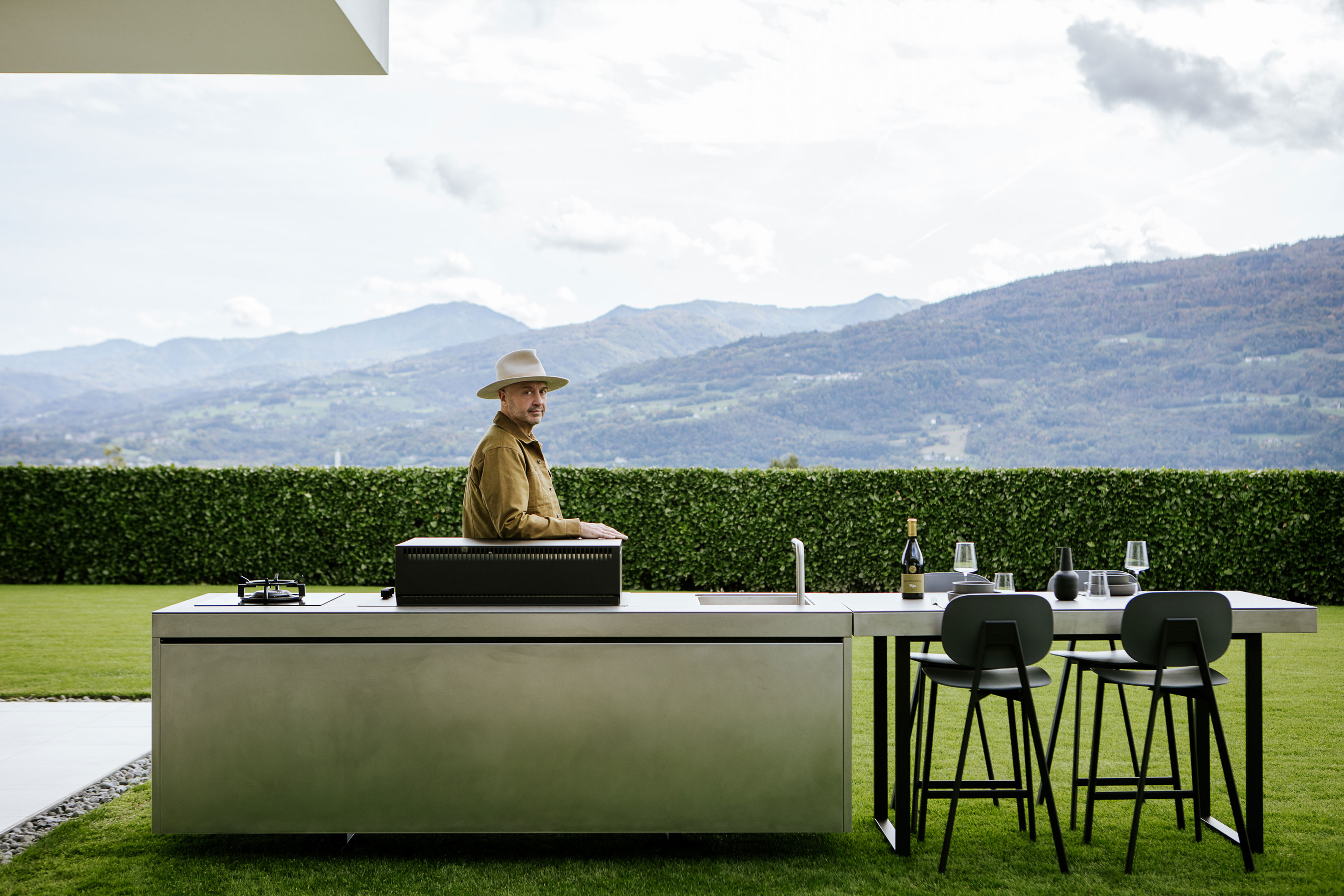 Born from the collaboration between Fògher and Joe Bastianich, the new Agher Kitchen reflects a shared passion for excellence. Crafted in hand-finished stainless steel 316 Réditage, it embodies Bastianich’s iconic style and Fògher’s design mastery. The result is an immersive, high-end outdoor kitchen that redefines the art of outdoor living.