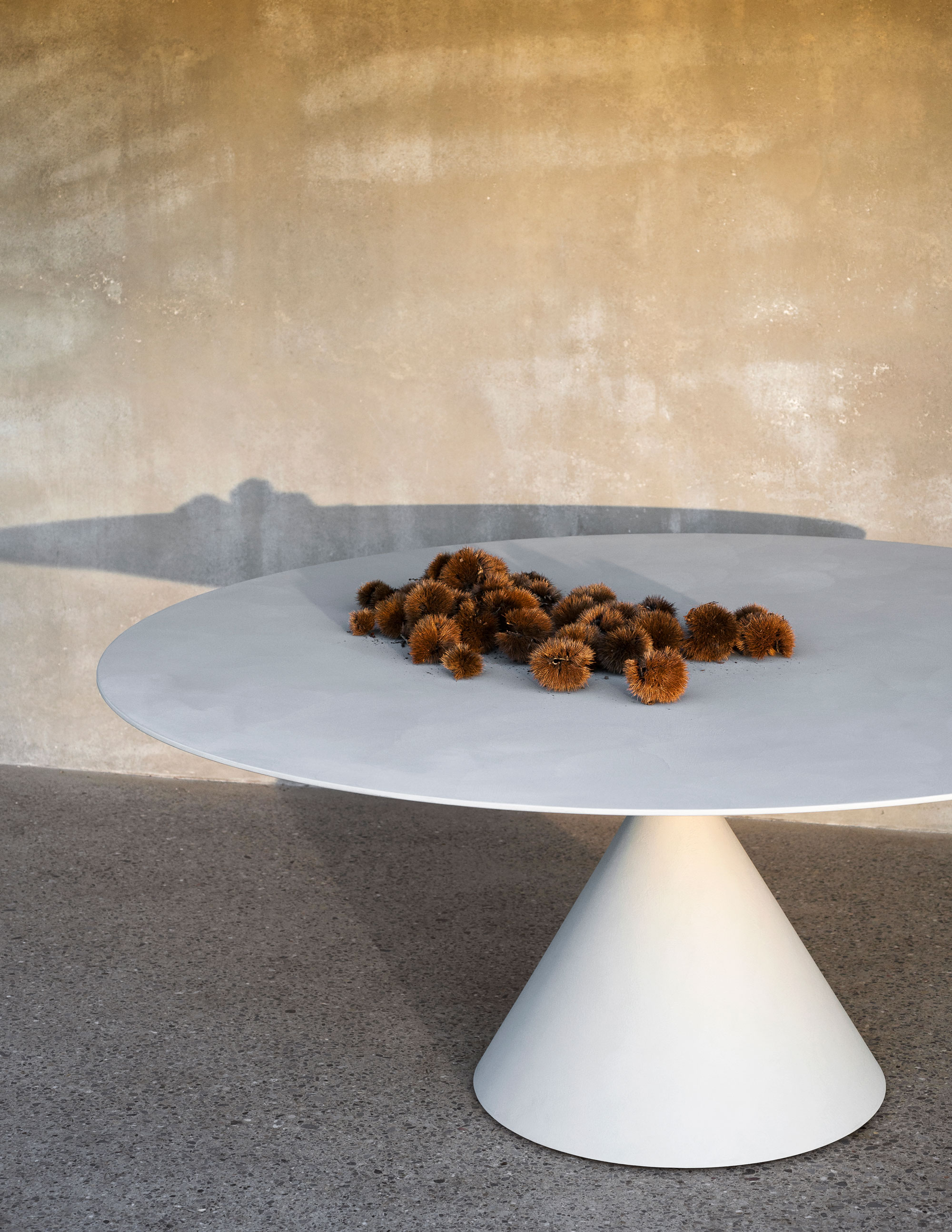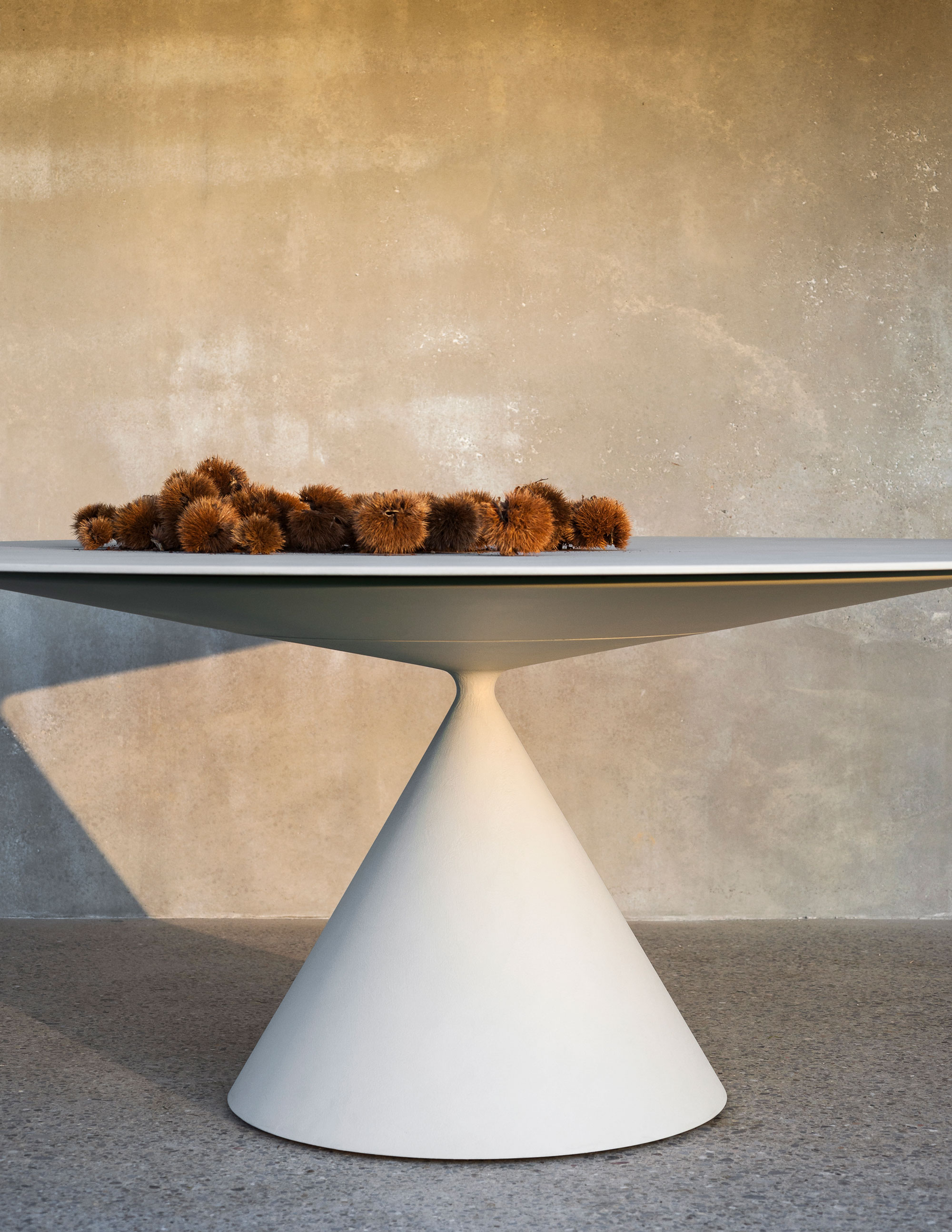 Look at Clay; it's a sculpture that embodies beauty and exquisite proportions, much more than just a table. Since its debut at the 2015 Milan Furniture Fair, it has won important accolades such as the Red Dot Award for Product Design in 2016, the Good Design Award in 2016, and the Iconic Design Award in 2015. This table, which forms the traditional round table, defies gravity by skilfully balancing two cones of different shapes at their opposite vertices. Clay breaks conventions: it’s remarkable yet essential piece is created by its geometric volumes. With its oval shape and elliptical base and top, Clay is a visually arresting sculpture that boldly supports the meeting of two volumes in perfect balance with very little support.
