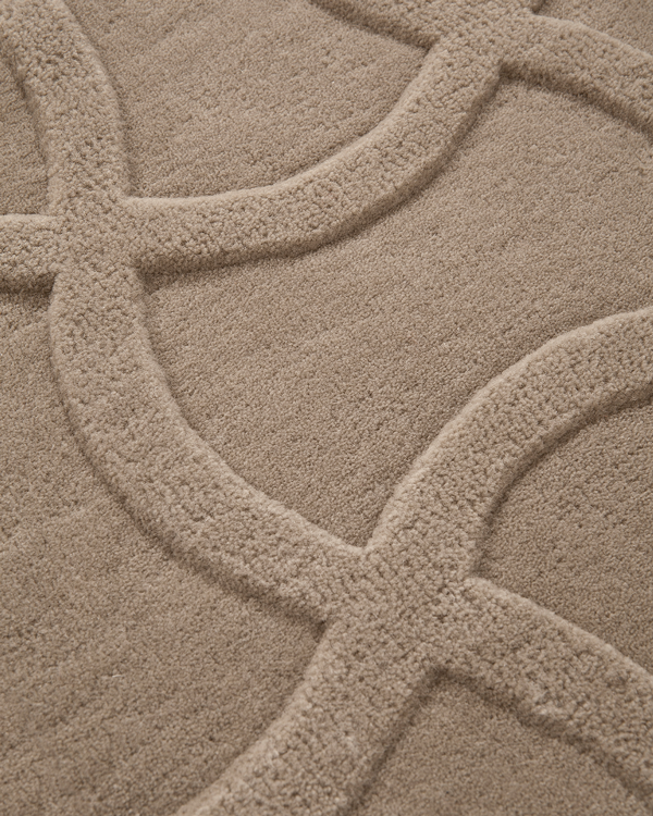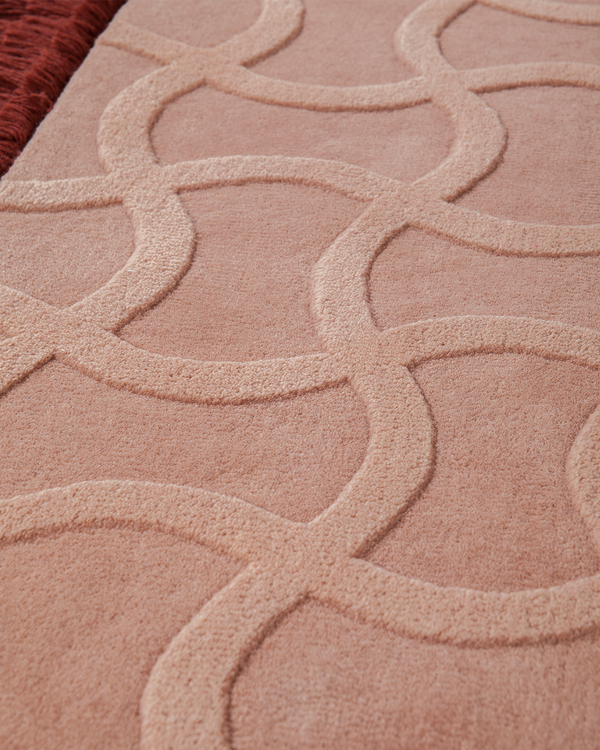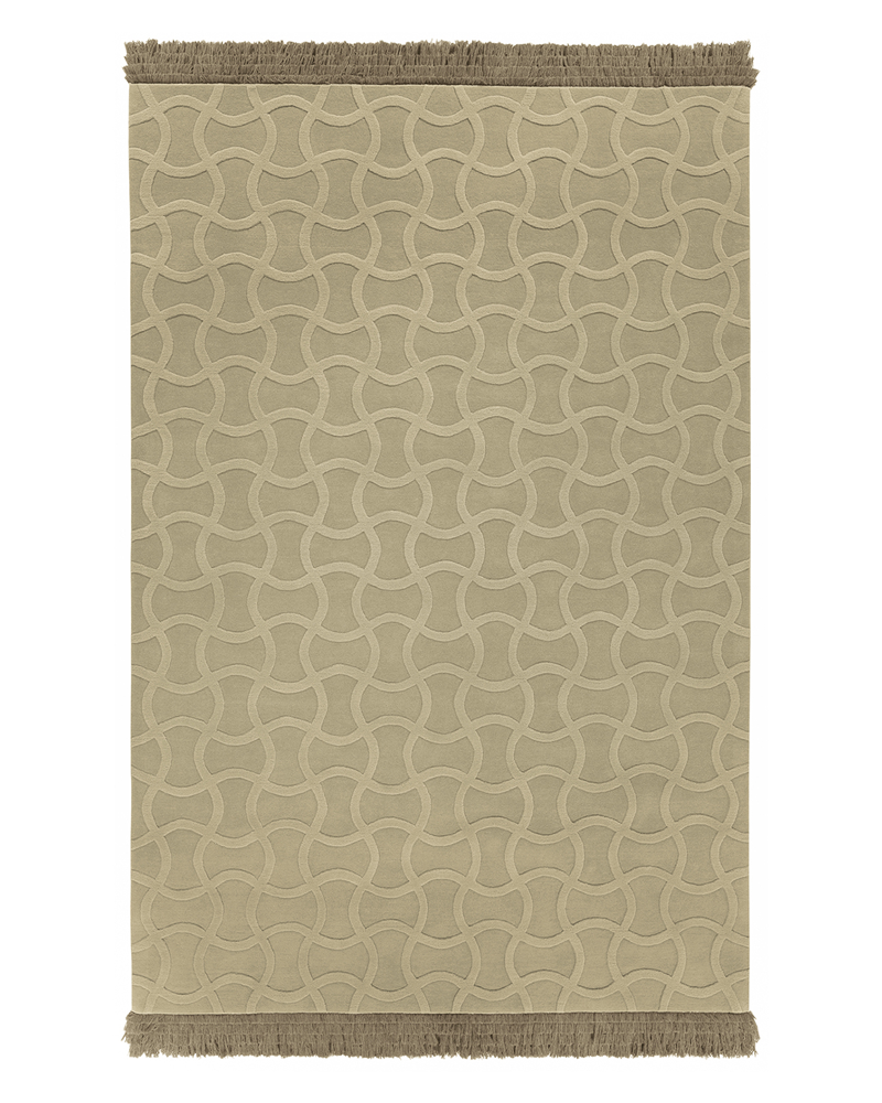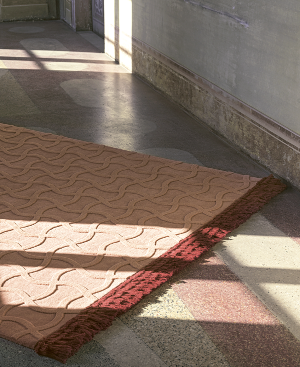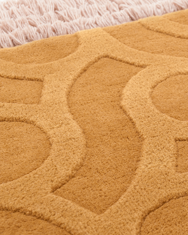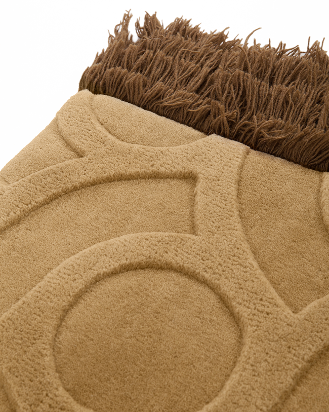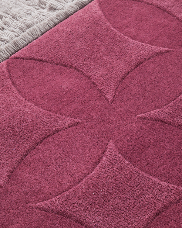The Twiggy collection, inspired by the vibrant colors, patterns, and style of the 1970s, is a collaboration with designer Serena Confalonieri. Named after the iconic model and fashion icon Twiggy, it features hand-tufted 100% wool rugs with four tone-on-tone patterns, varied pile heights, and distinctive “scaled” fringes that add volume and softness.